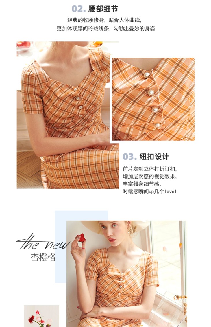 欧芮儿短袖格子连衣裙夏装新款女中长款A字裙