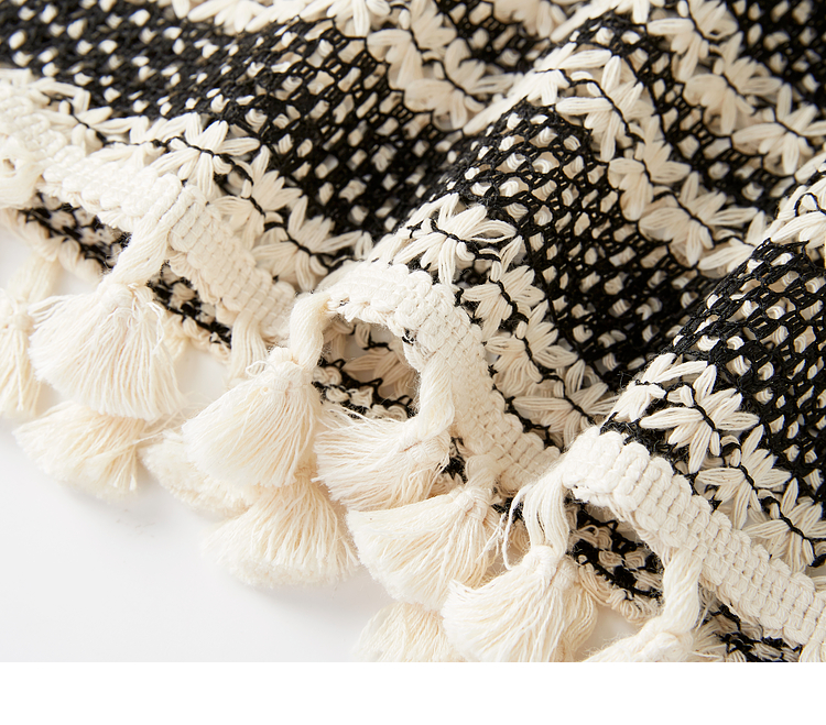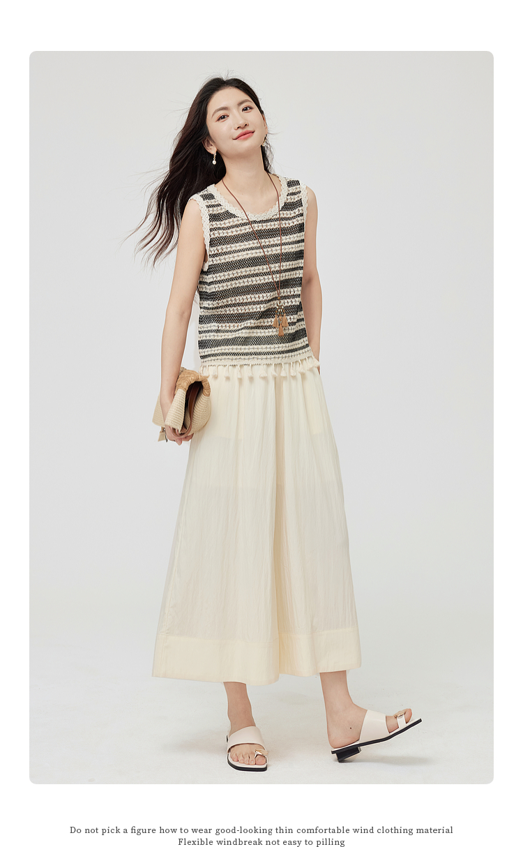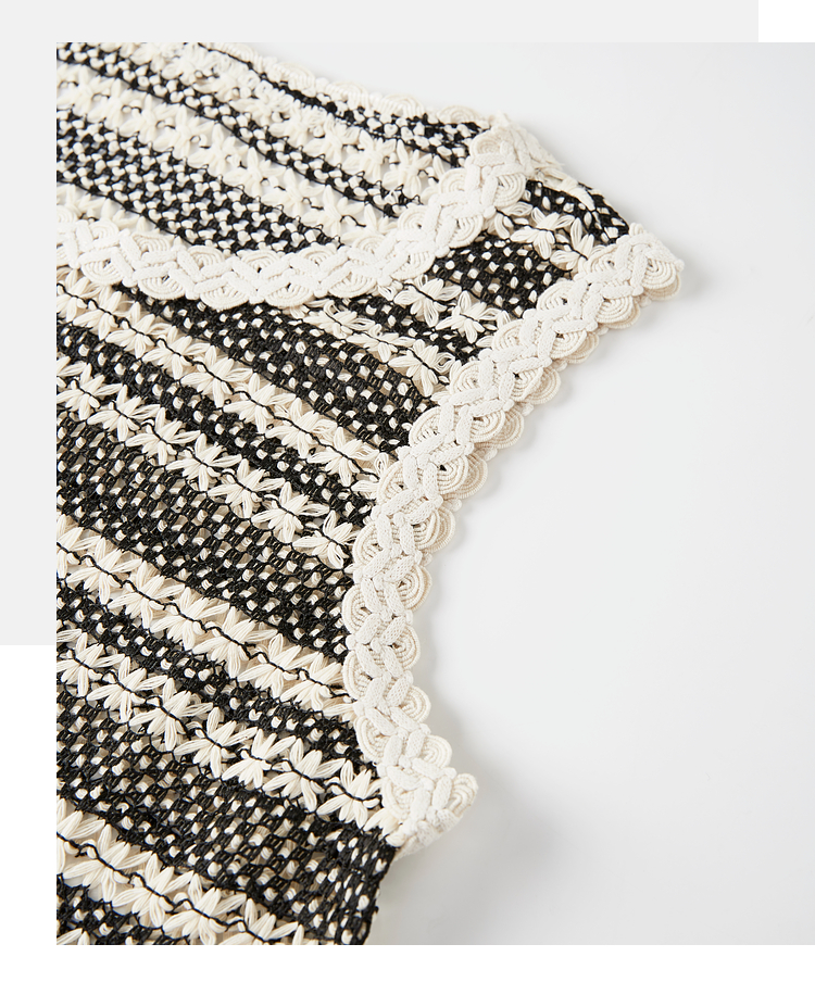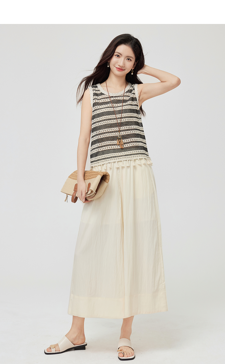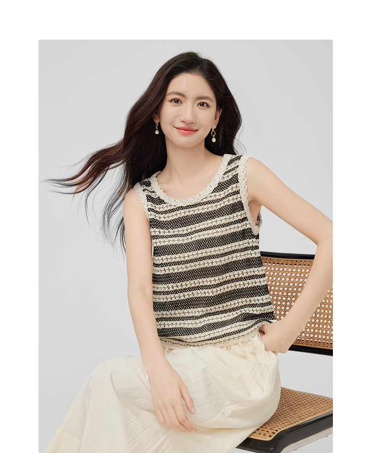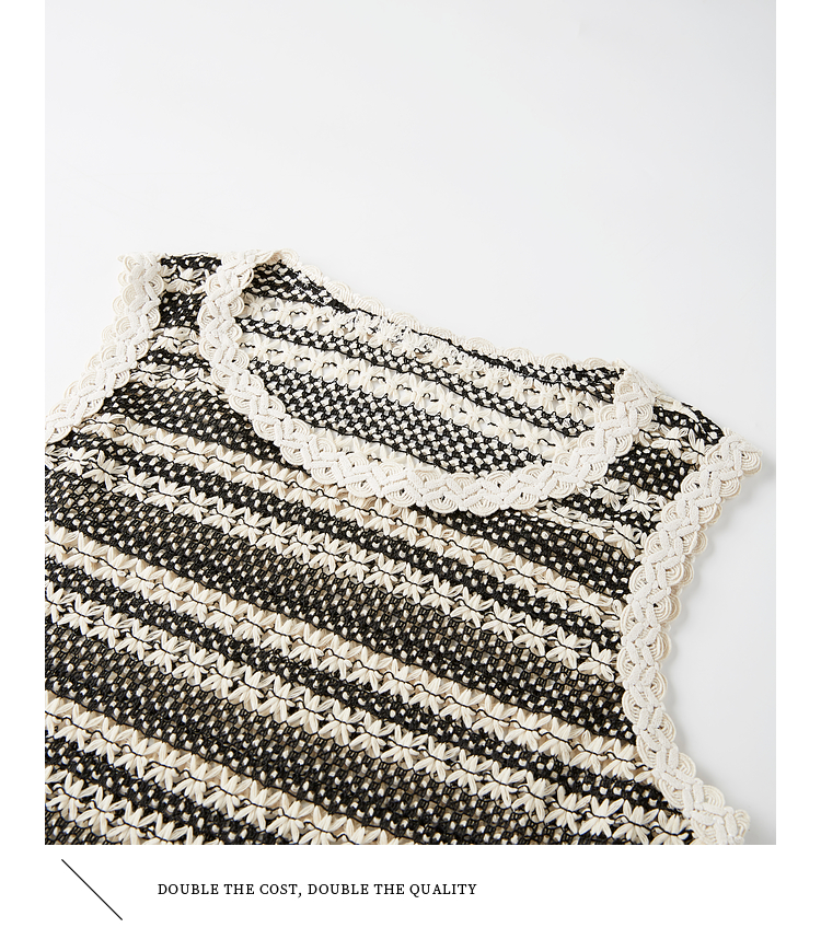 【07/30新品6.5折】熙世界波西米亚镂空钩花条纹背心女夏季外穿时尚流苏圆领无袖上衣
