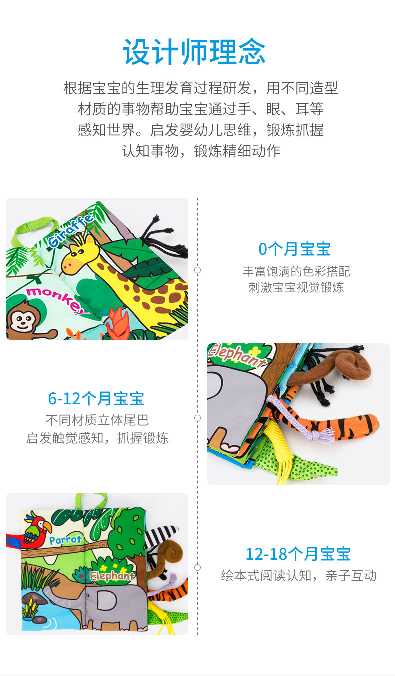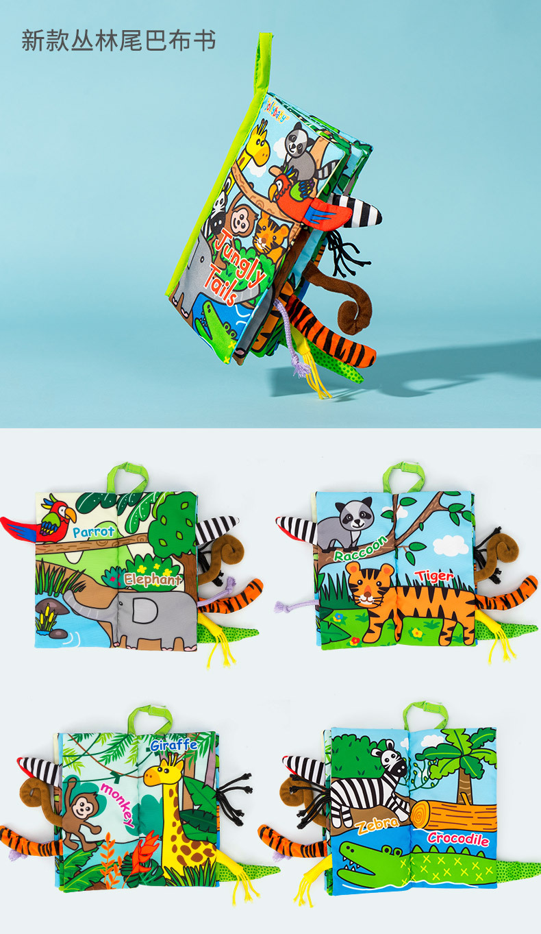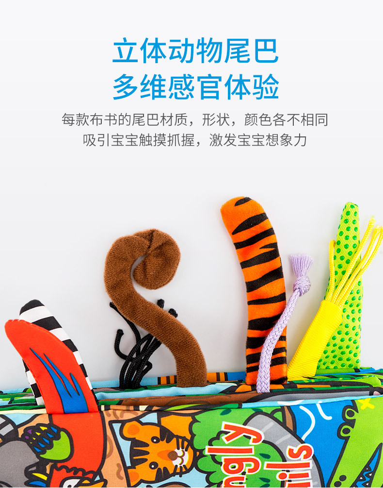 【趣味立体尾巴 宝宝触觉锻炼】Jollybaby动物布书3本立体尾巴 宝宝益智早教玩具布书