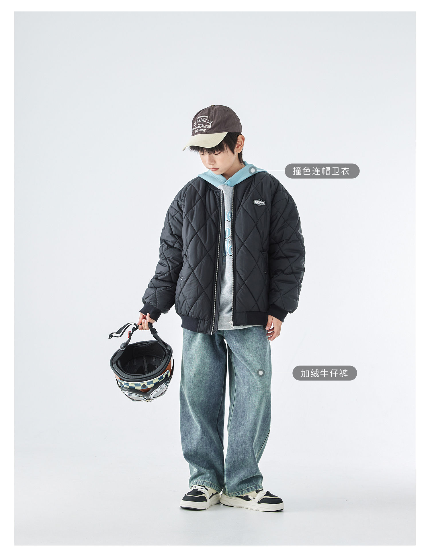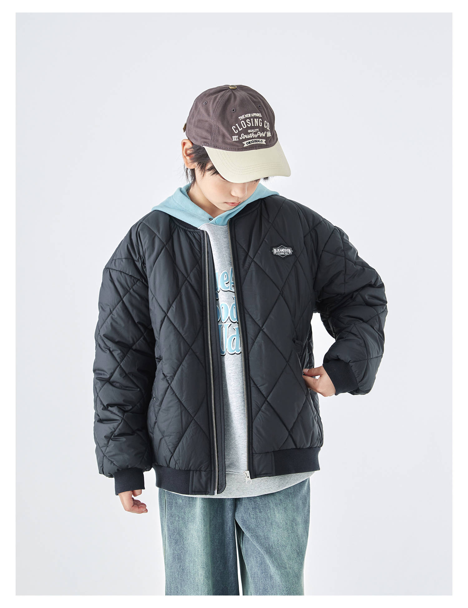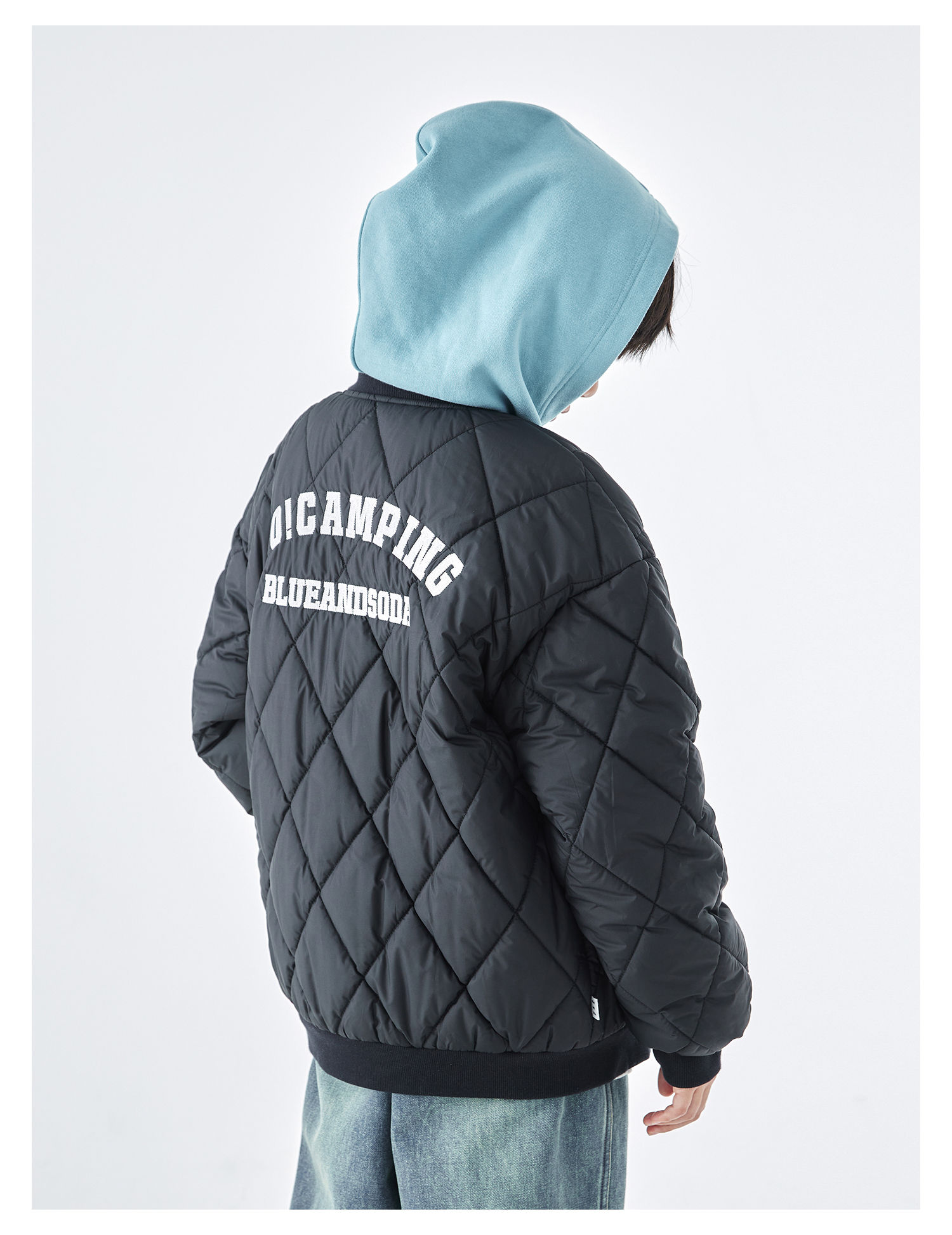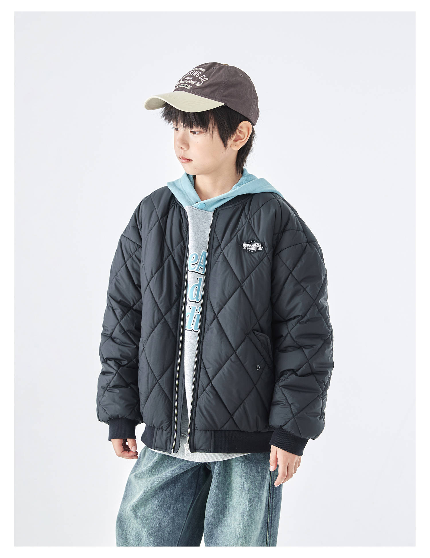 蓝汽水2025年冬季新款亲子中大童菱形格纹棒球棉服抗皱防泼水外套