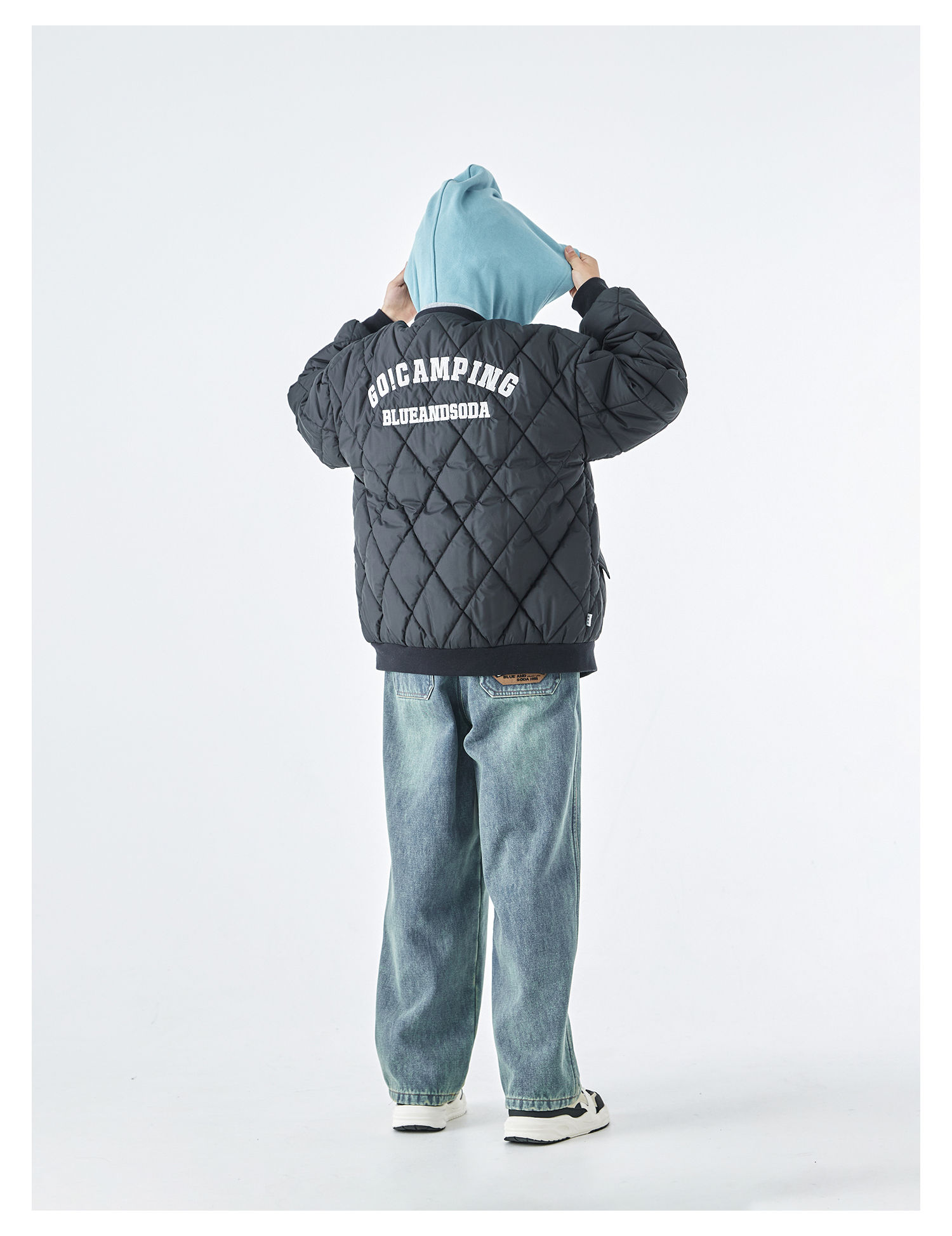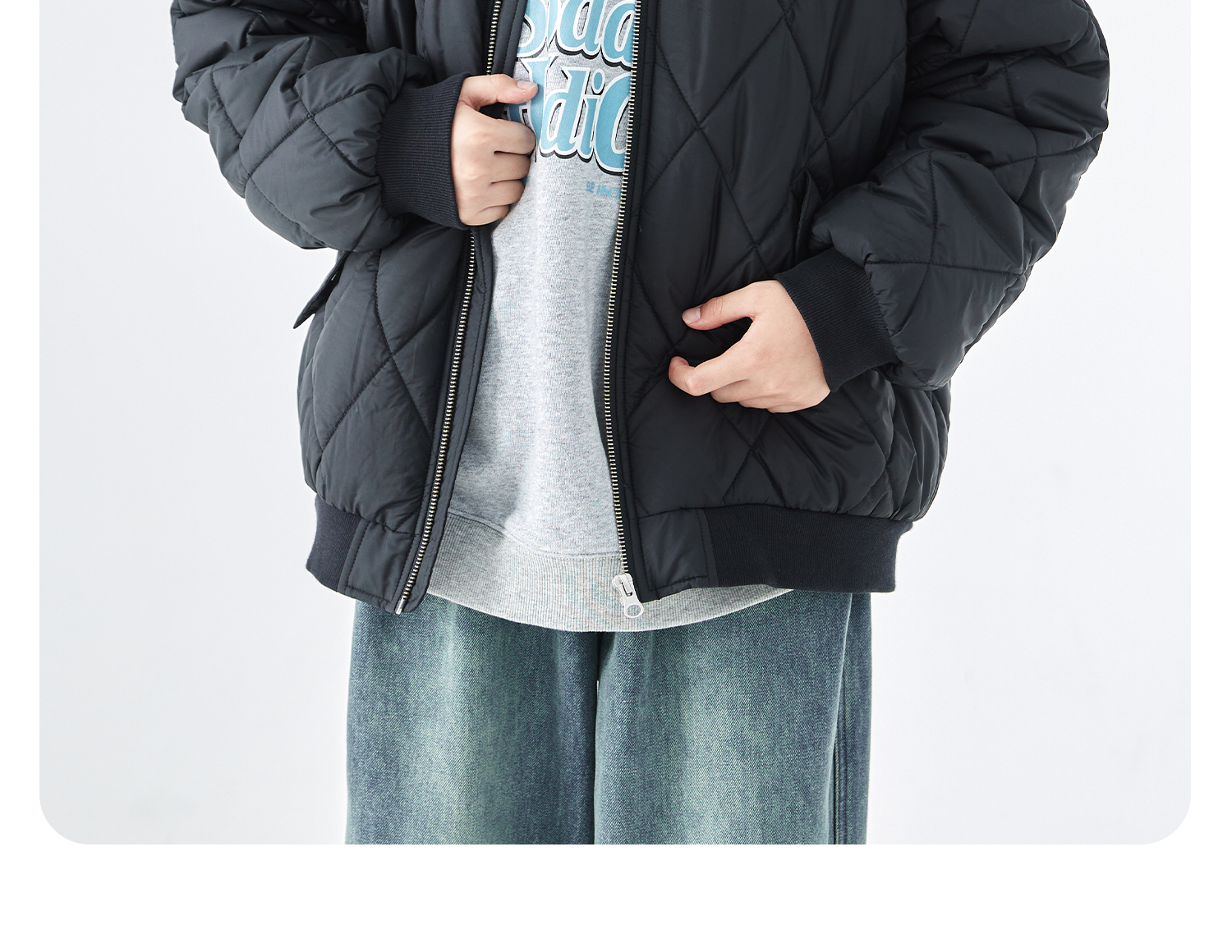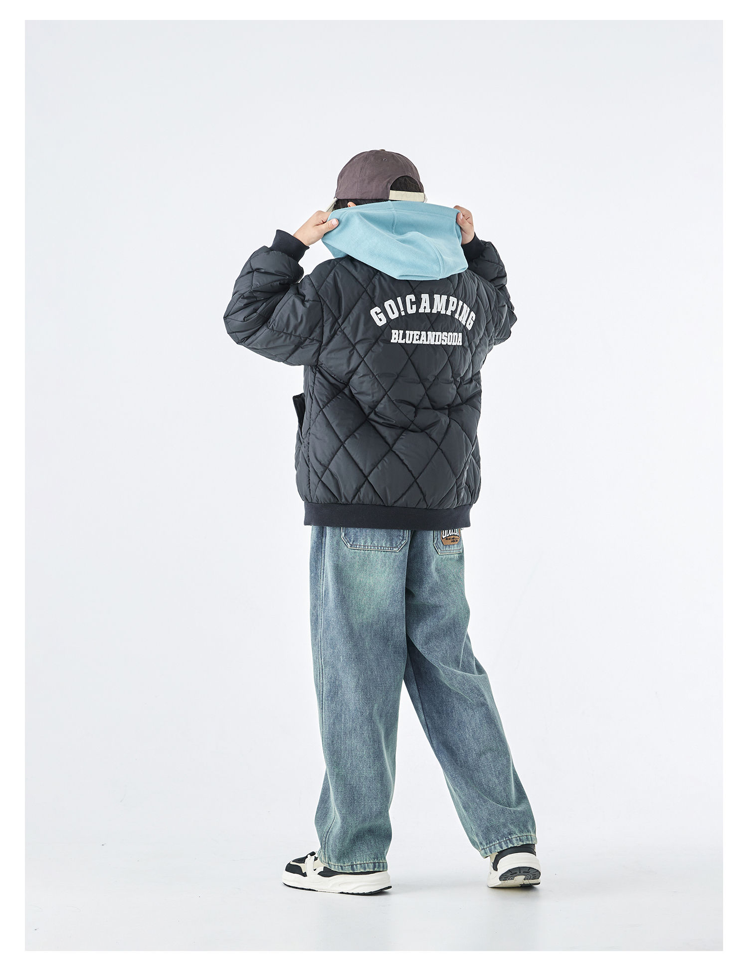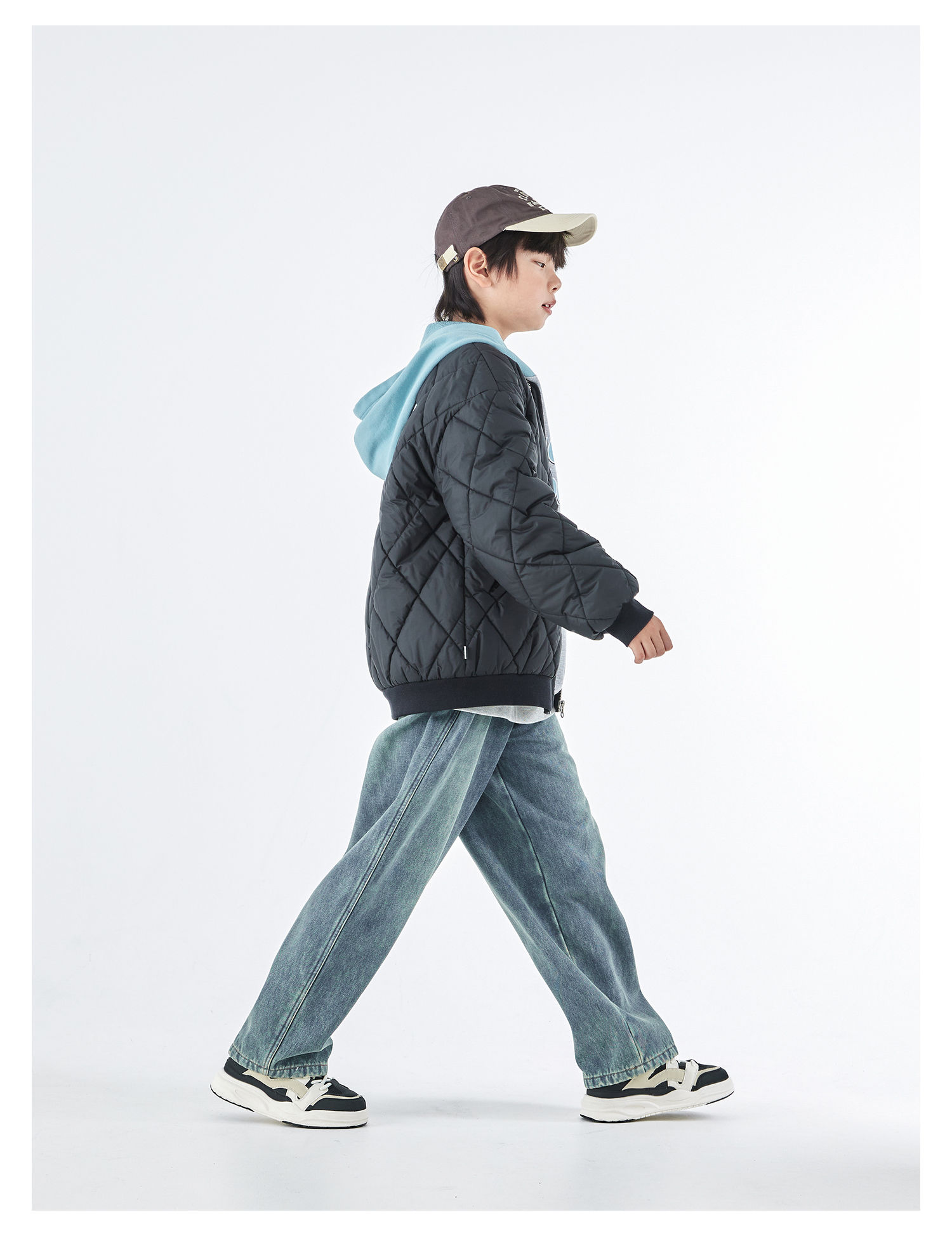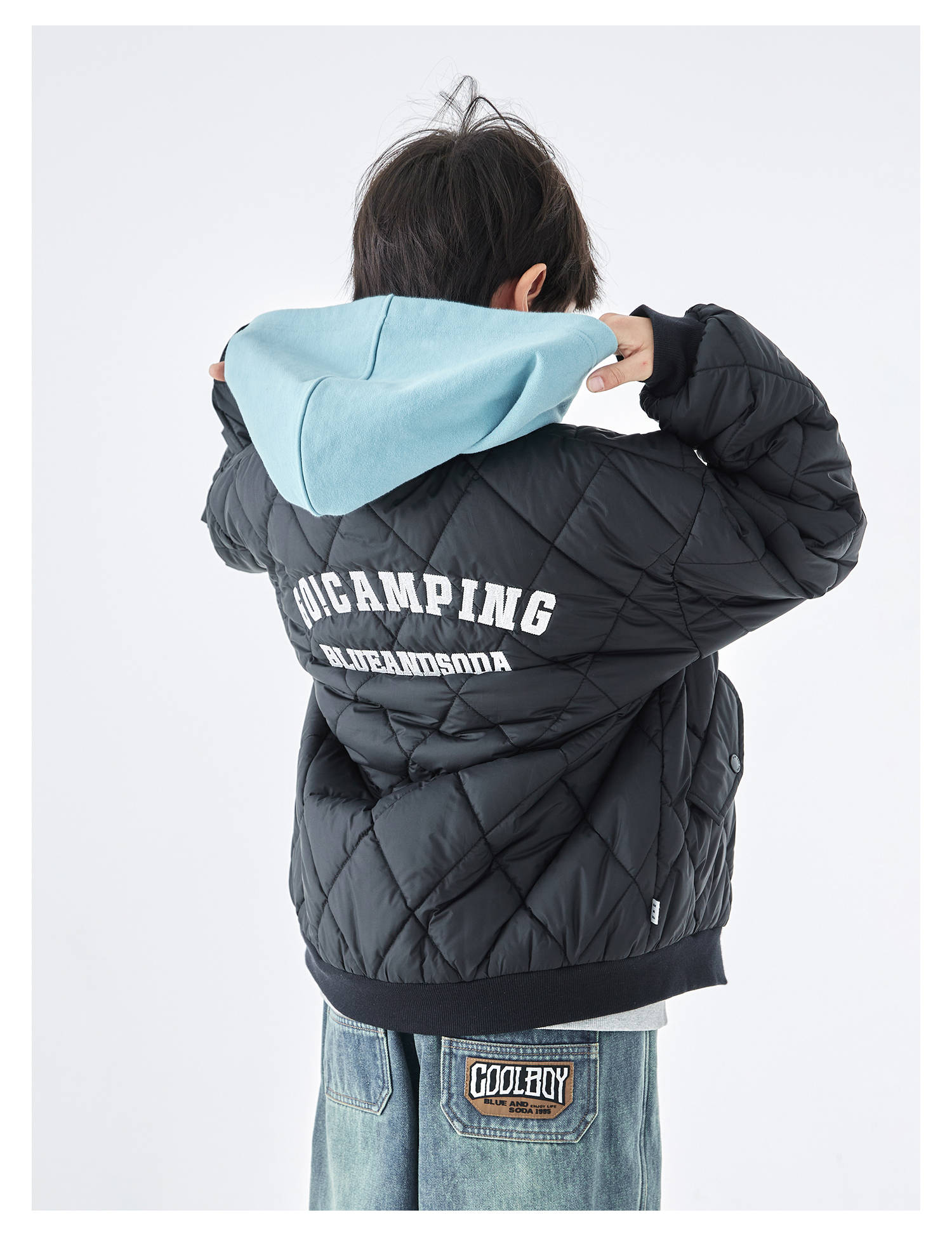 蓝汽水2025年冬季新款亲子中大童菱形格纹棒球棉服抗皱防泼水外套