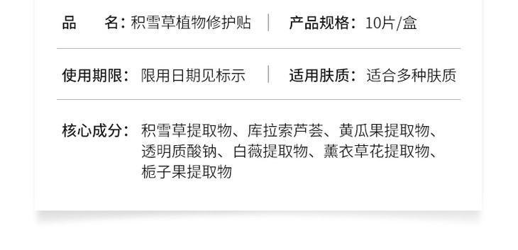 斐思妮积雪草植物修护贴 绿膜 10片/盒