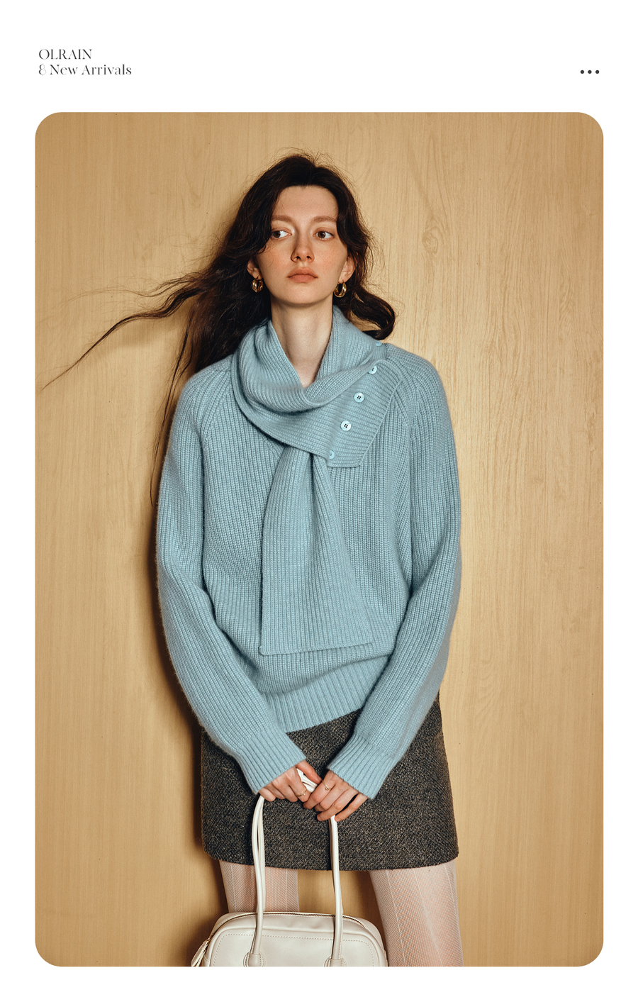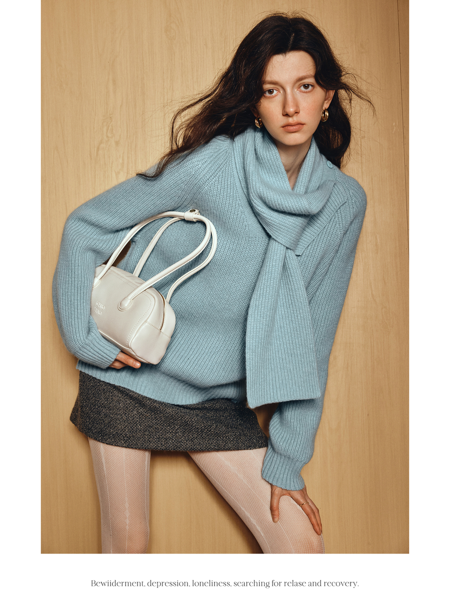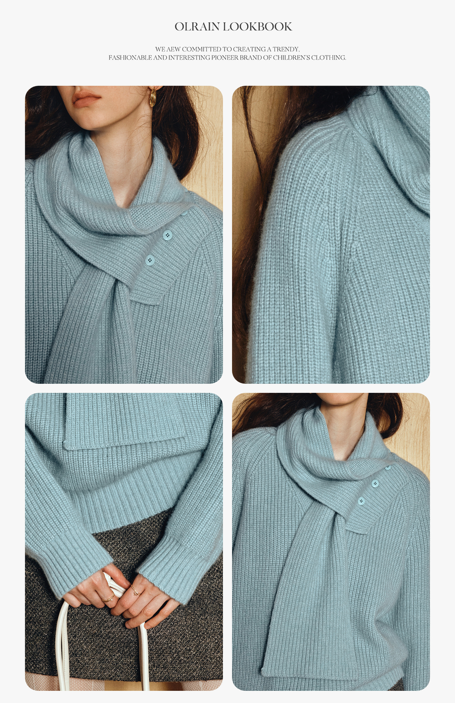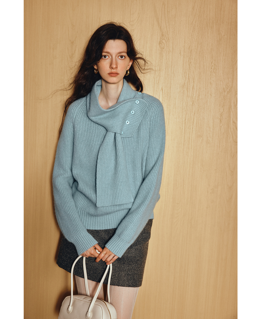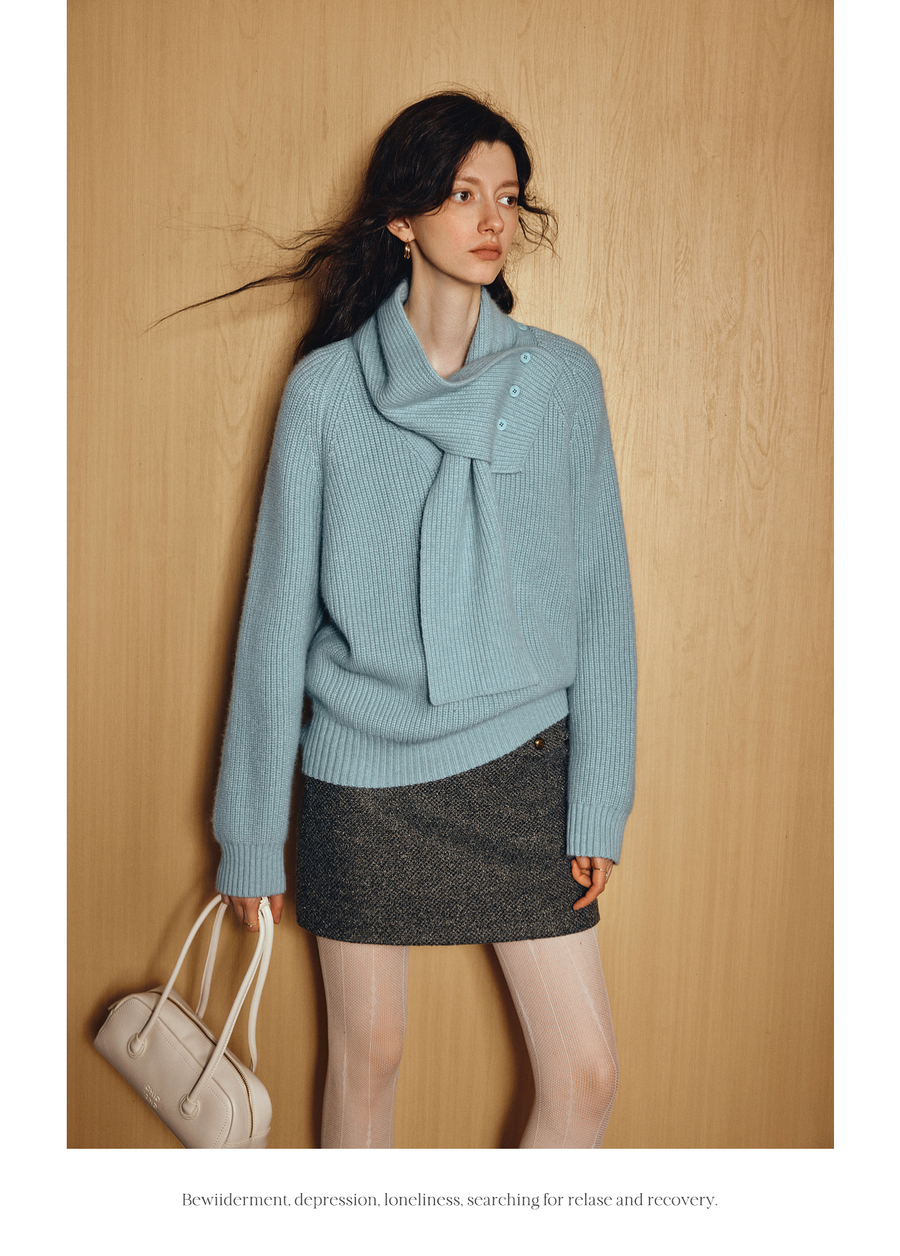 OLrain欧芮儿2025新款冬季蓝色休闲风围脖长袖毛针织套头衫两件套