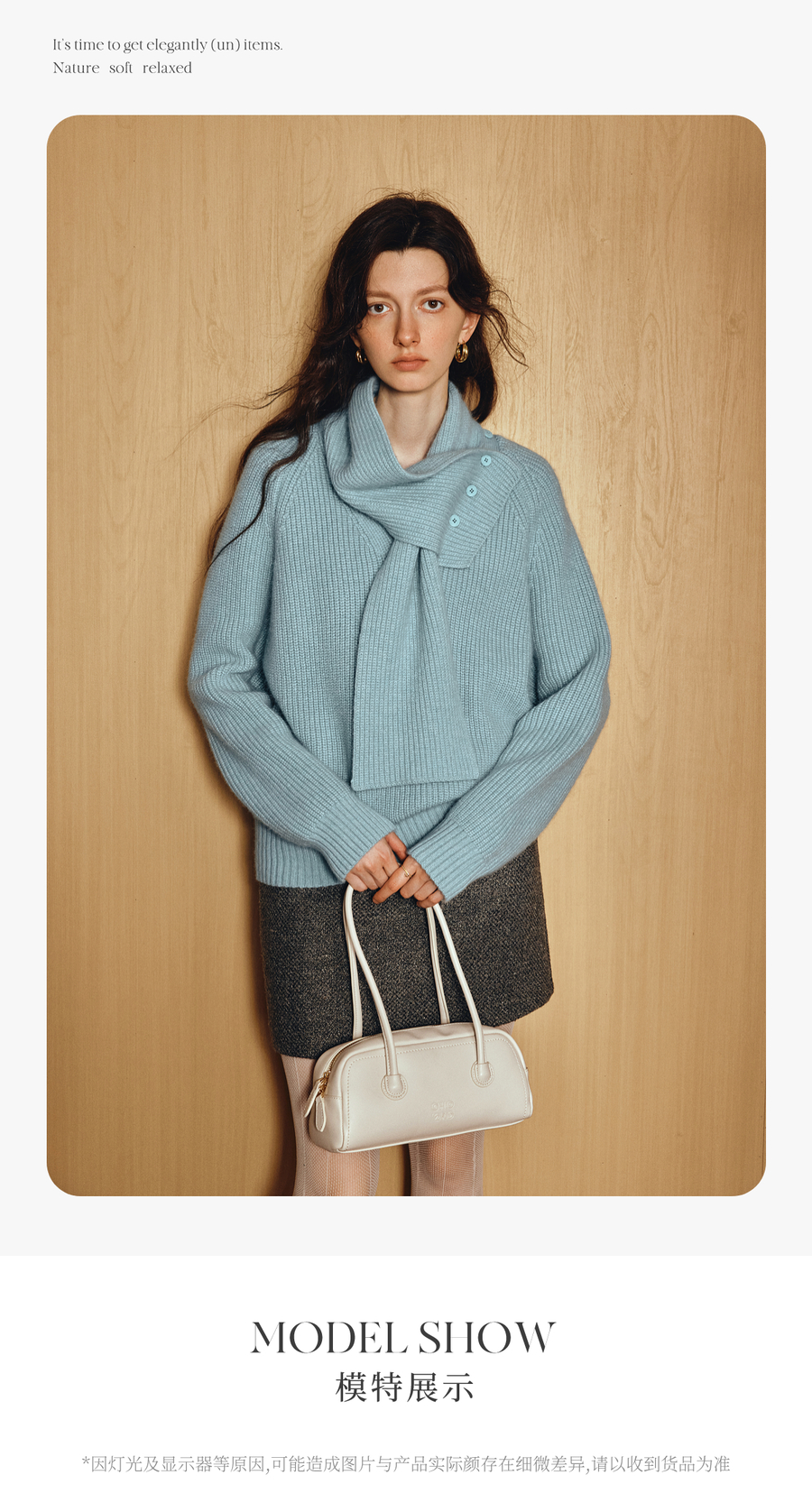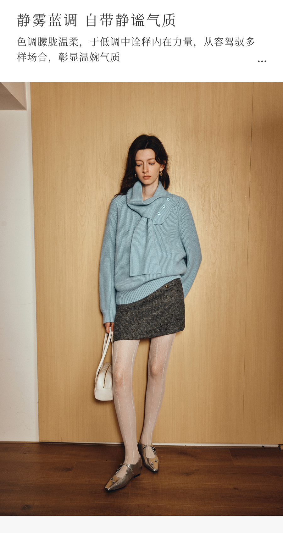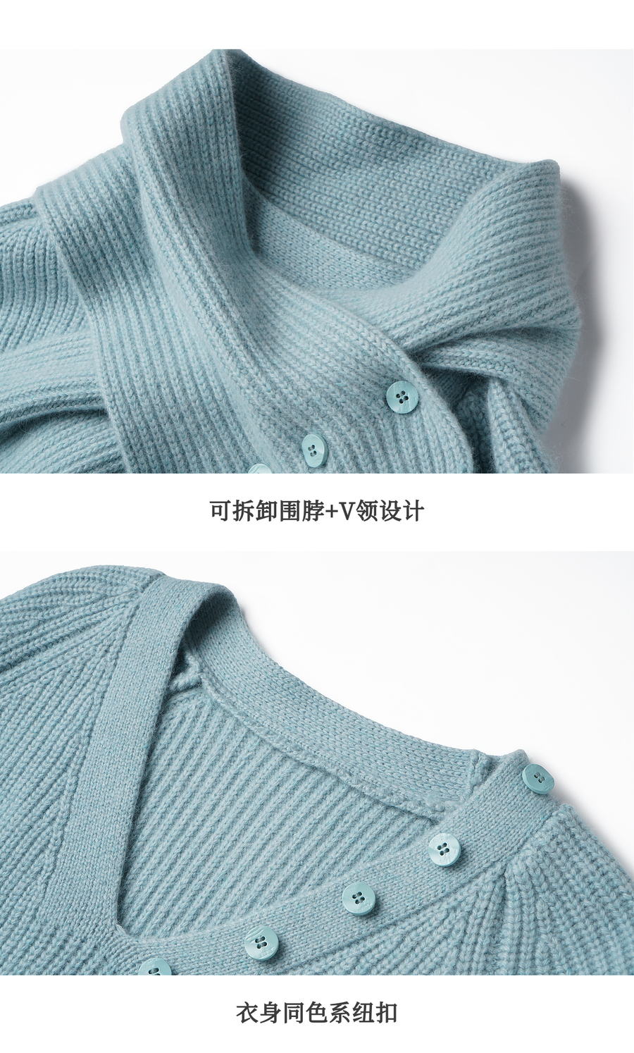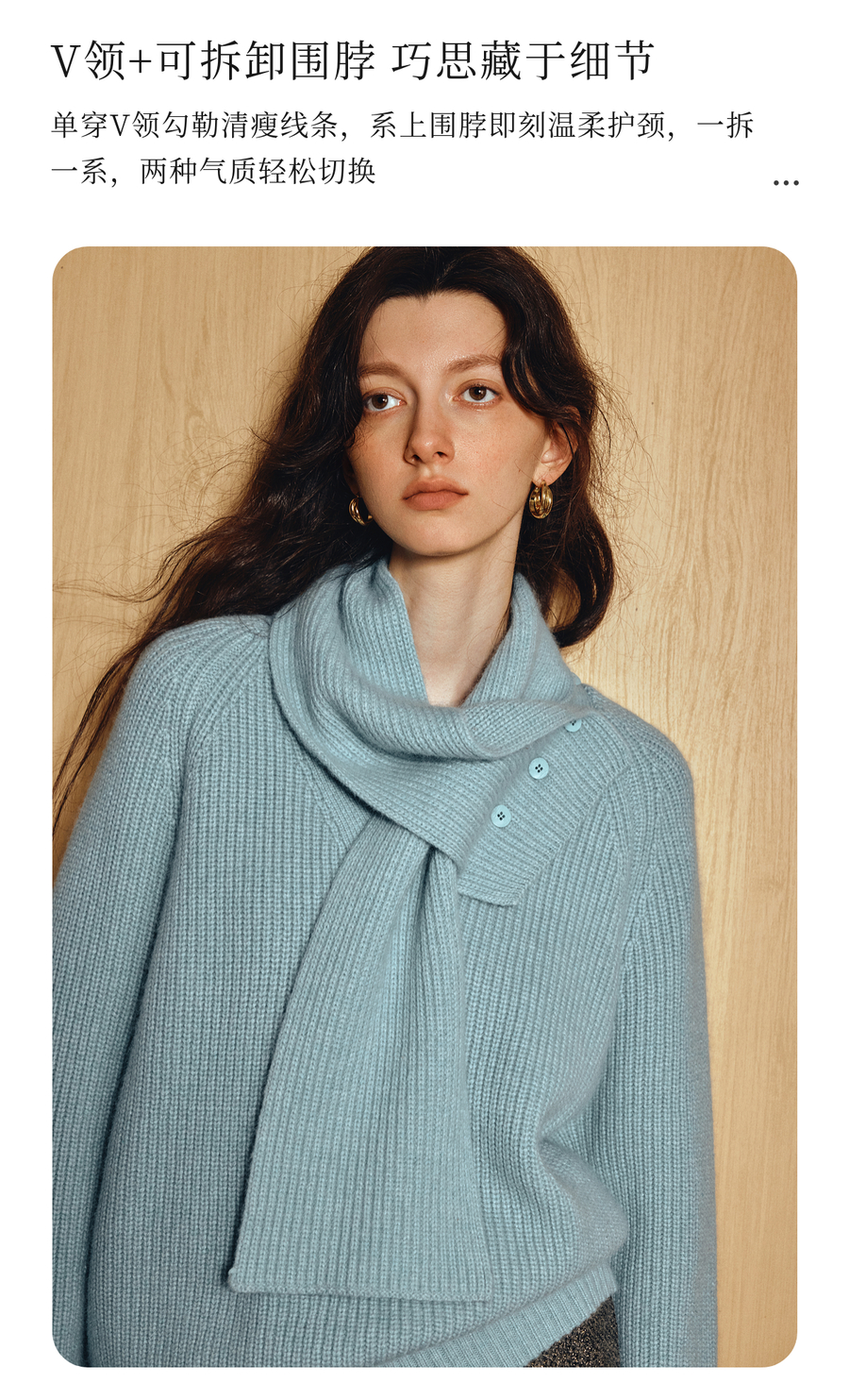 OLrain欧芮儿2025新款冬季蓝色休闲风围脖长袖毛针织套头衫两件套