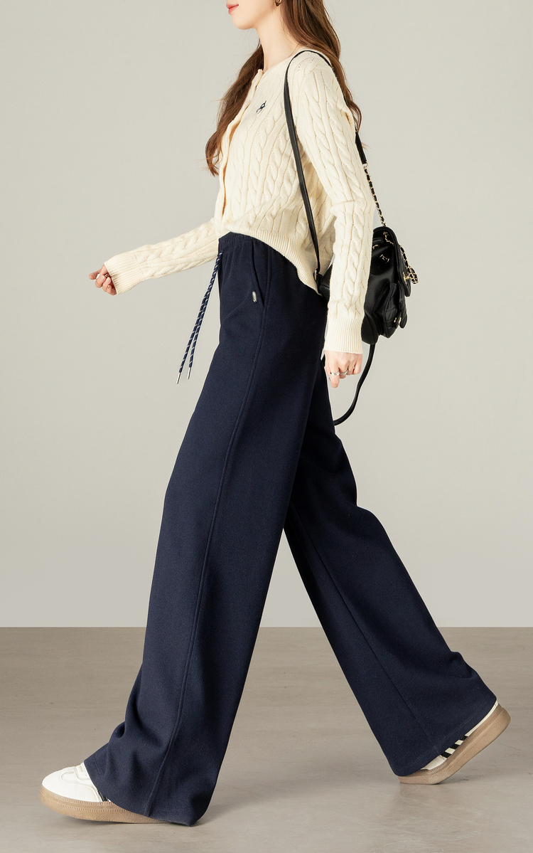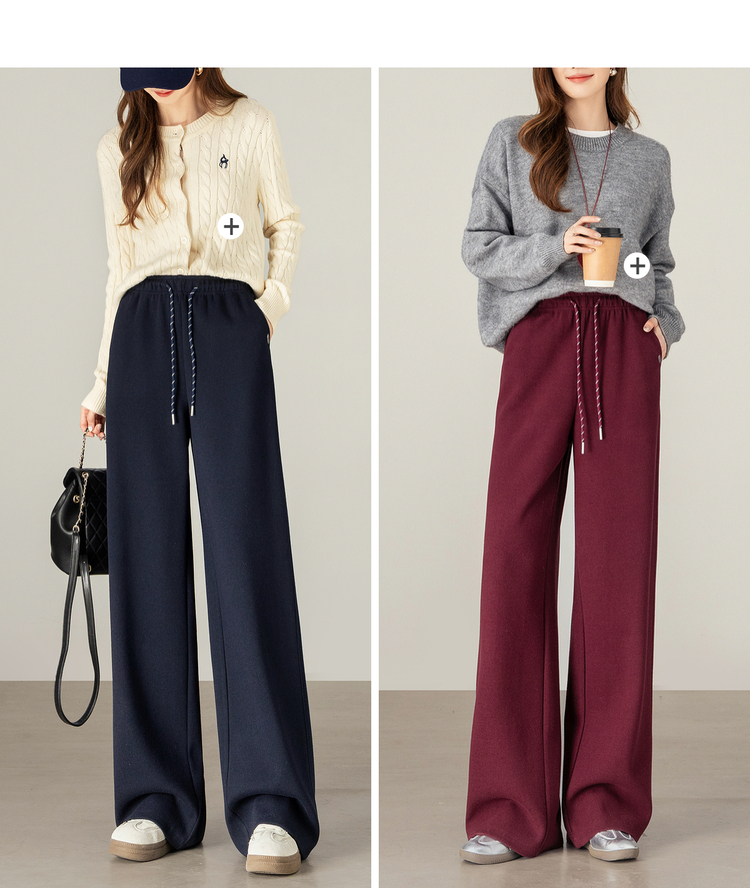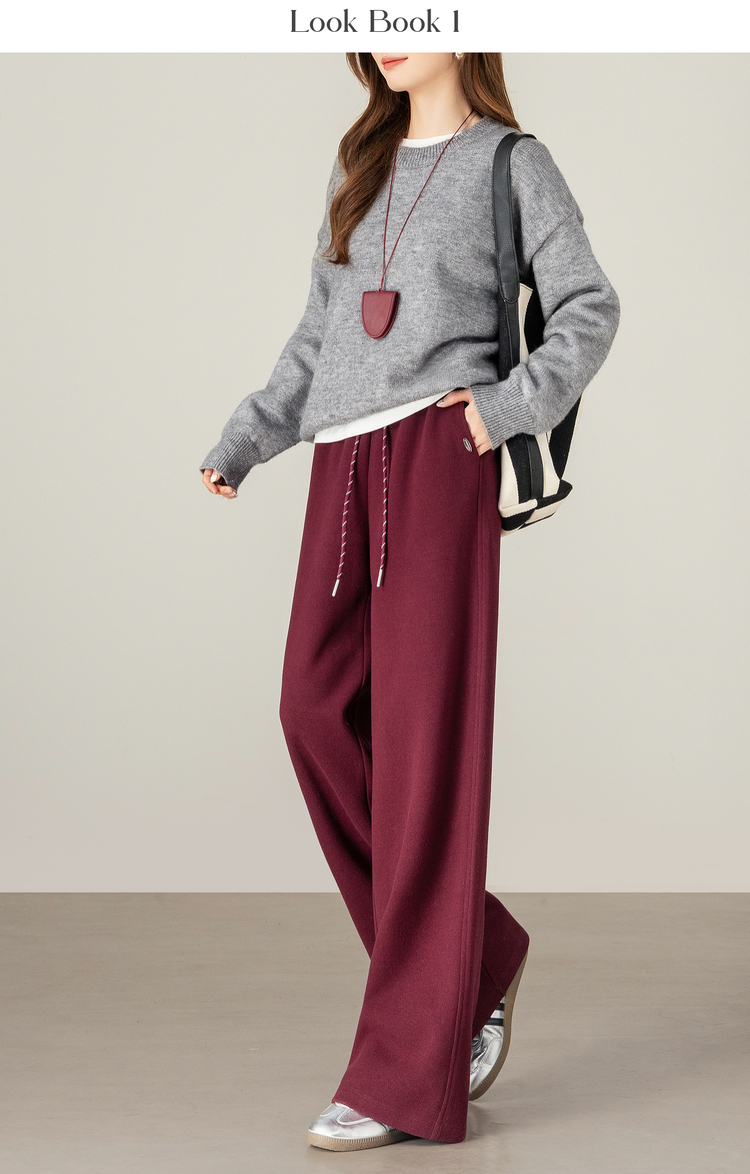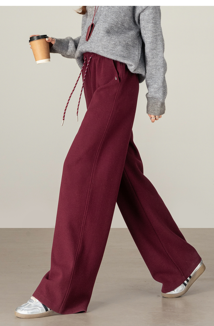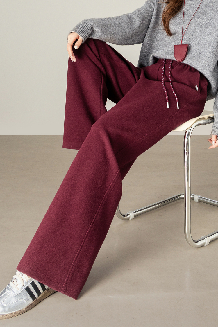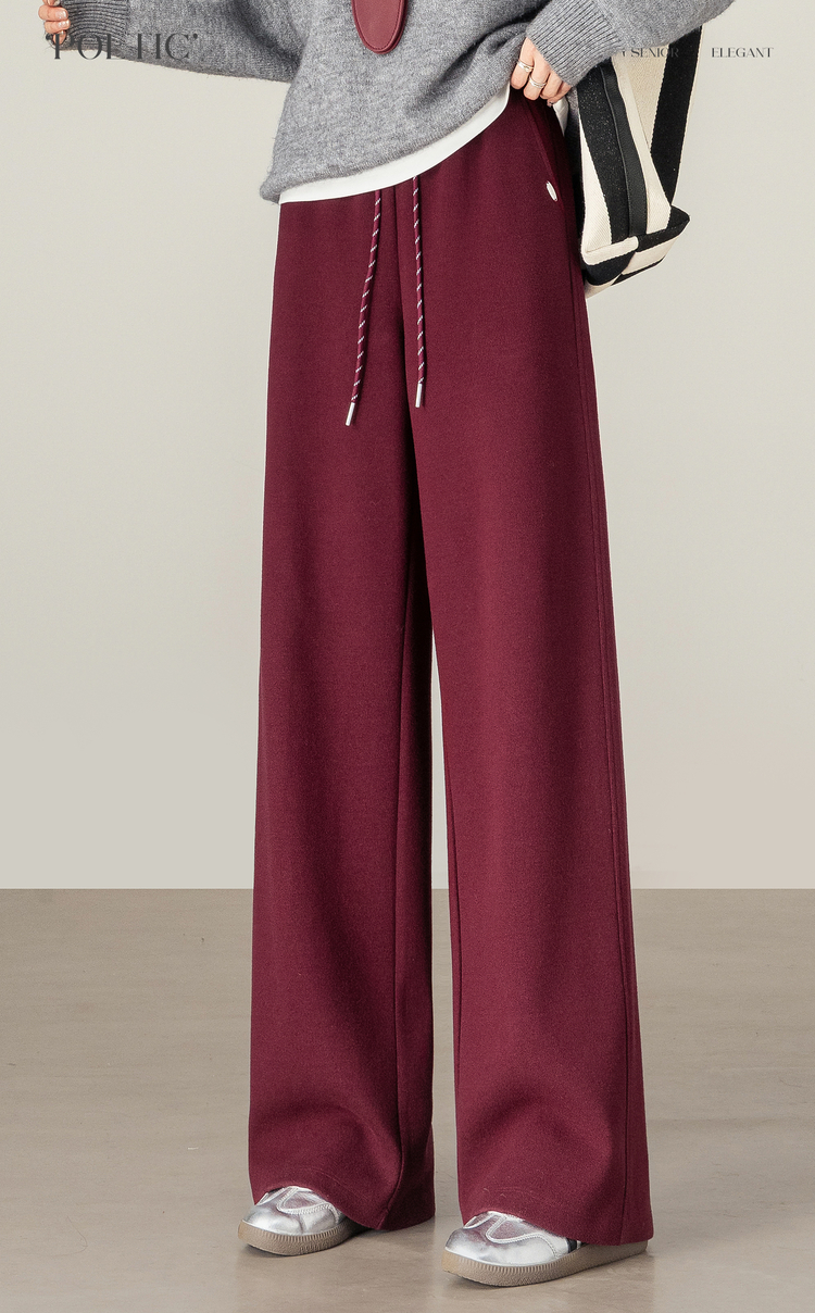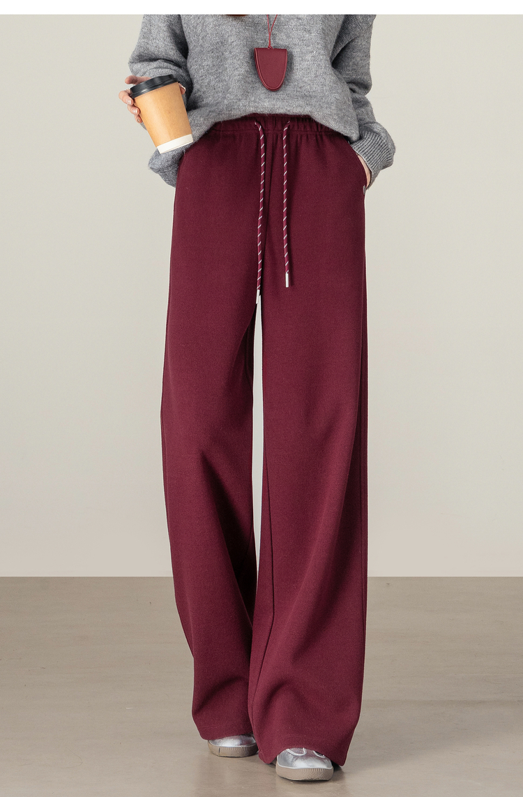 【年终特卖】熙世界【早八神裤】复古红色阔腿裤女士秋季休闲运动高腰直筒长裤