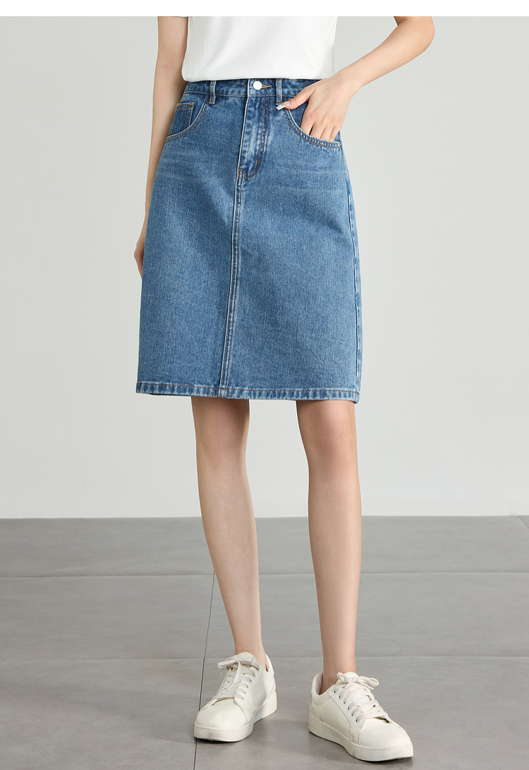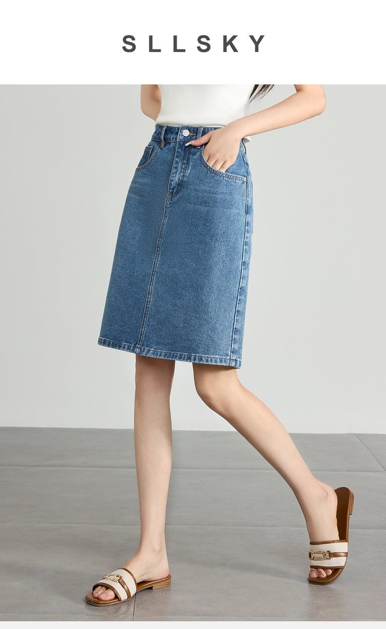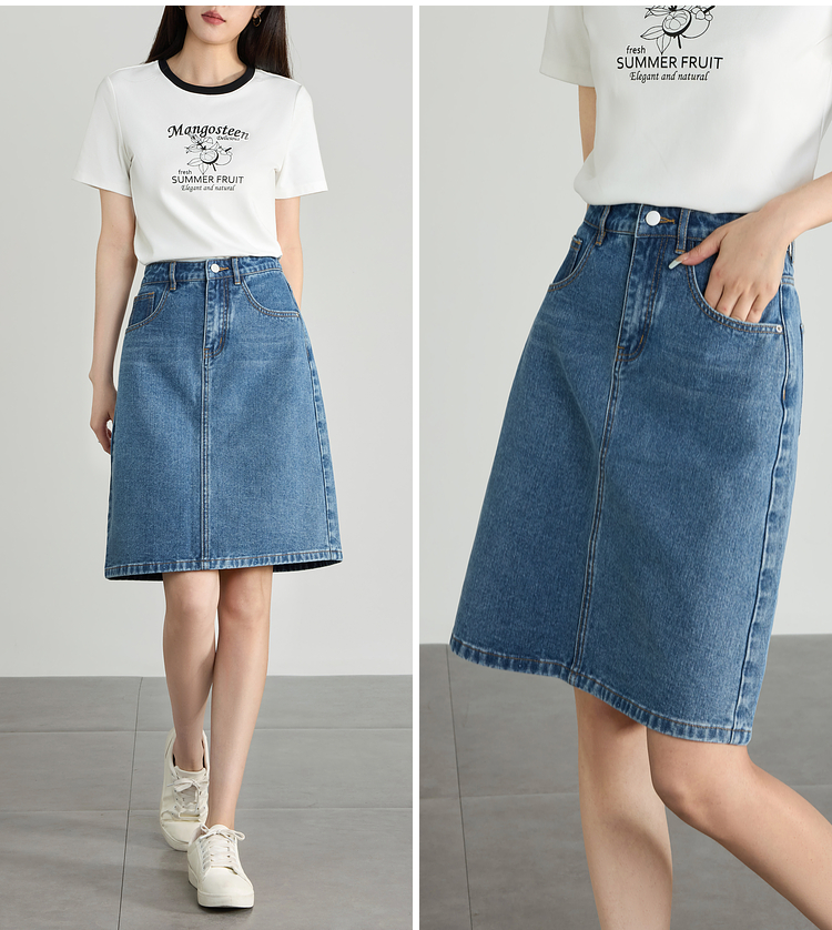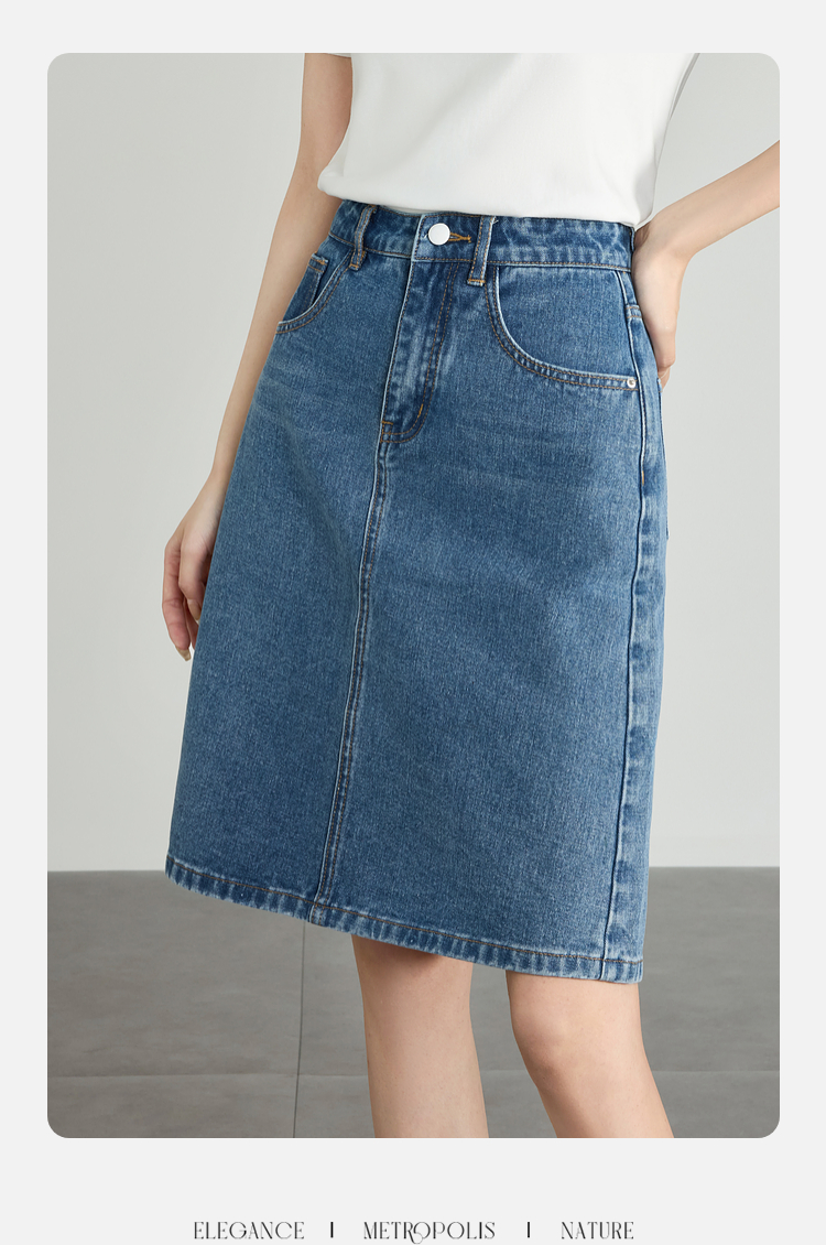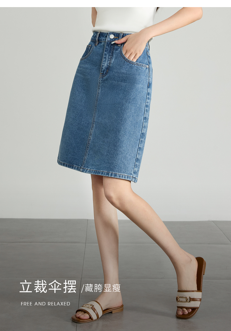 【专属特价】熙世界牛仔半身裙女小个子2025夏新款高腰气质显瘦a字直筒裙子