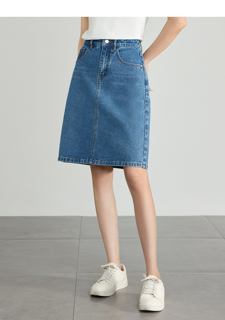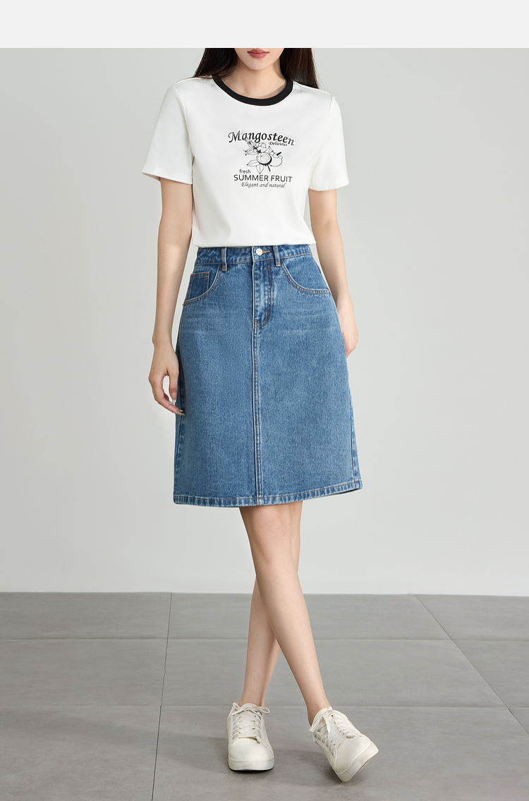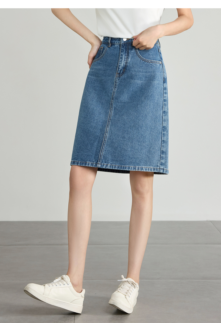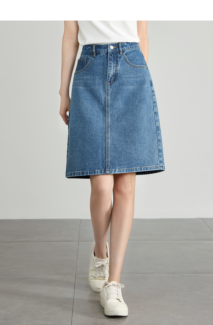 【专属特价】熙世界牛仔半身裙女小个子2025夏新款高腰气质显瘦a字直筒裙子
