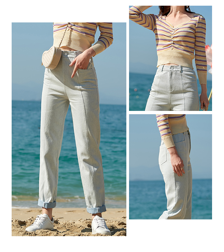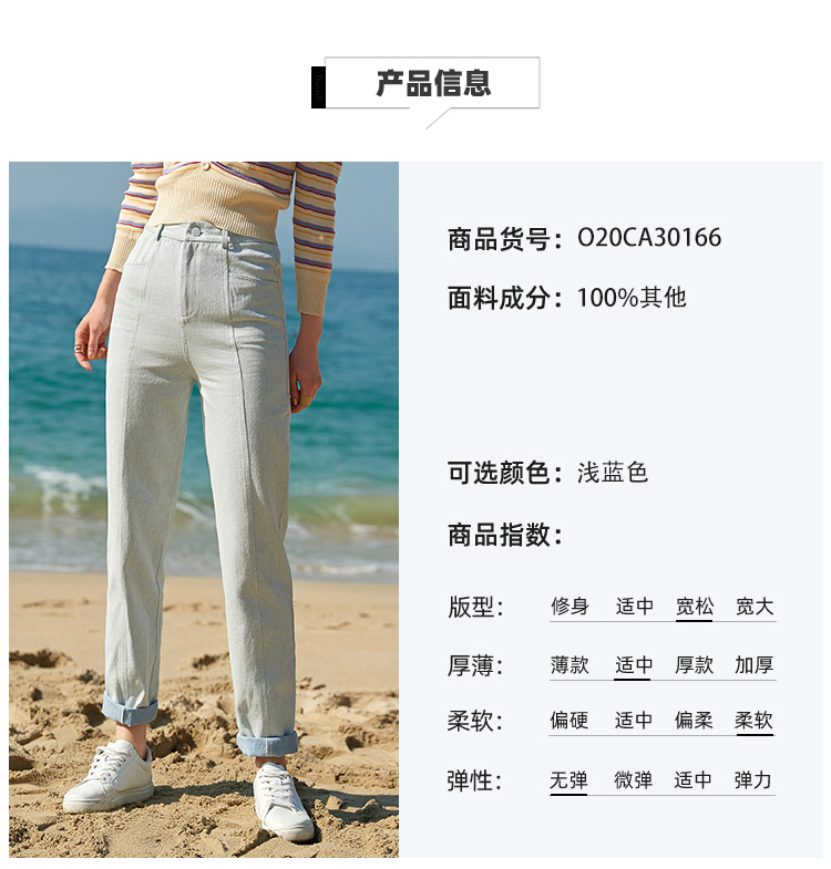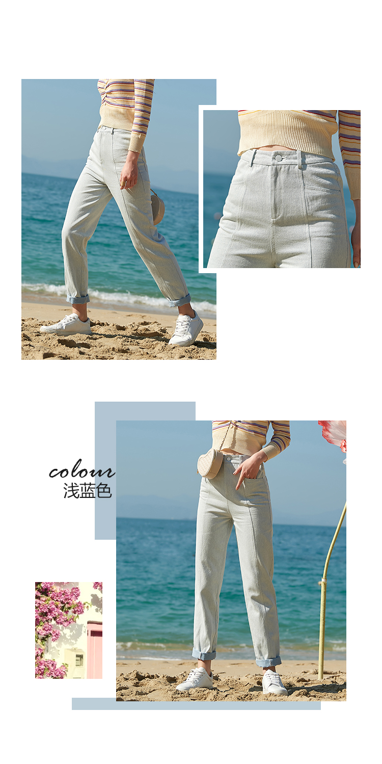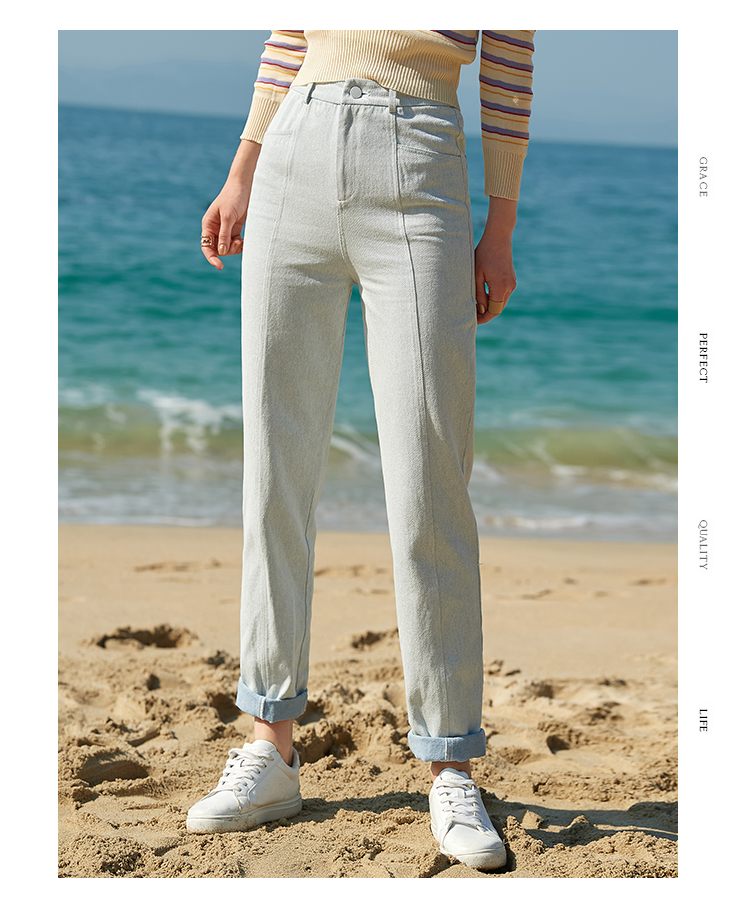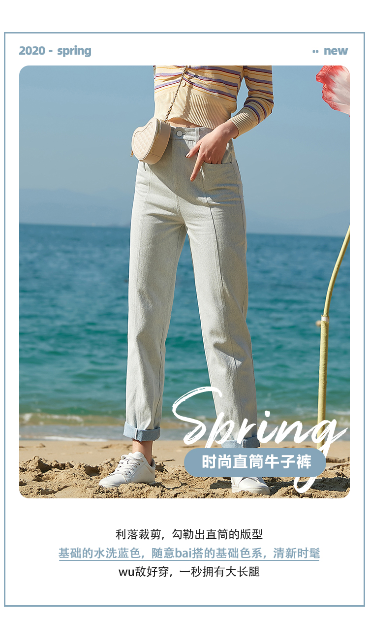 欧芮儿夏新款高腰显瘦直筒牛仔裤女简约时尚百搭浅蓝色长裤
