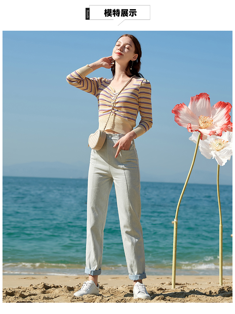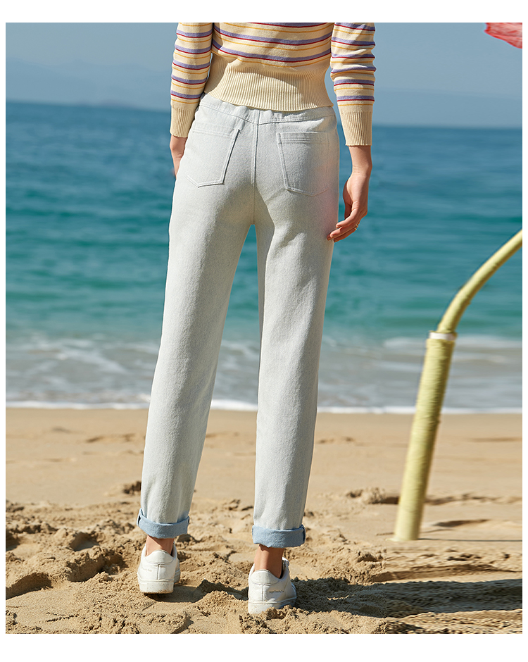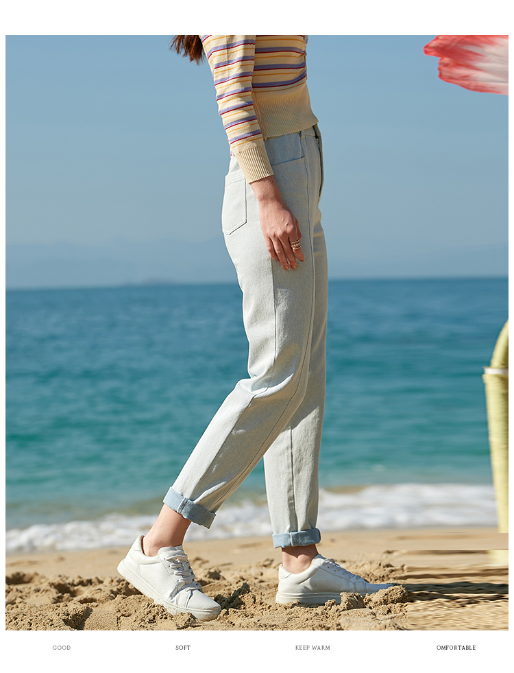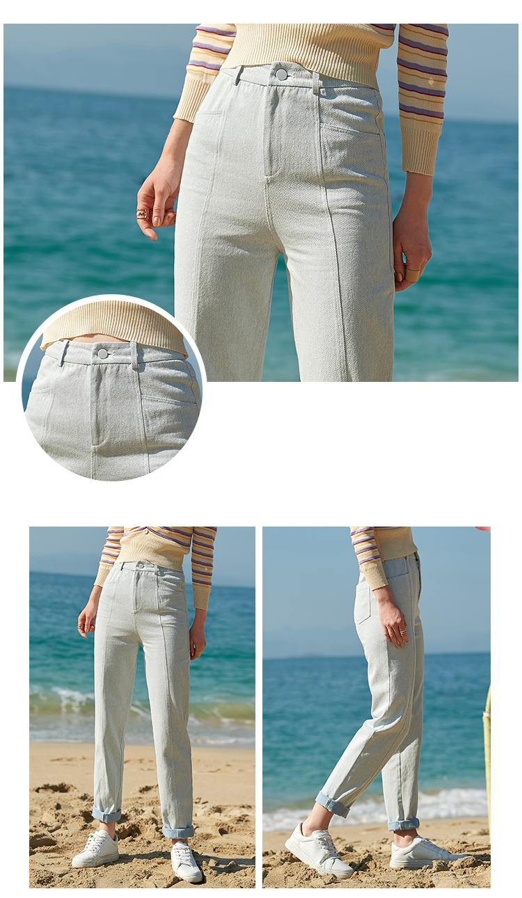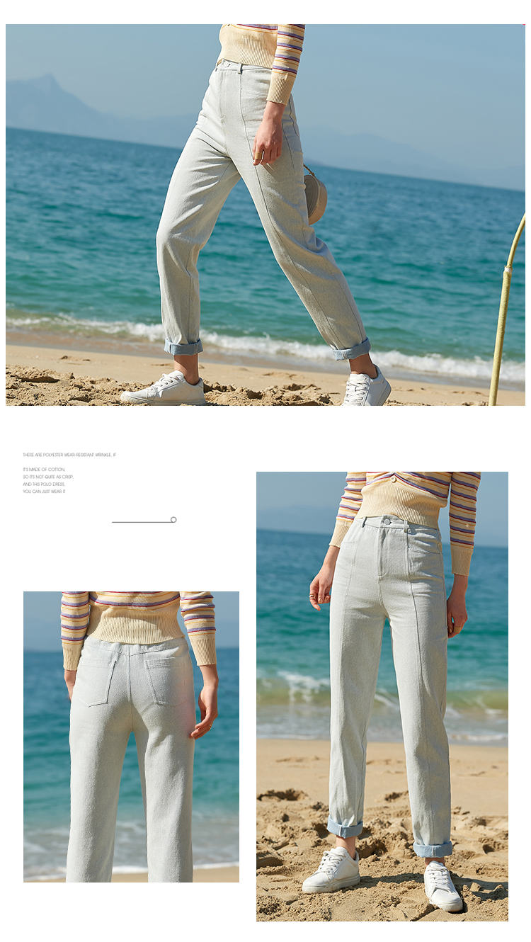 欧芮儿夏新款高腰显瘦直筒牛仔裤女简约时尚百搭浅蓝色长裤