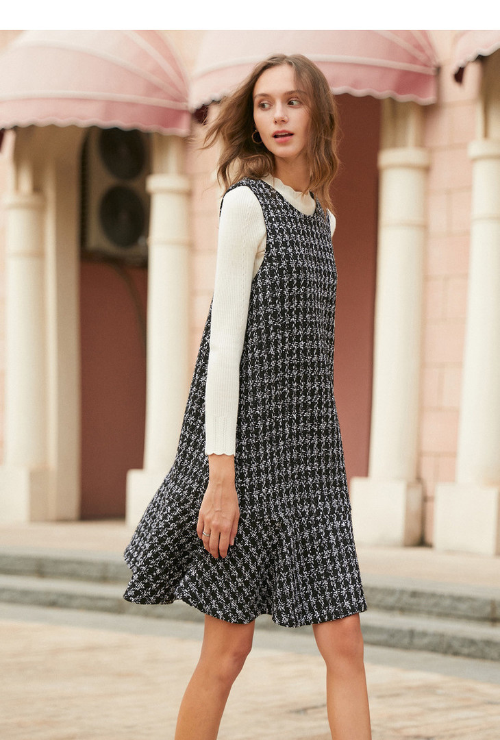 欧芮儿无袖毛呢连衣裙女2019冬装新款中长款A字裙鱼尾裙