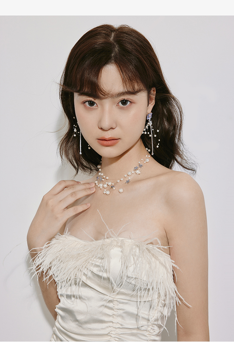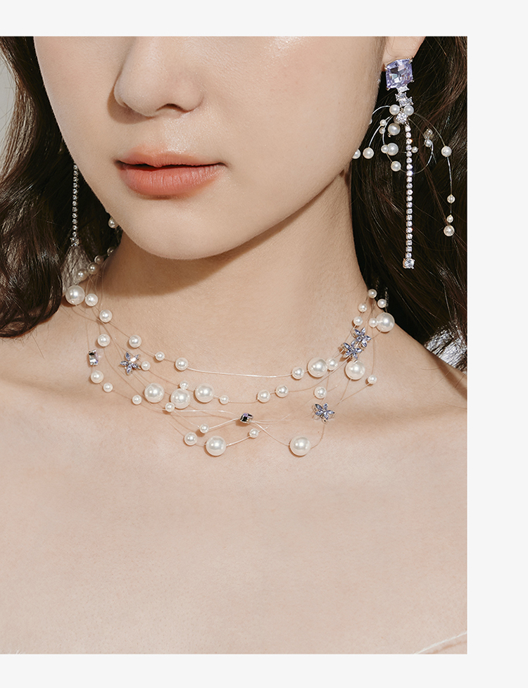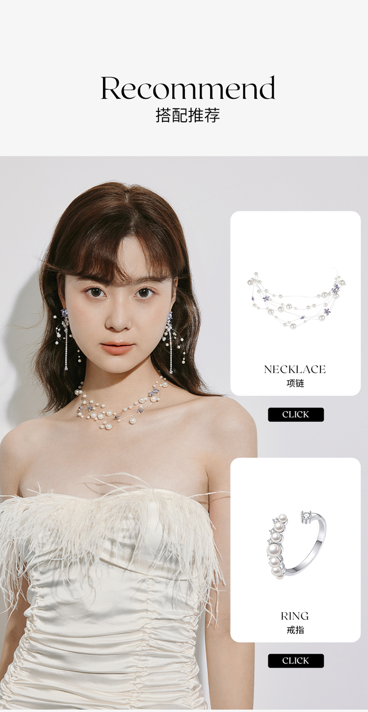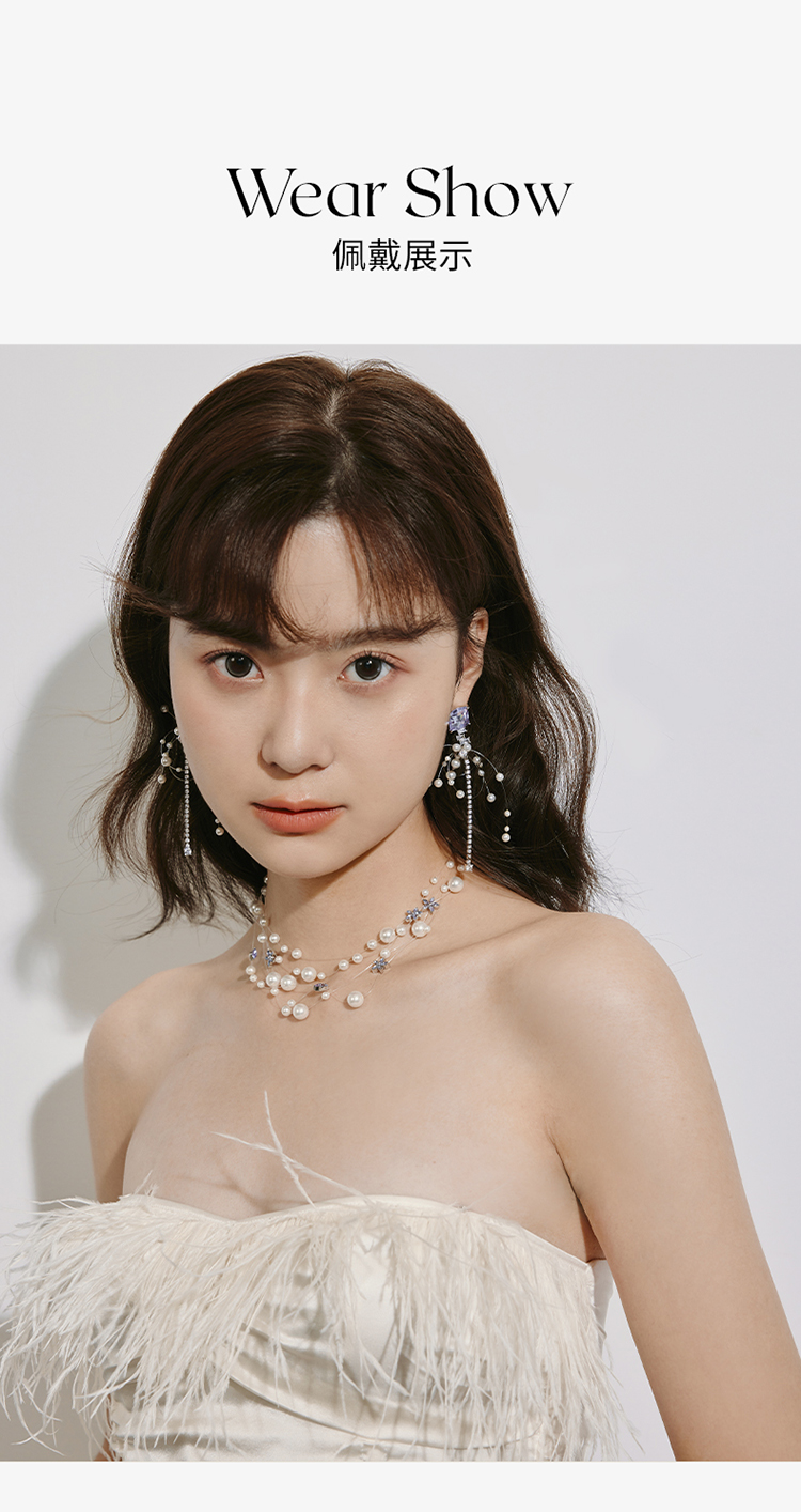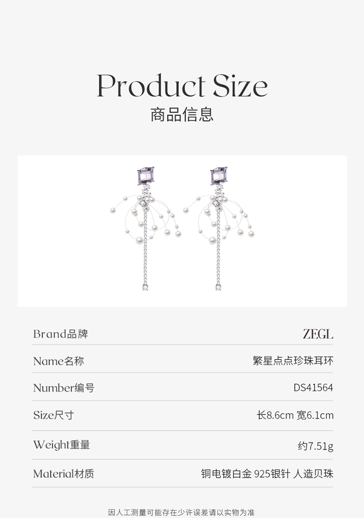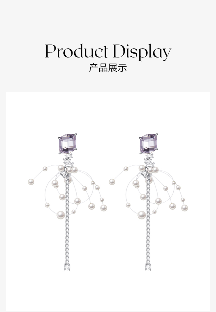 ZEGL设计师紫罗繁星系列法式仿珍珠满天星耳环女流苏耳钉银针耳饰