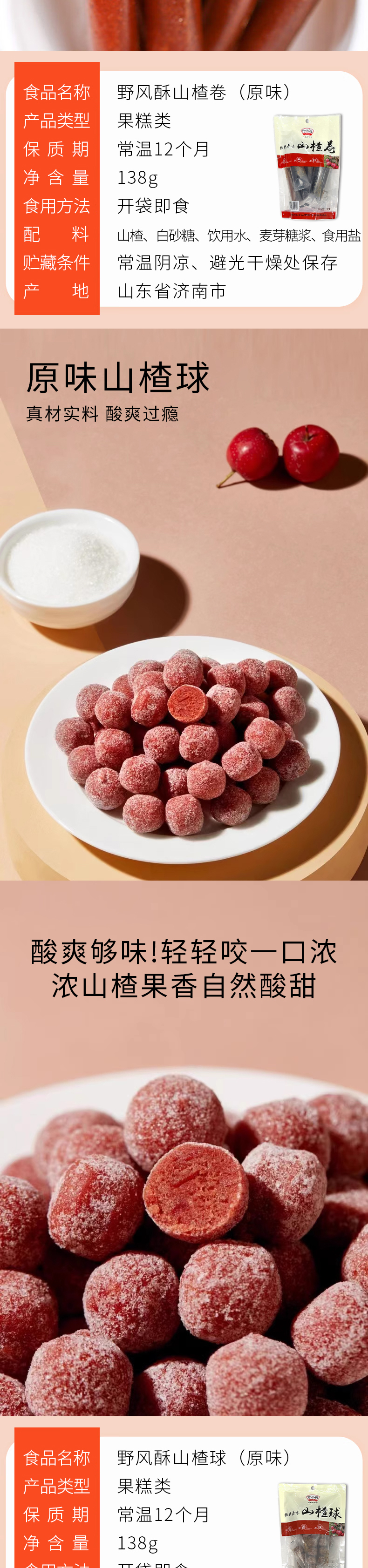 野风酥山楂条I 山楂球I 山楂卷138g-500g 原味