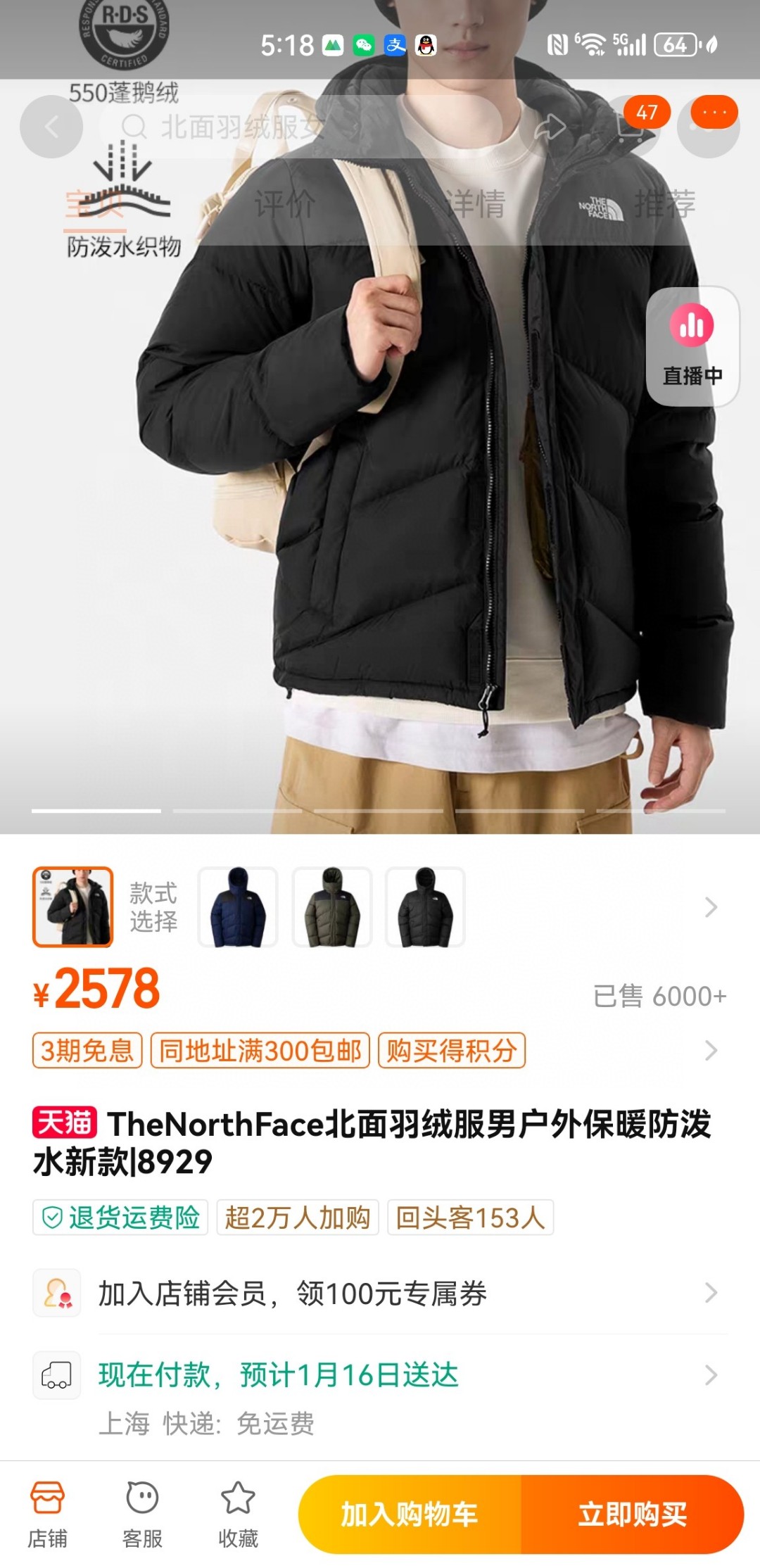 只有XL码...北面TNF鹅绒550蓬的经典拼接款羽绒服.. 专柜2698元在售..