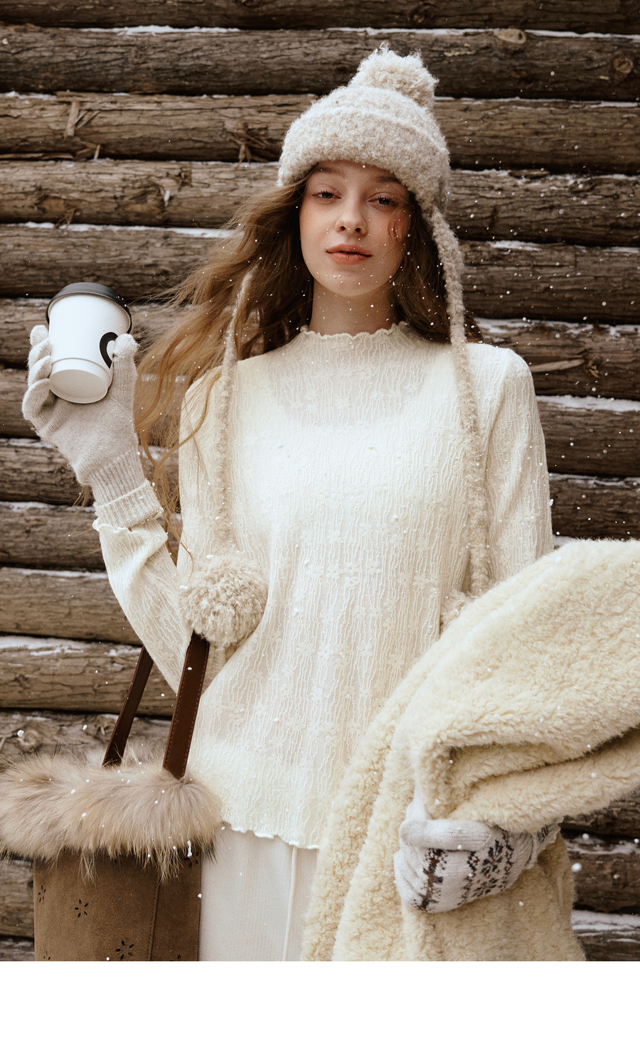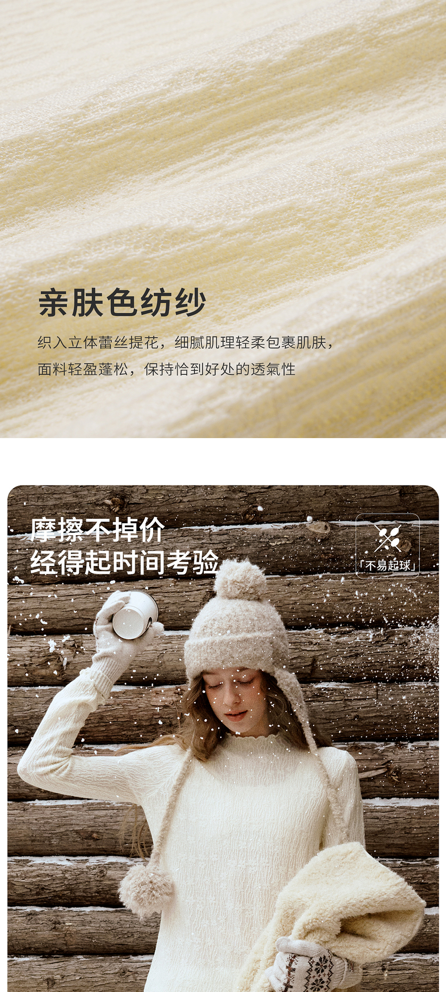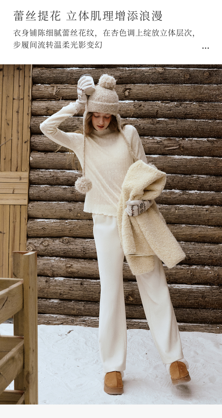 木耳边蕾丝提花半高领微透套头针织衫女冬季内搭法式杏色长袖T恤
