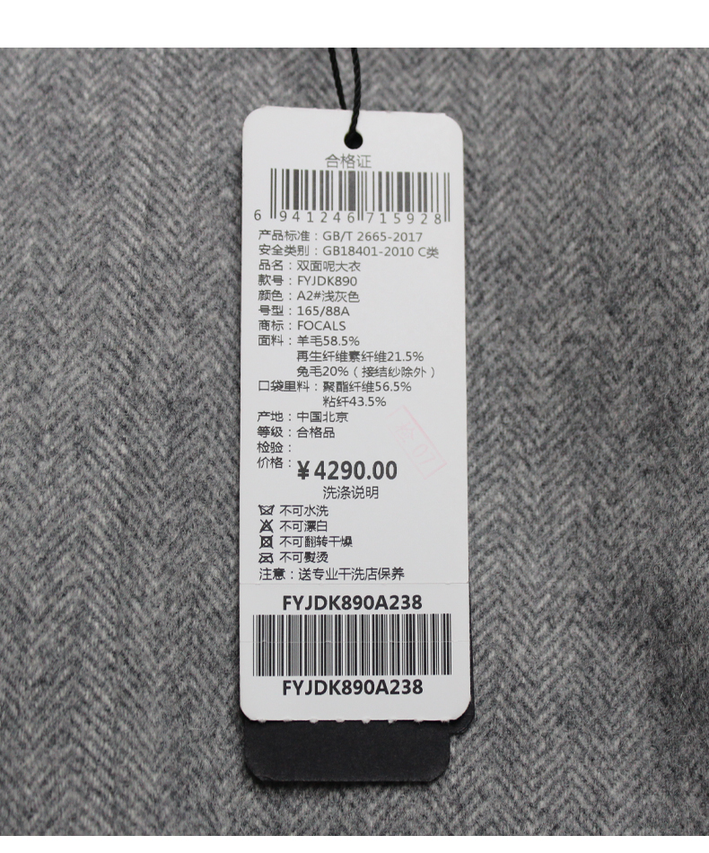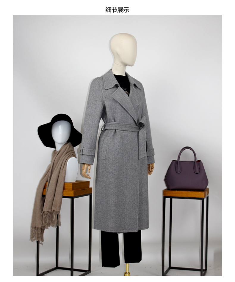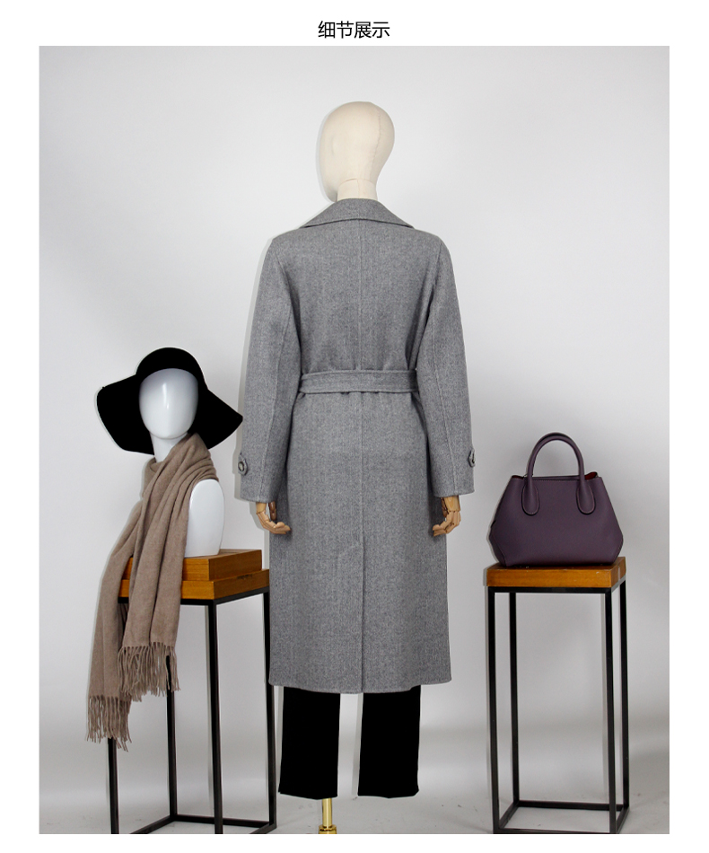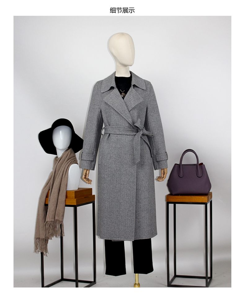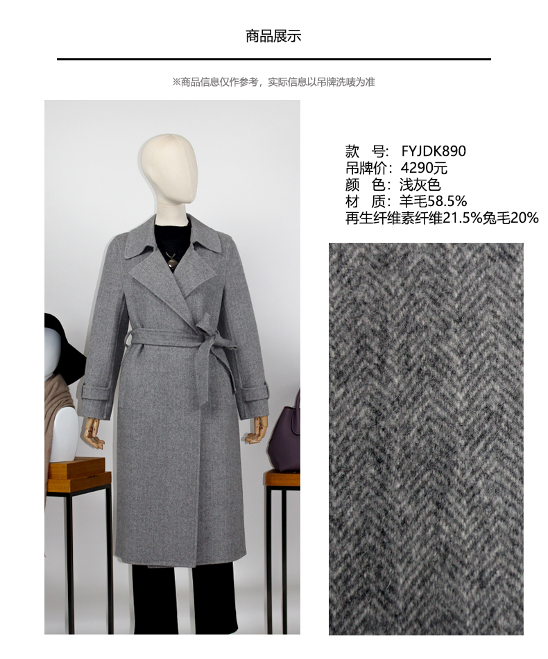 FOCALS福柯斯冬季新款中长款人字纹羊毛兔毛双面呢大衣FYJDK890A2
