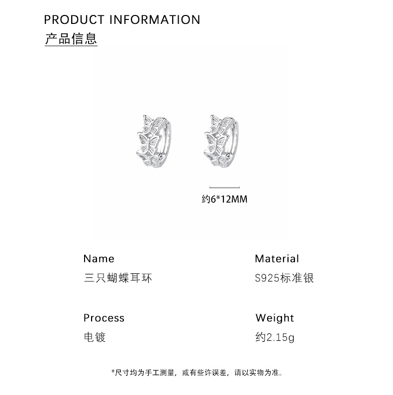 【蝴蝶清欢】S925银三只蝴蝶耳环【YXS-E4318】