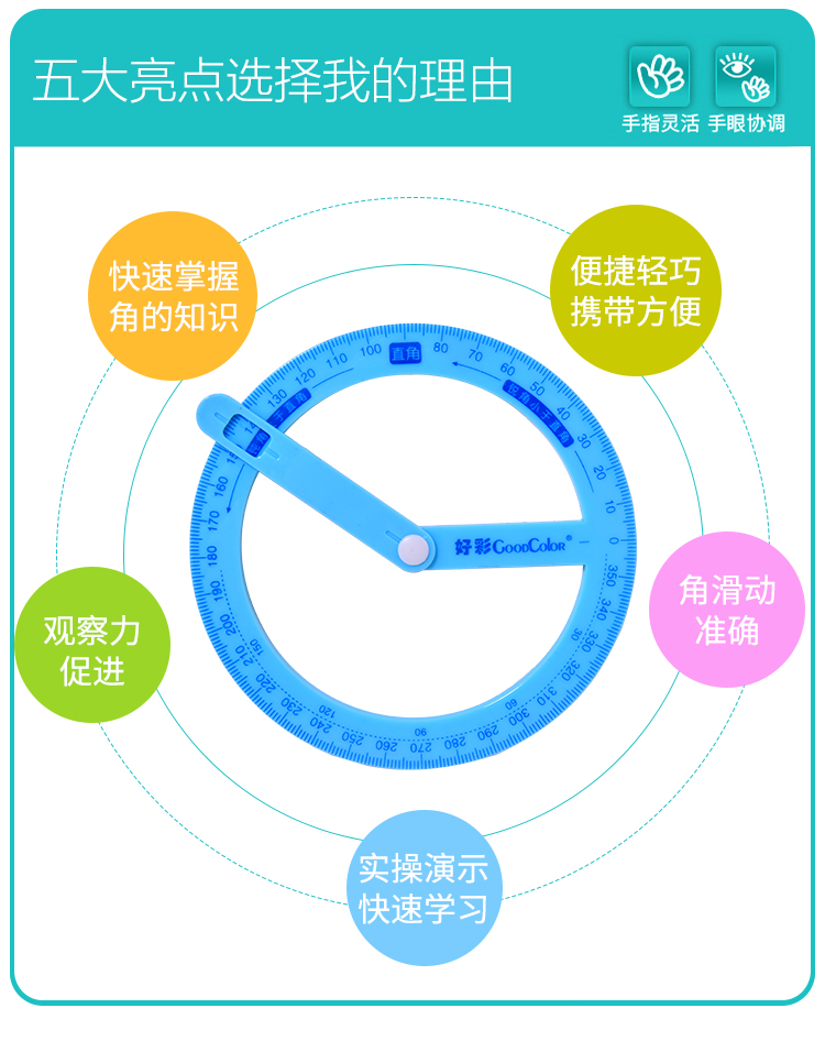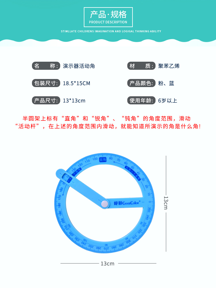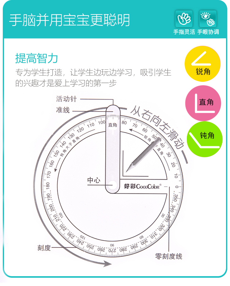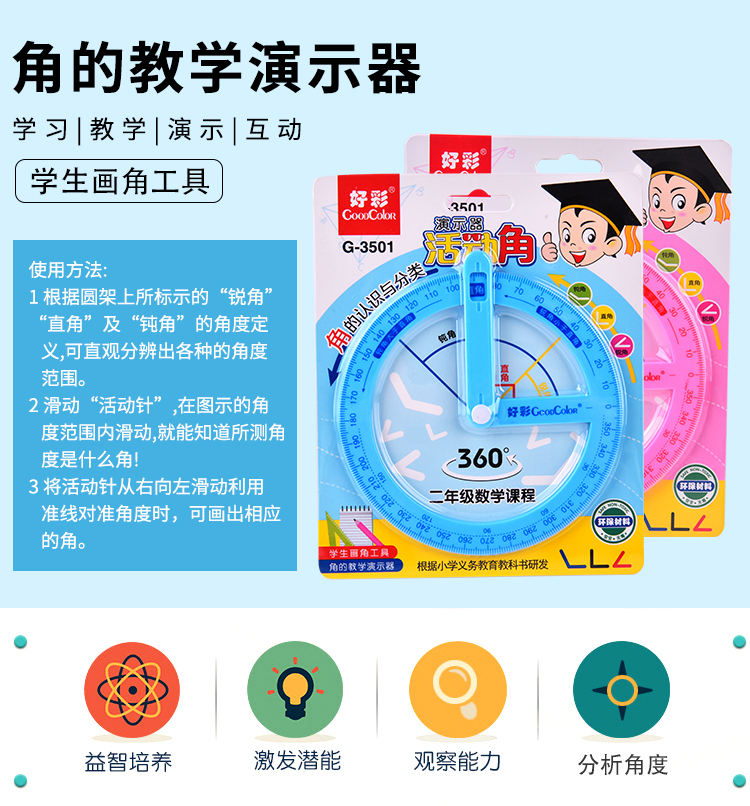 【大号活动角教具】小学生角尺子二年级角的初步认识学具直角锐角钝角演示器