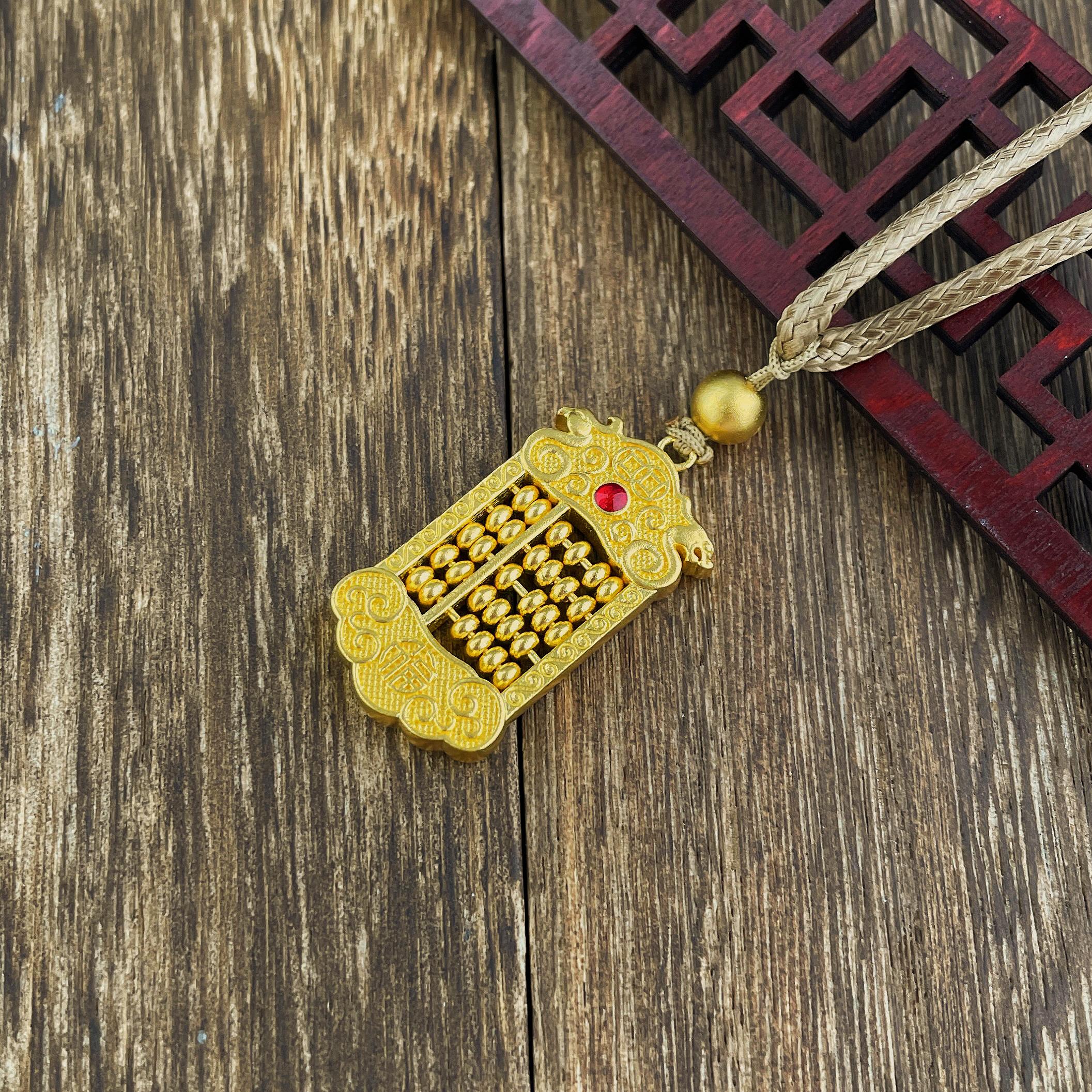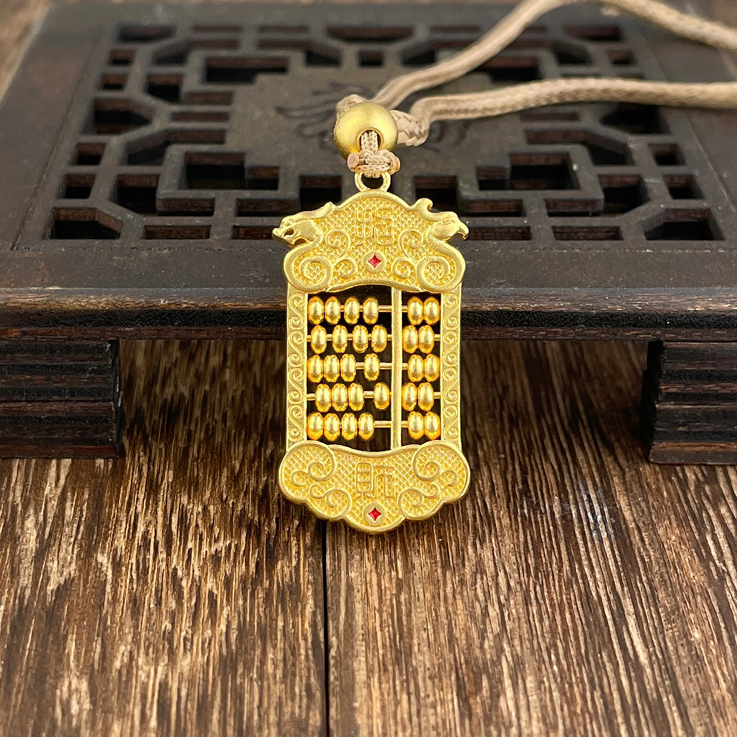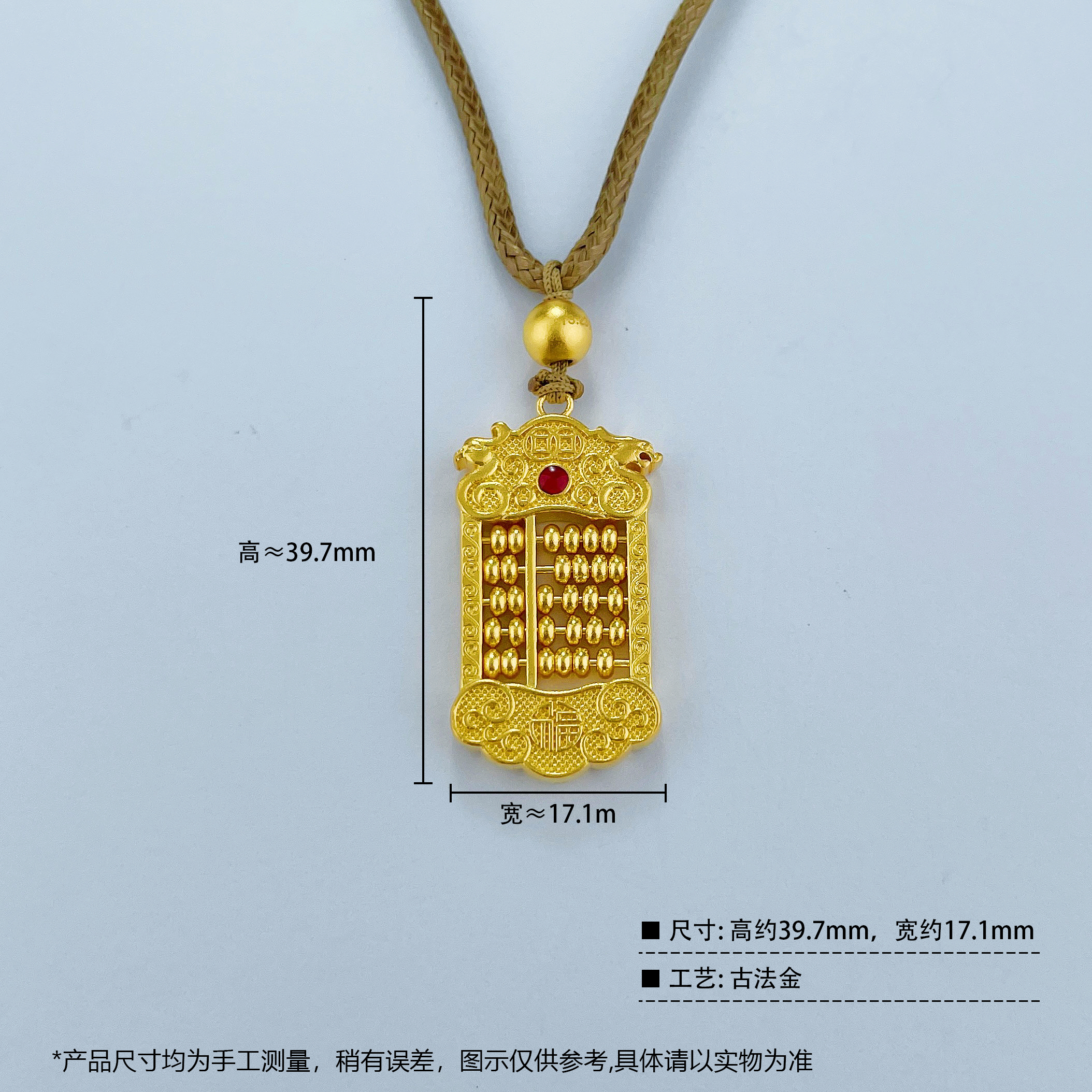 【限时克减150元】足金999 古法珐琅镂空如意龙凤算盘挂绳吊坠(含珠子)(算盘珠可动)(YGFDZ00289)(预售产品下单后不退款不退货不换货不补差价)