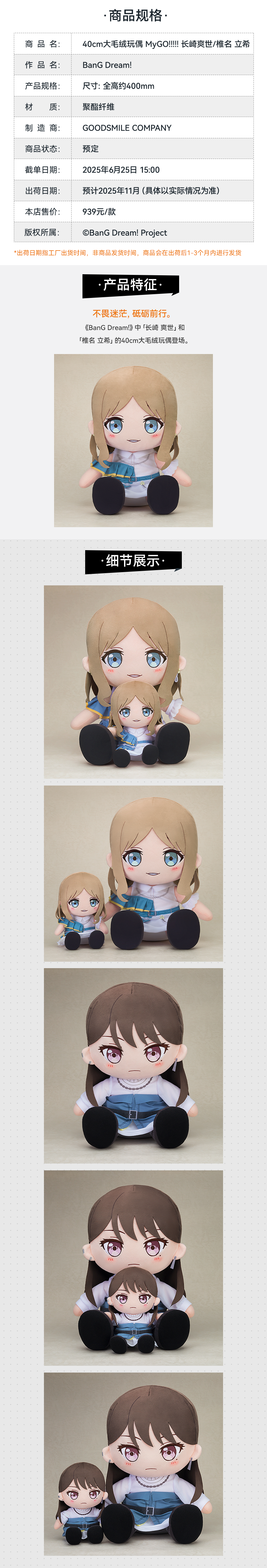【GSC现货】40cm大毛绒玩偶 MyGO!!!!! 长崎爽世/椎名 立希 BanG Dream!