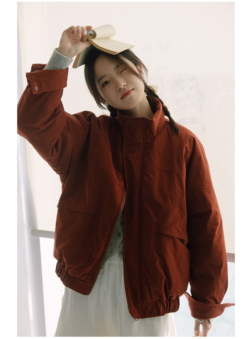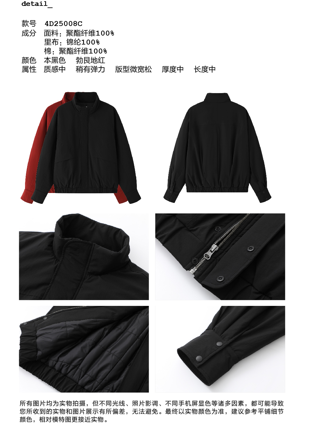 步履不停4D25008C/短款圣诞新年红色夹克棉服