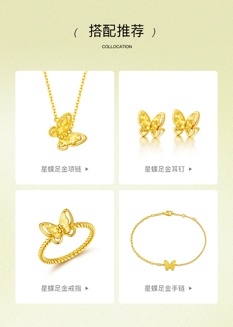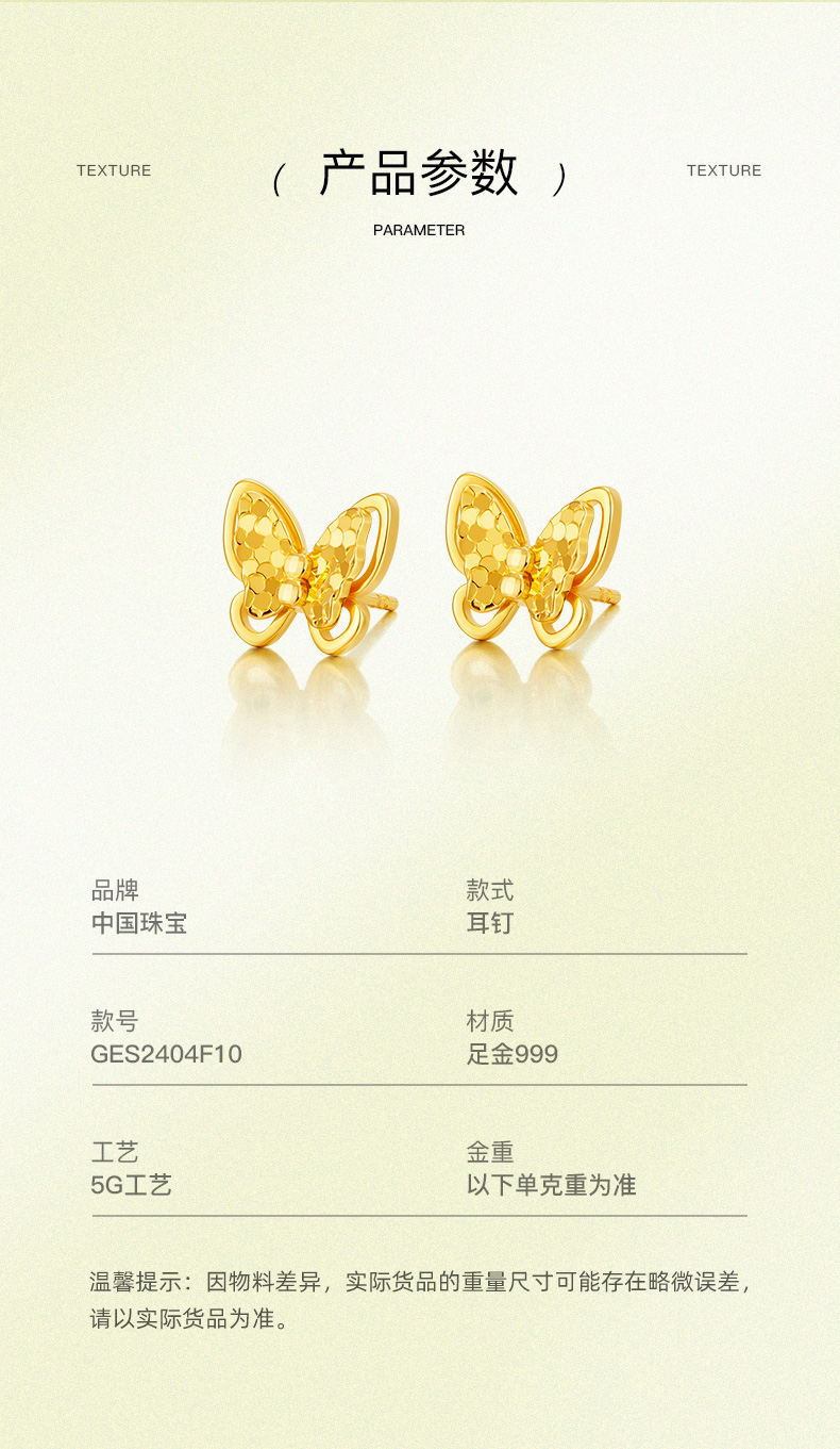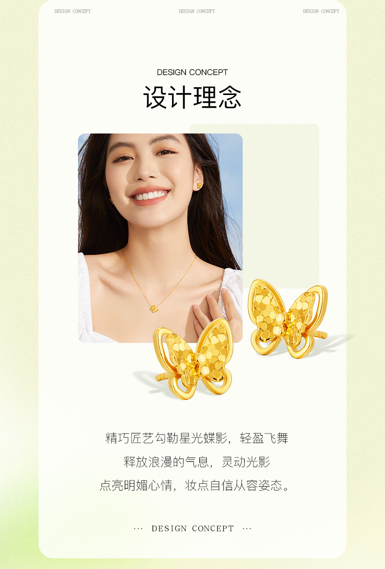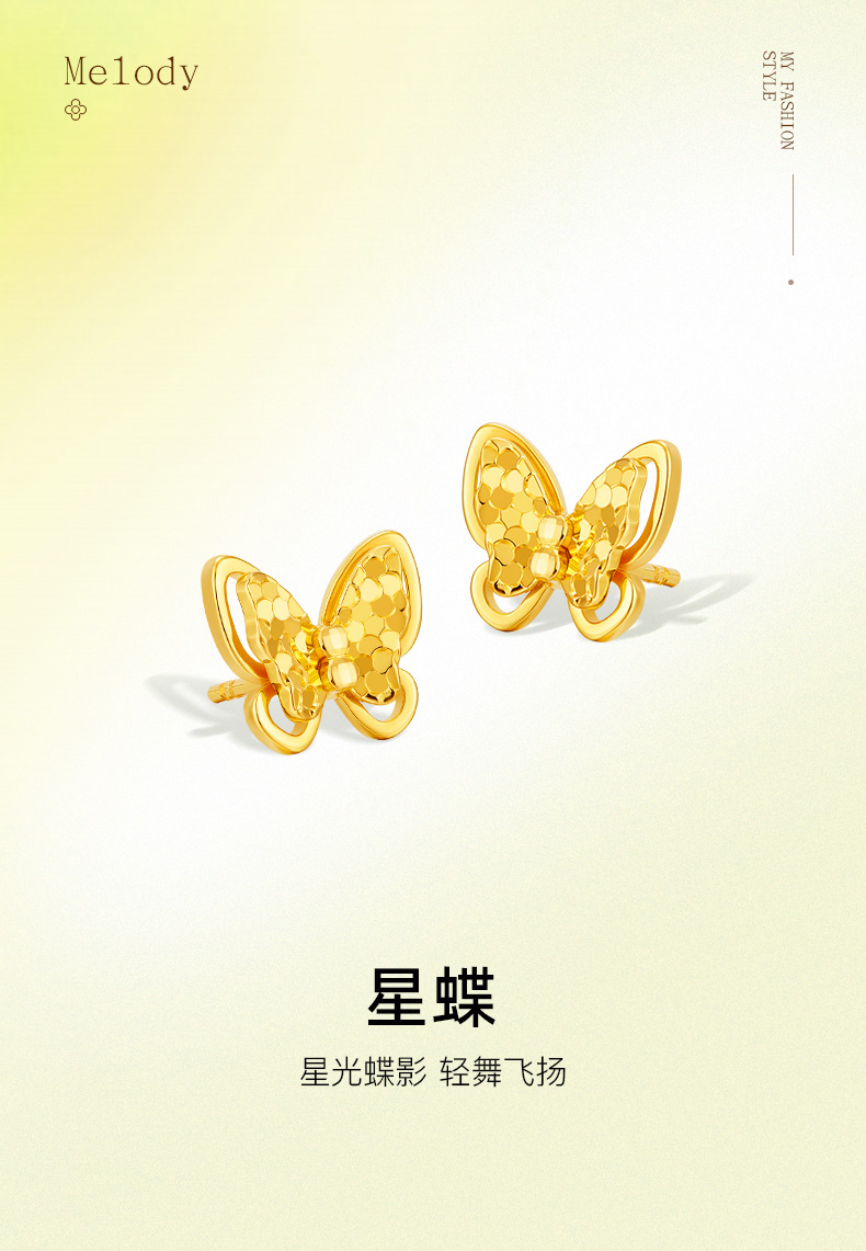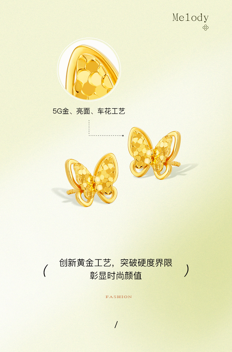 「追光」星蝶黄金足金爆闪蝴蝶耳饰耳钉
