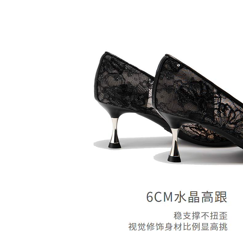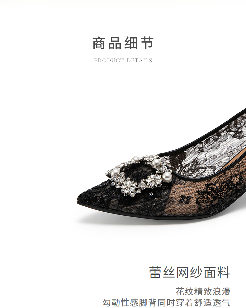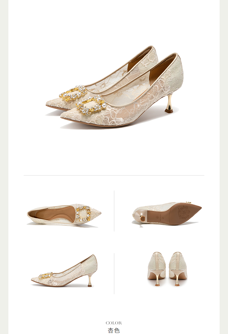 natursun高跟鞋女细跟水钻扣蕾丝尖头婚鞋优雅单鞋N25124227