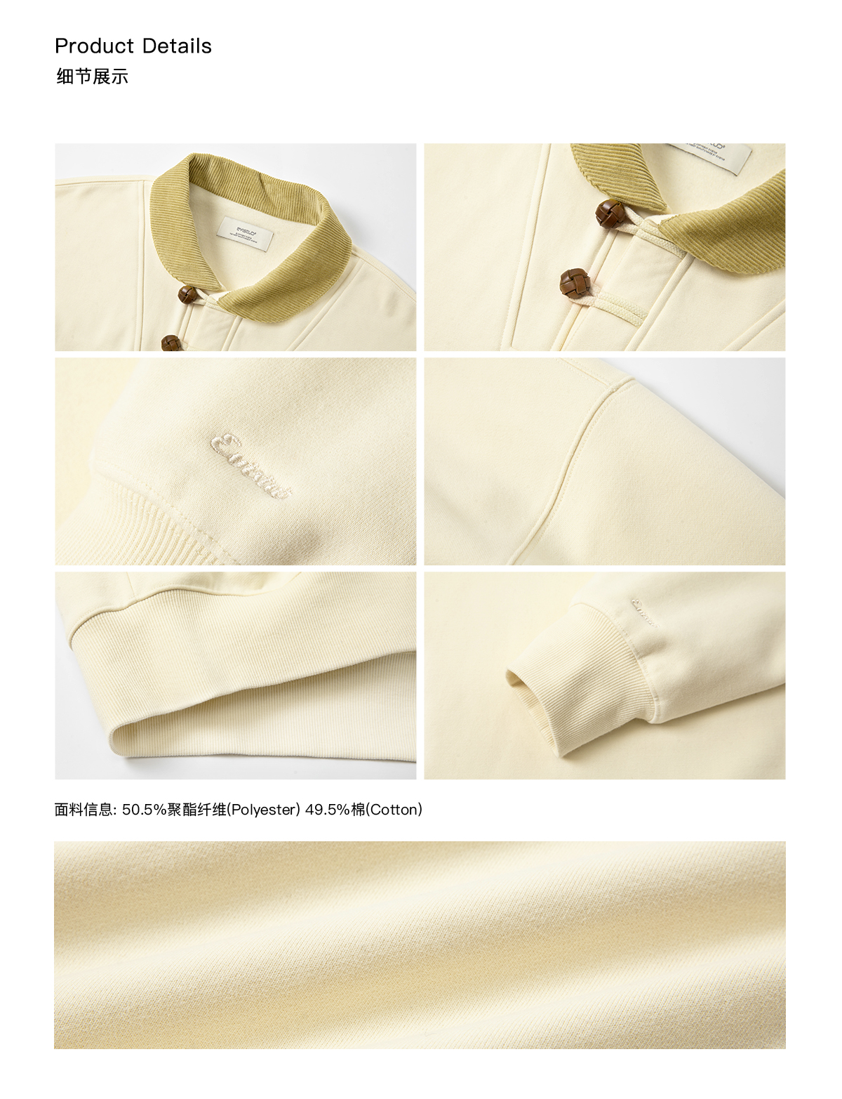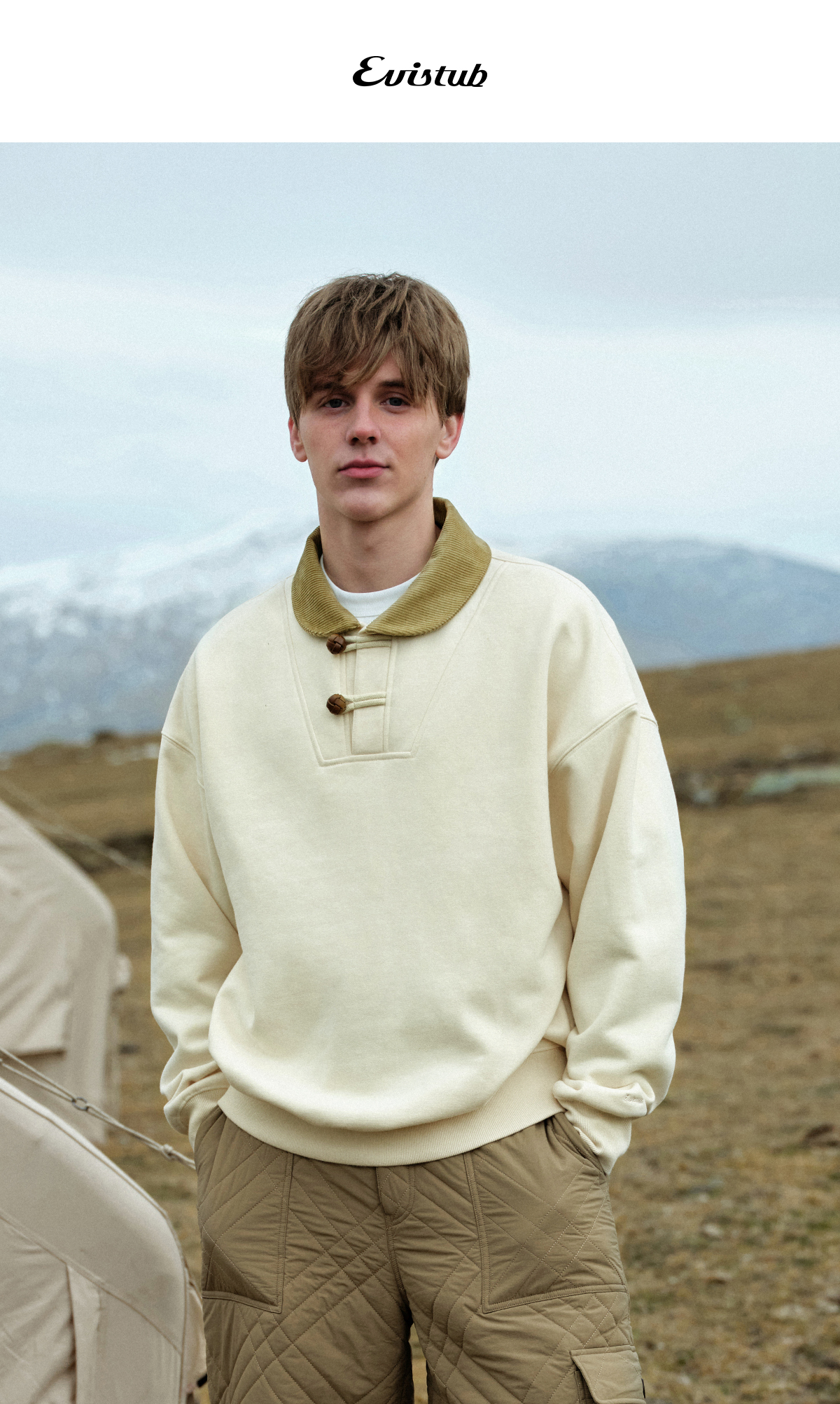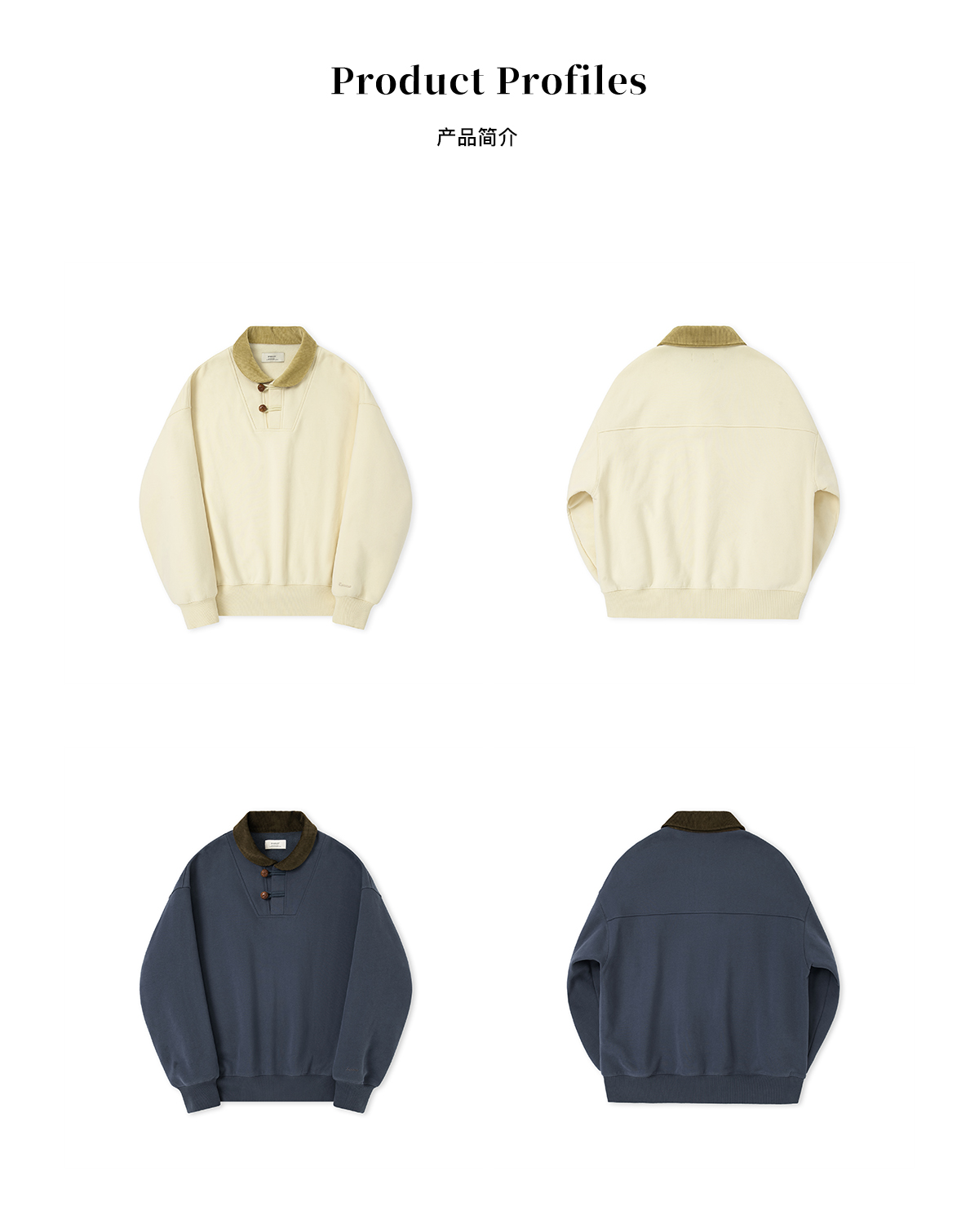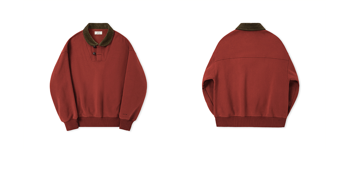 Evistub/E-4DWY933/碳素磨毛重磅450G灯芯绒真皮纽扣复古海员青果领卫衣