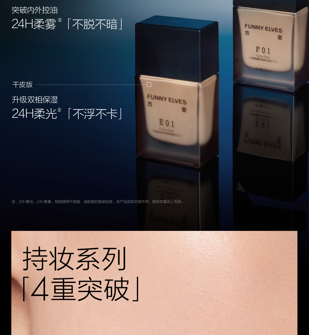 Funnyelves方里粉底液盈润/柔雾轻薄持妆粉底液25ml干皮混油皮3.0版持久不脱妆