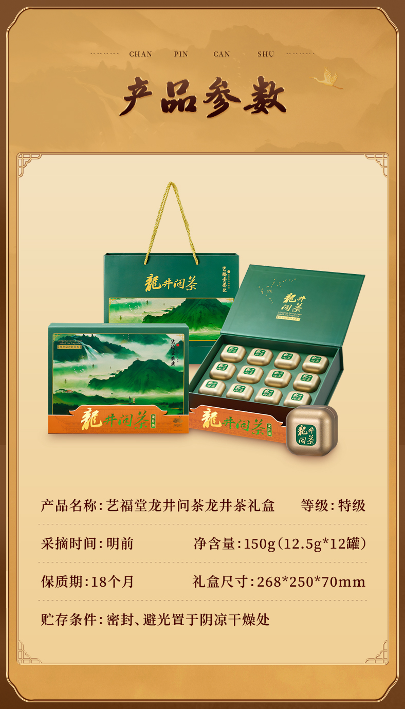 【新茶上市】艺福堂 2025新茶中秋茶叶礼盒 龙井问茶礼盒150g/盒 特级