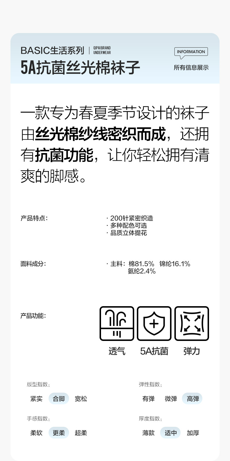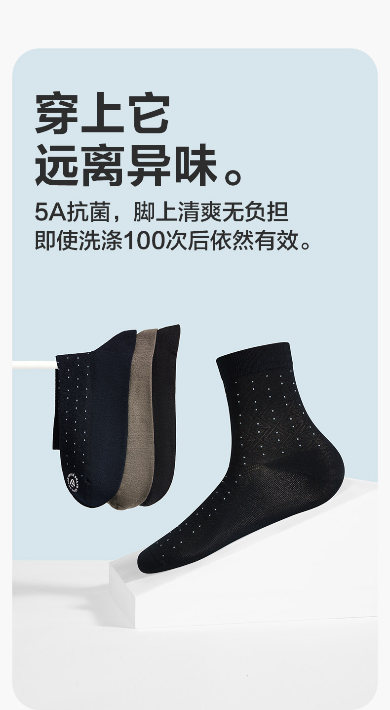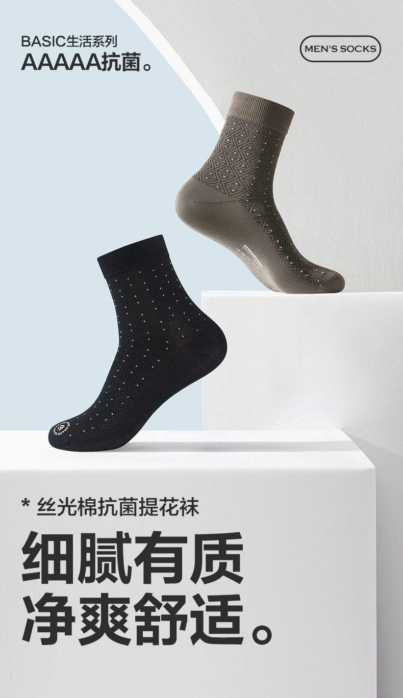 柒牌丝光棉袜子男士中筒袜春夏季休闲百搭男式透气抗菌防臭长袜子 126F70340