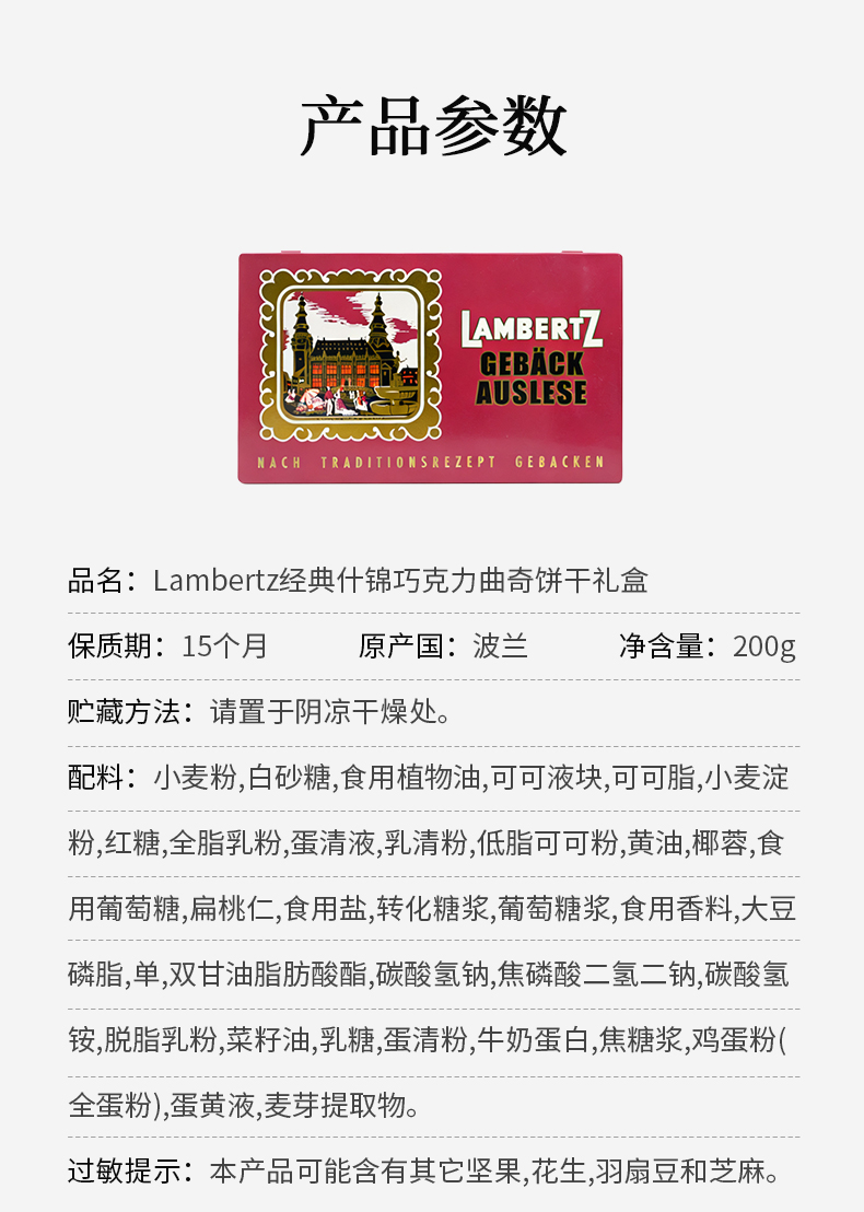 【新品上新】Lambertz经典什锦巧克力曲奇饼干礼盒200g 醇厚巧克力包裹蛋香 香酥口感绽放味蕾 152857