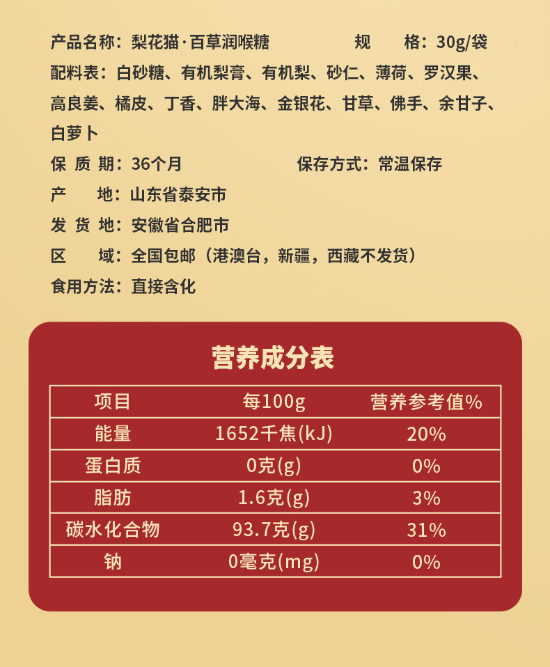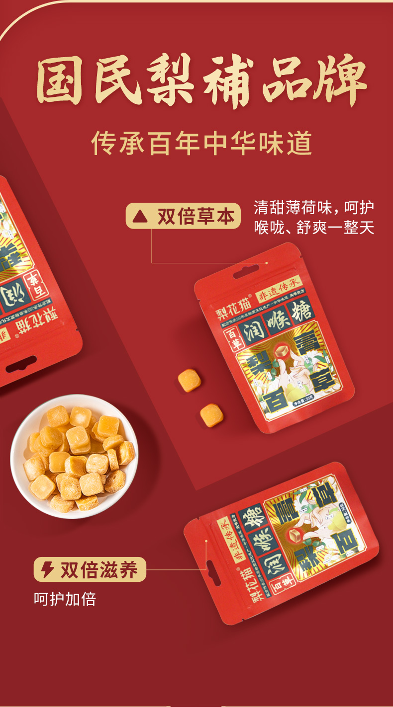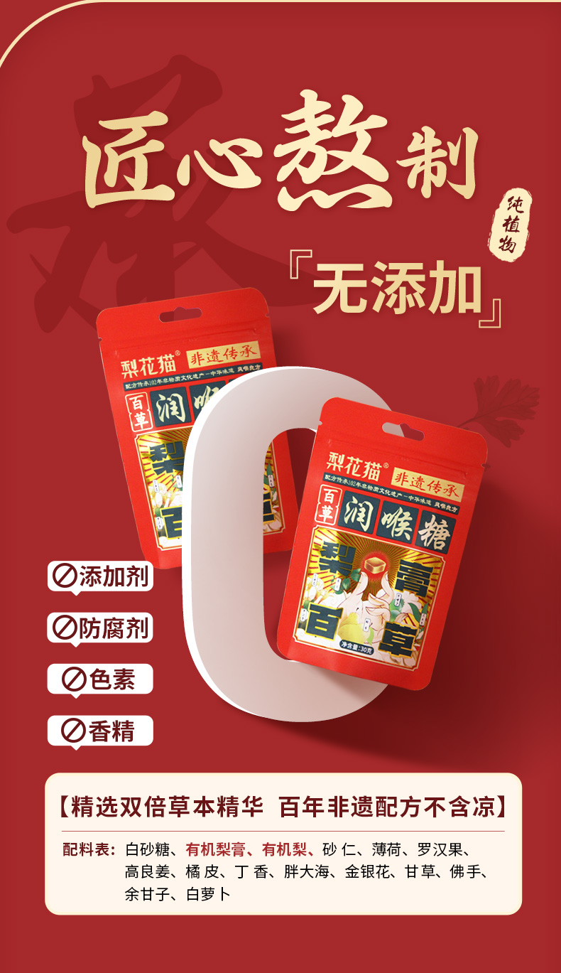 【梨花猫草梨膏糖/百草润喉糖】0添加 0防腐剂 口感清爽