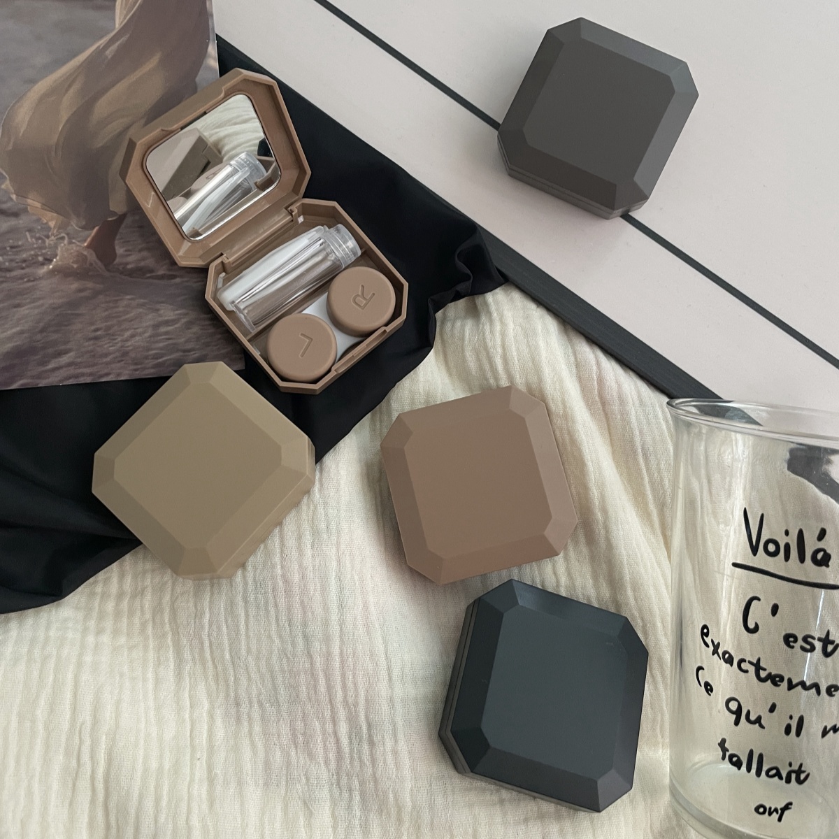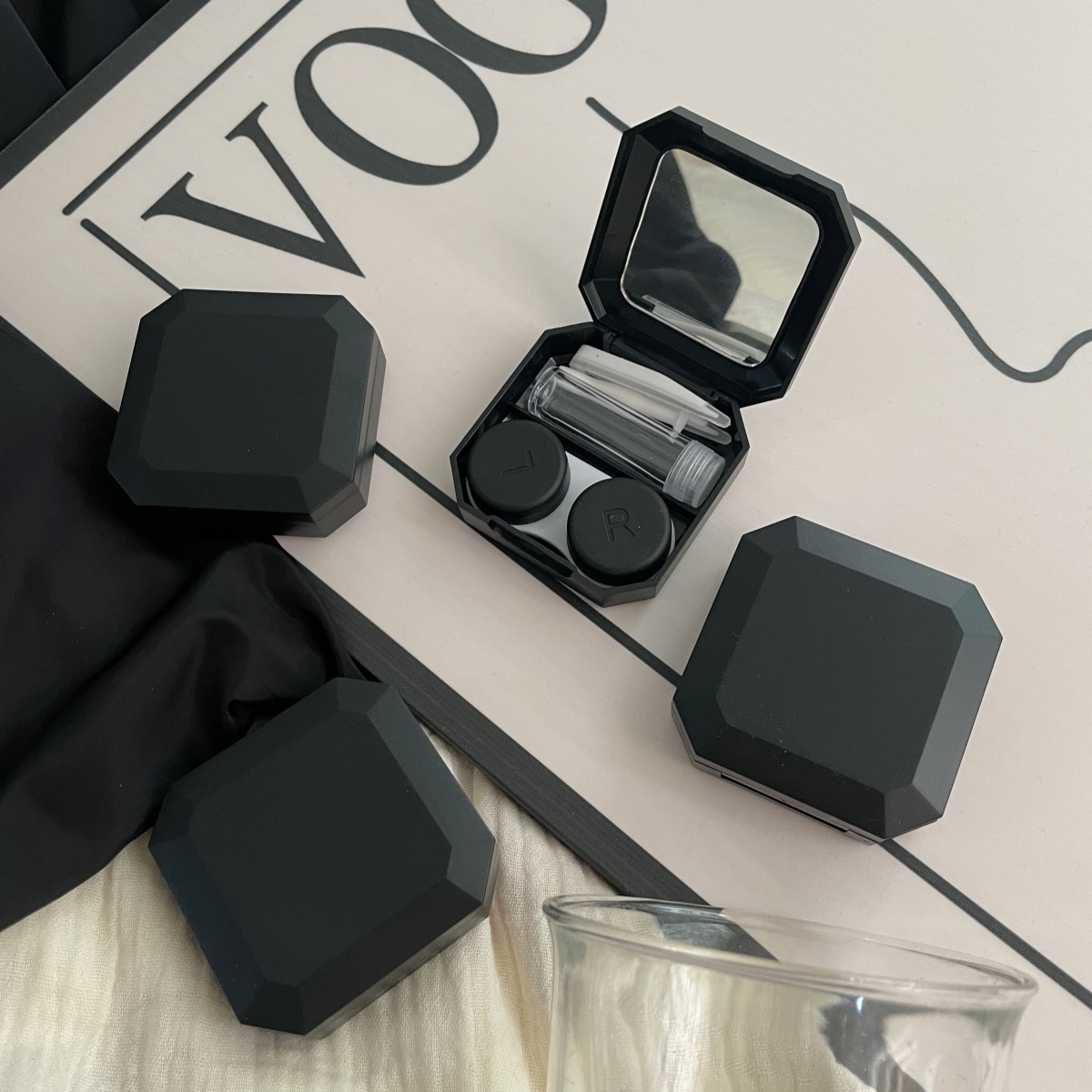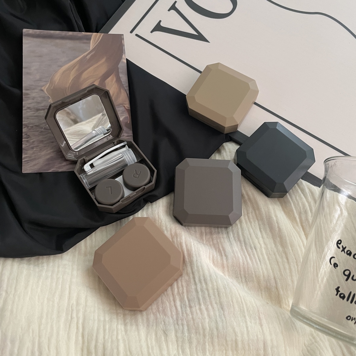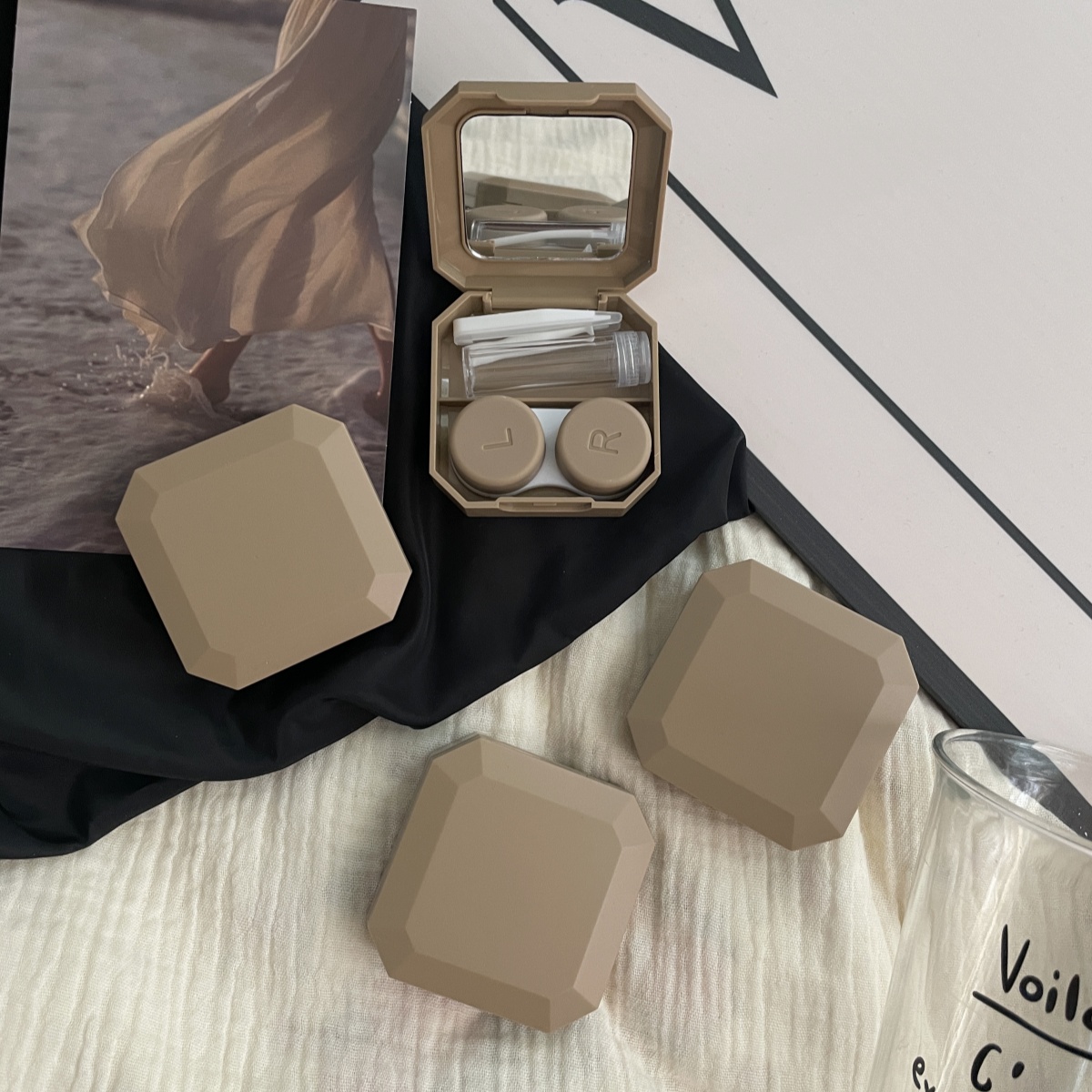 伴侣盒套装组成:双联盒、镊子、配戴棒、小瓶子、镜子。