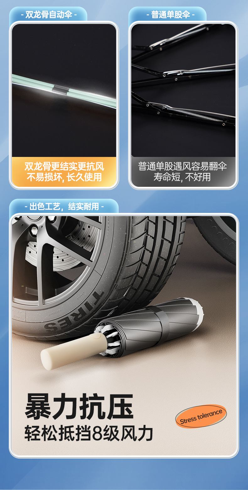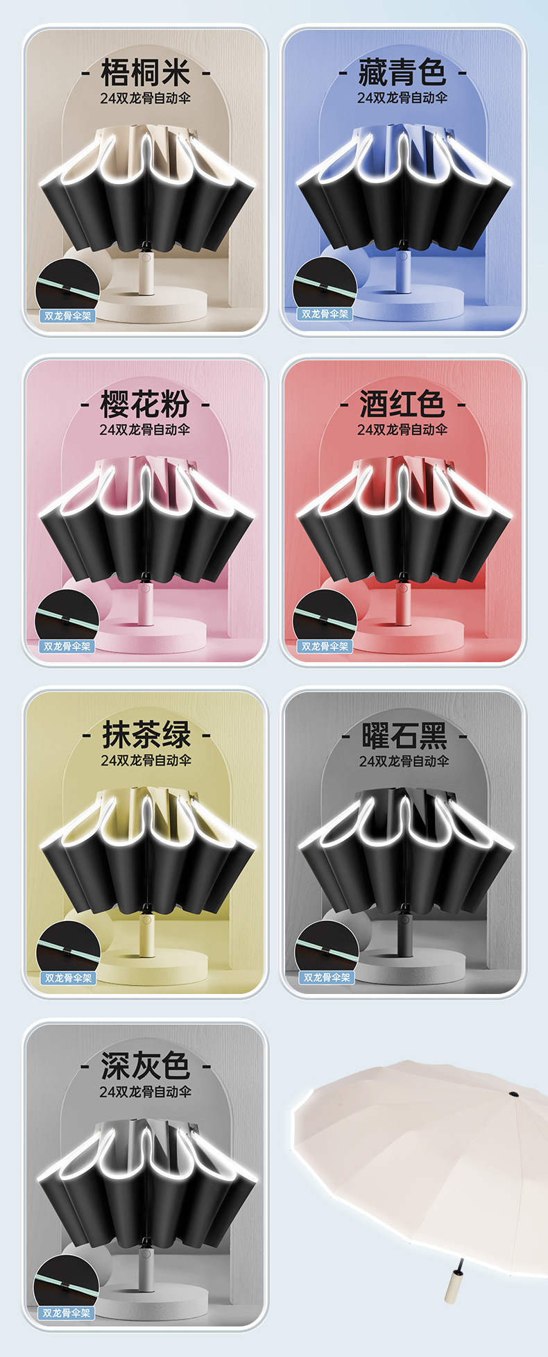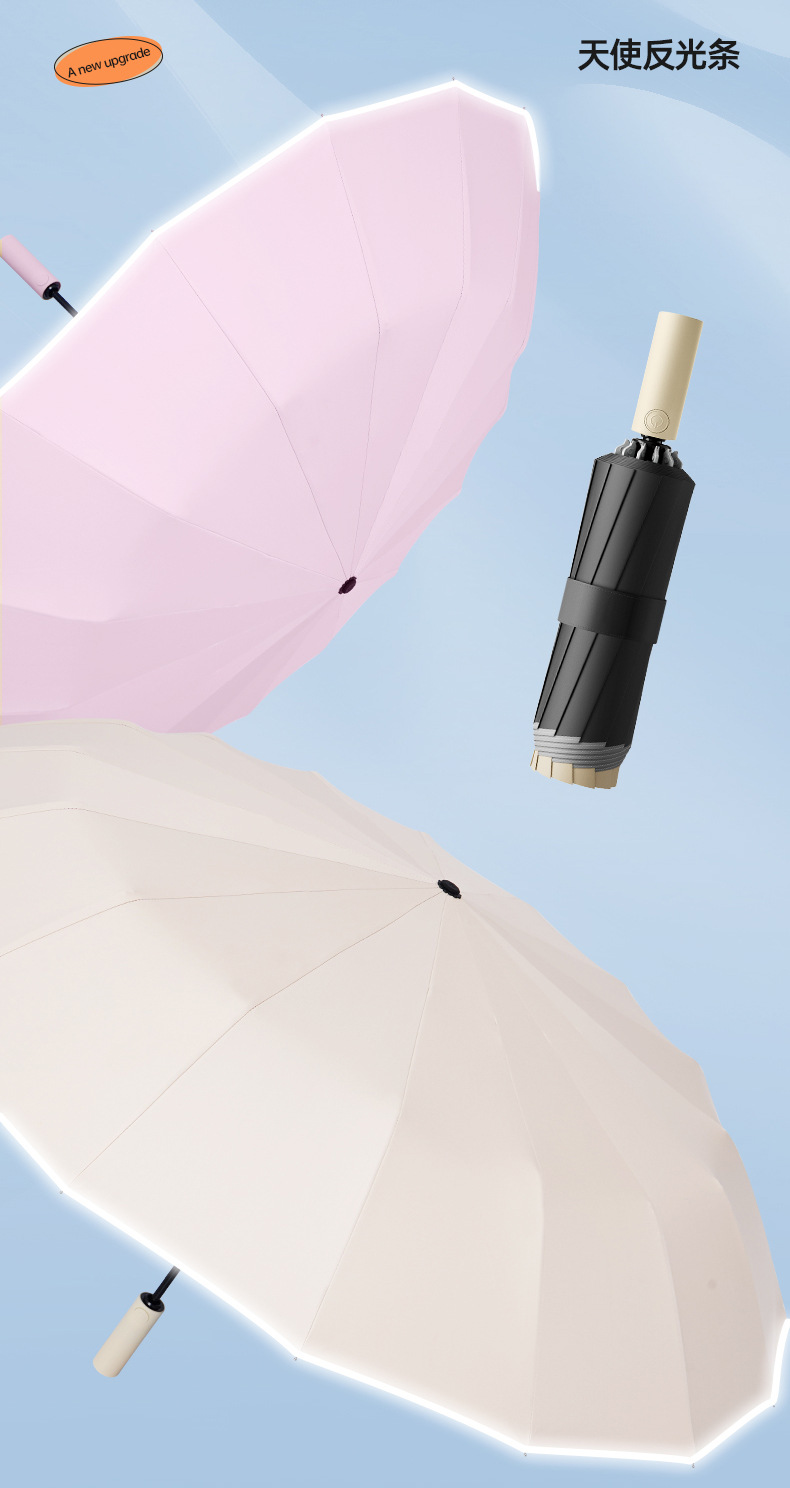 【秒开秒收,新款双骨反向伞】24骨反向伞全自动晴雨两用伞 自带反光条夜晚更安全 黑胶防晒UPF50+
