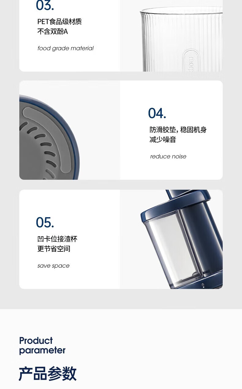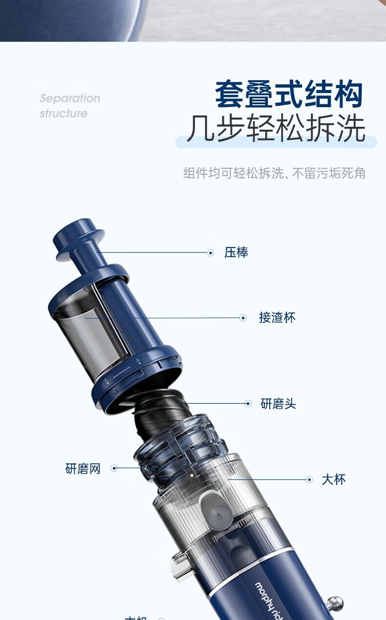 摩飞电器(Morphyrichards) 榨汁机家用渣汁分离原汁机便携式炸果汁机迷你小型榨汁杯 MR9901 【高出汁率/免滤直饮】轻奢蓝