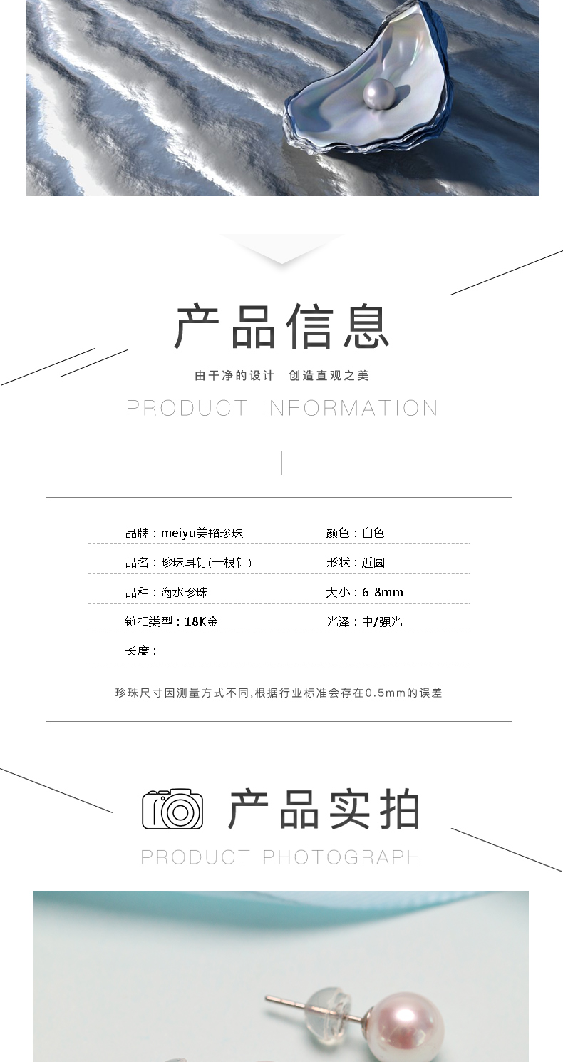 美裕 【至简】金18k海水珍珠耳钉 一根针102698 102701 97457