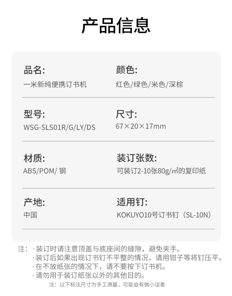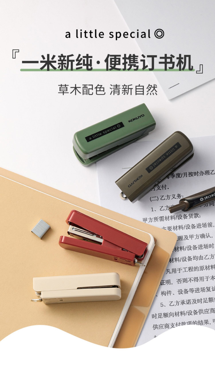 kokuyo国誉一米新纯订书机便携啪嗒迷你小巧学生随身试卷资料装订工具文件整理学生省力