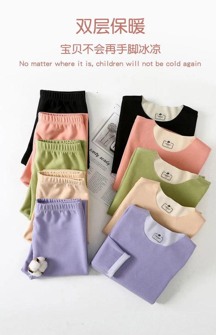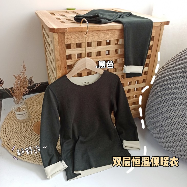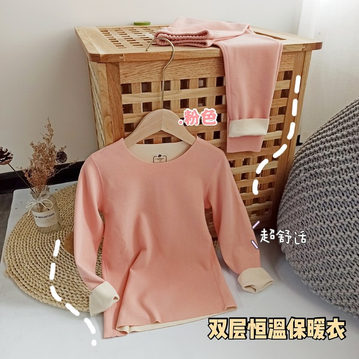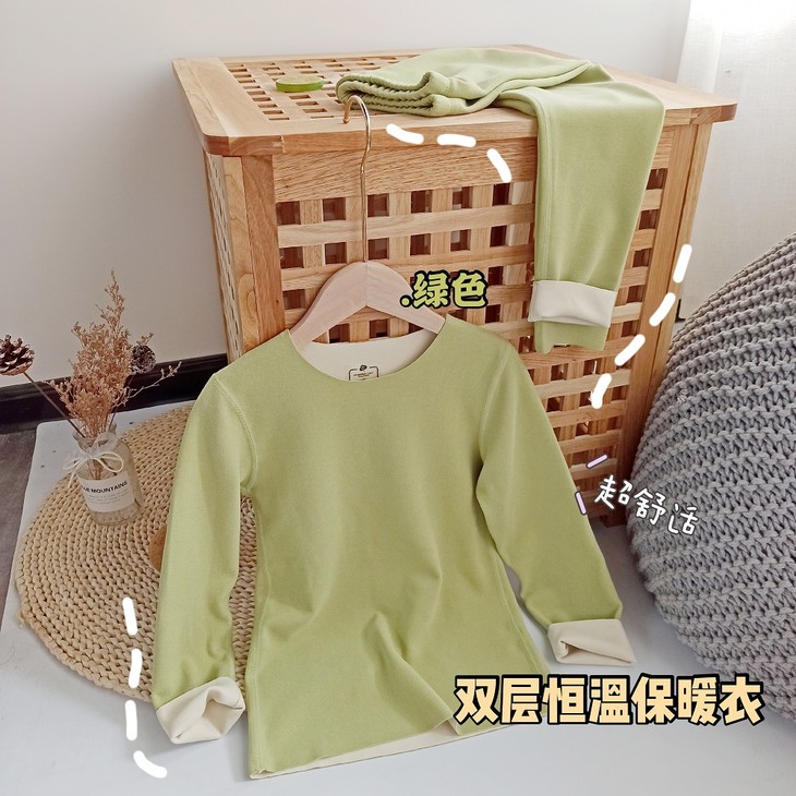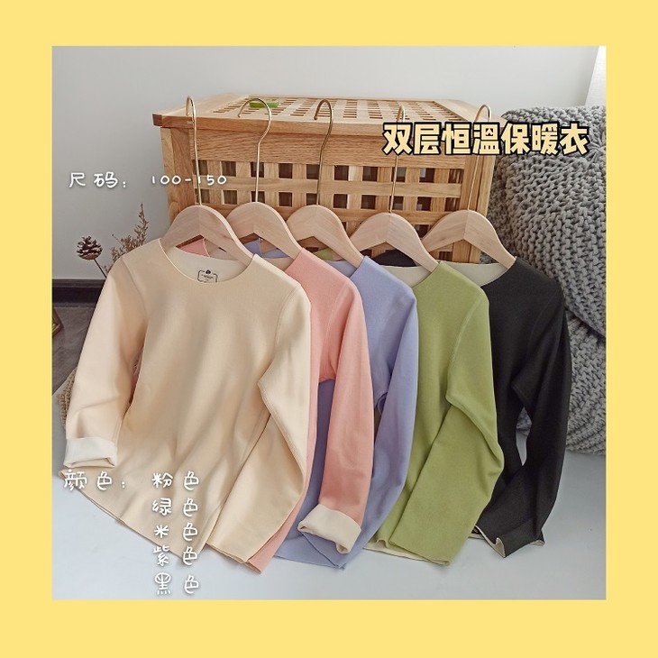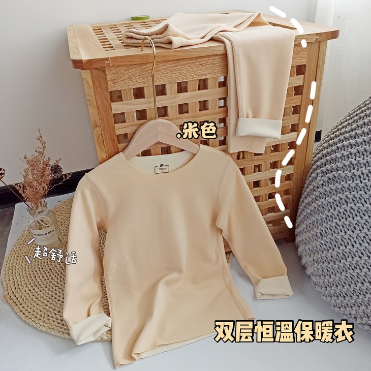 【品名】南瓜拿铁儿童双层纯色恒温保暖衣