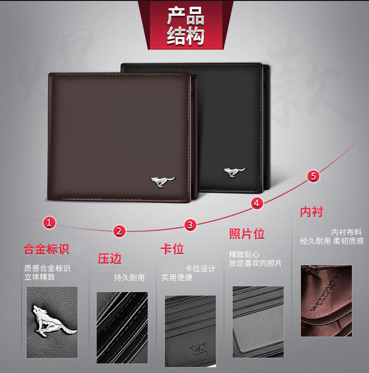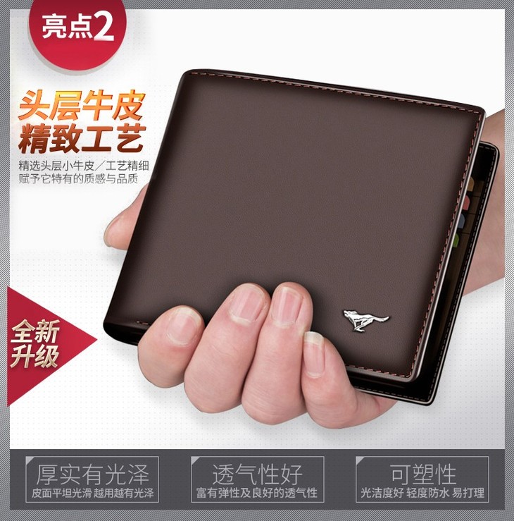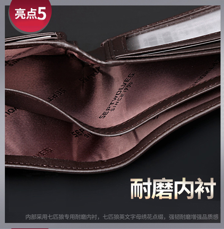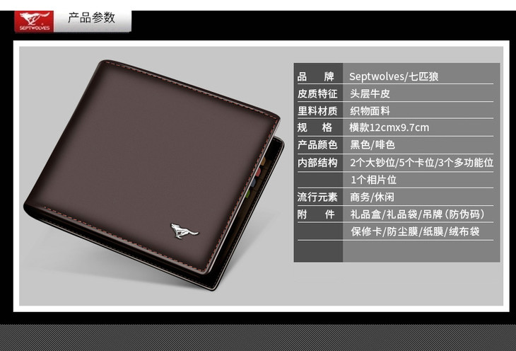 七匹狼(SEPTWOLVES)男士钱包短款商务休闲男式皮夹头层牛皮钱夹 黑色竖款3A0813162-01