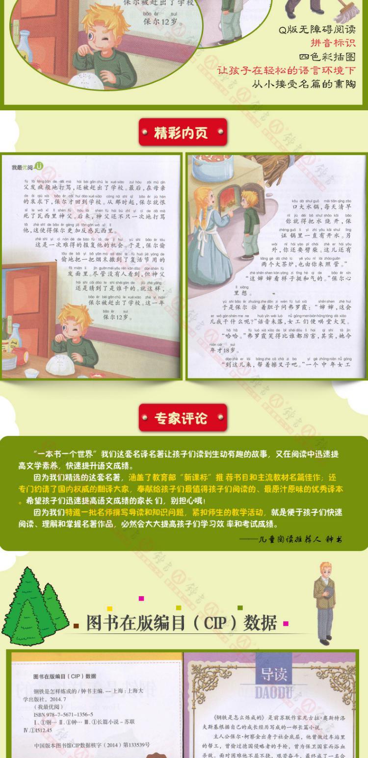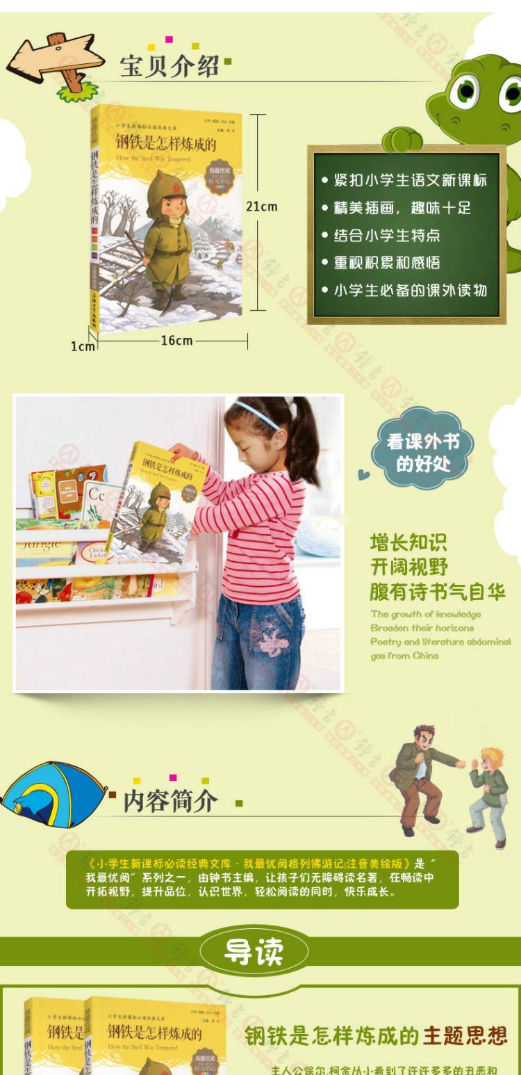1-3年级适用 注音美绘版-钢铁是怎样炼成的 钟书正版少儿读物我优阅系列拼音彩图版钢铁是怎样炼成的 儿童文学课外读物小学生作文