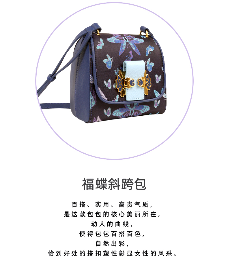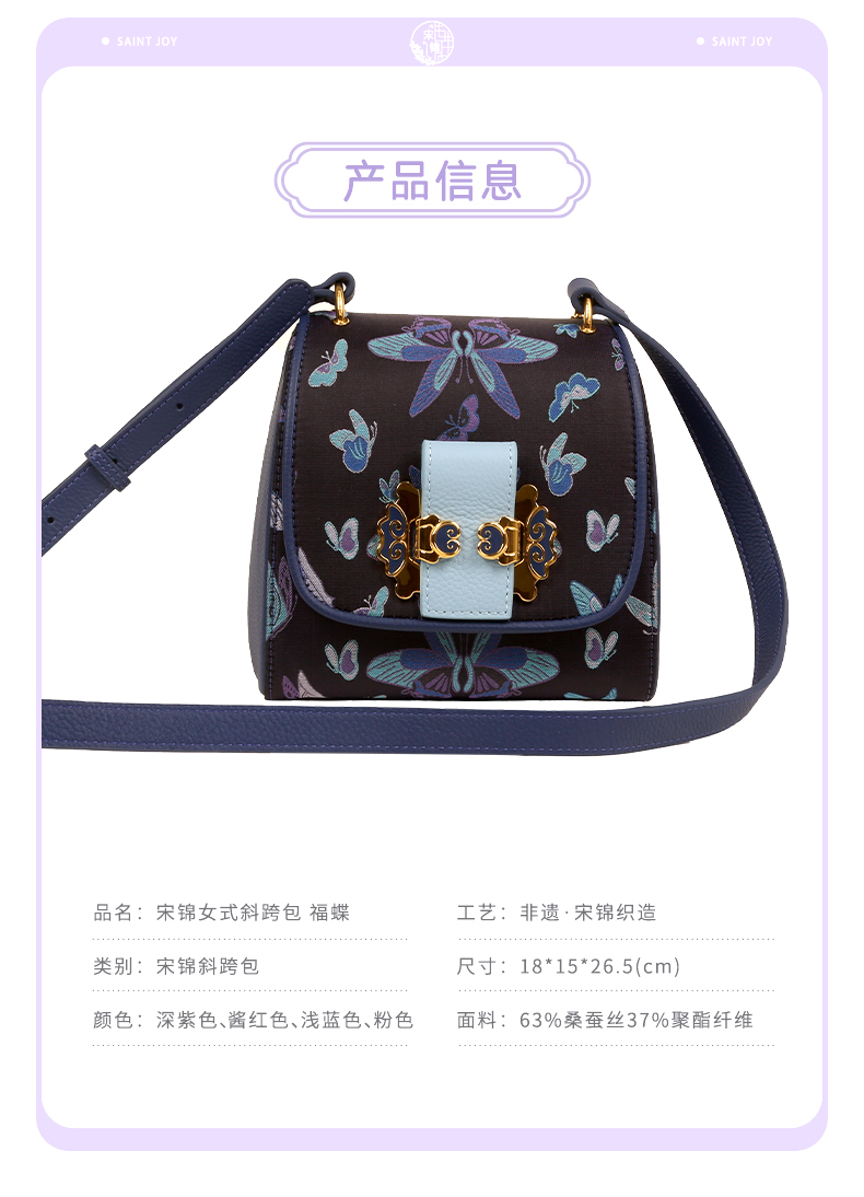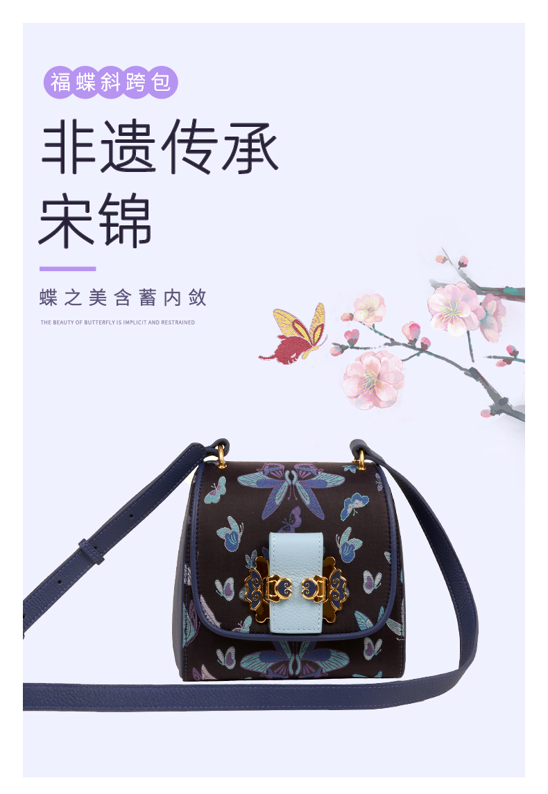 SAINTJOY/上久楷 宋锦女式斜挎包 福蝶 BWS18A0801