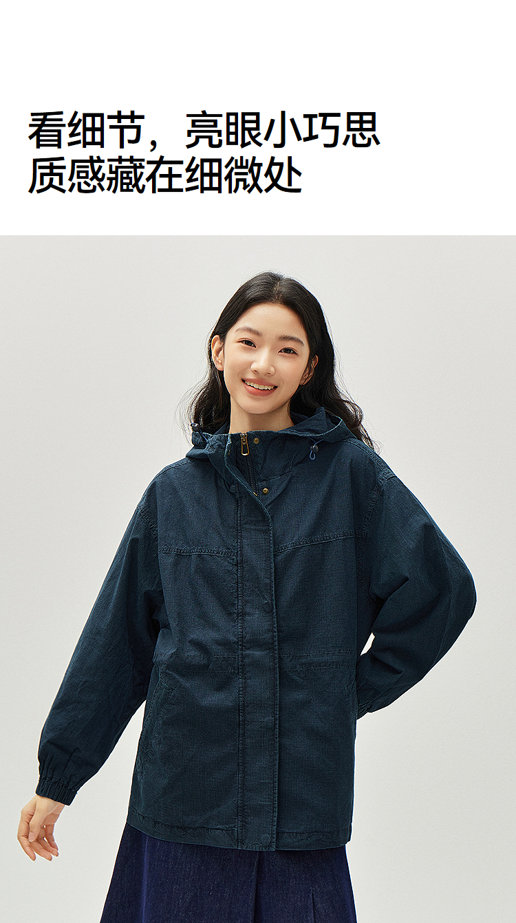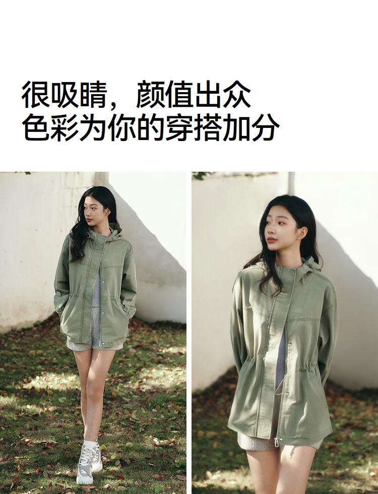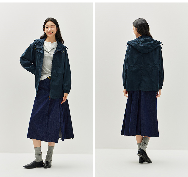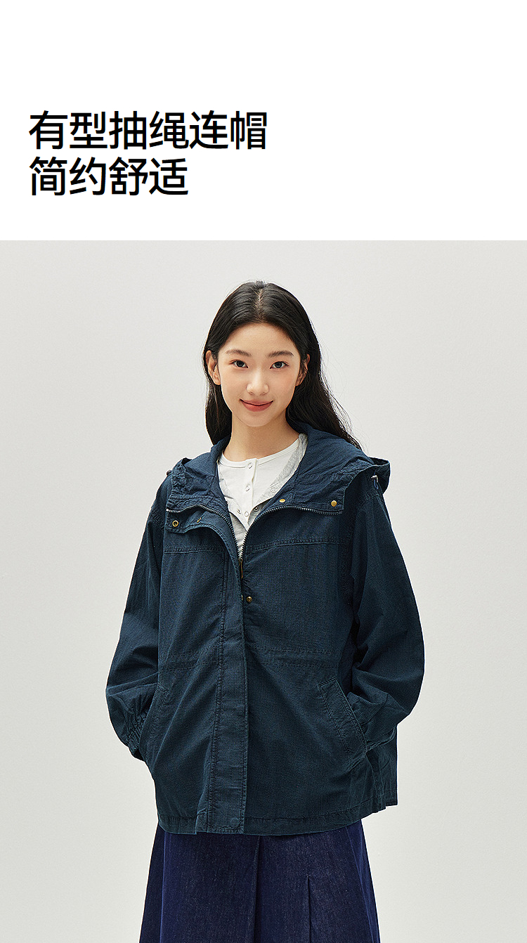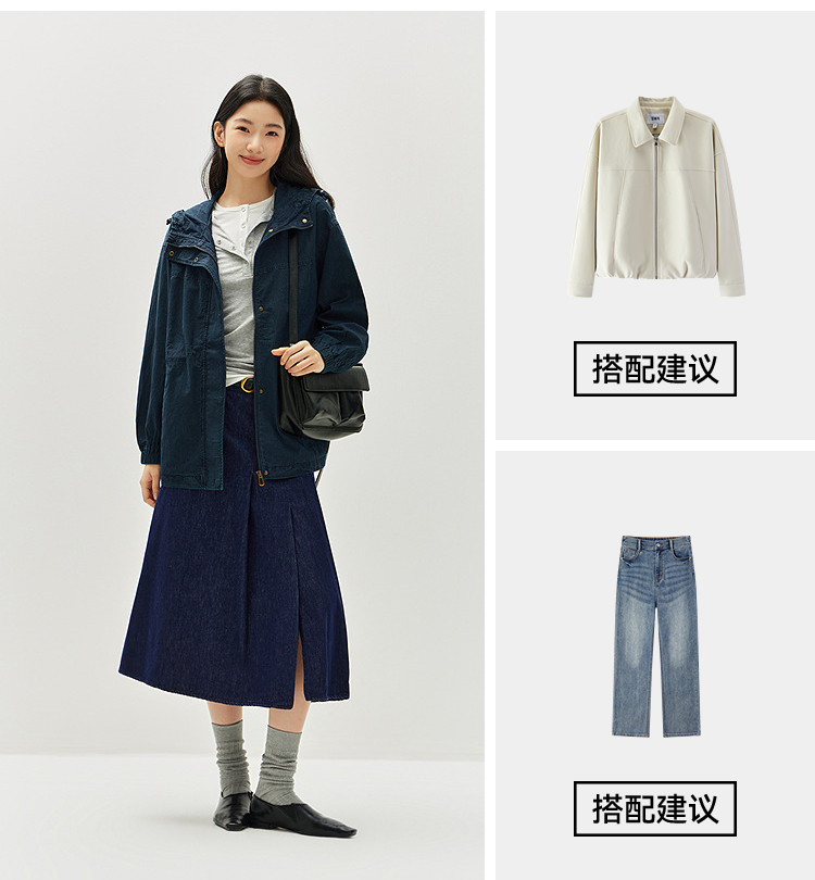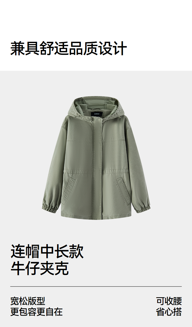 森马牛仔外套女春季中长款宽松做旧连帽落肩收腰夹克女生复古衣服