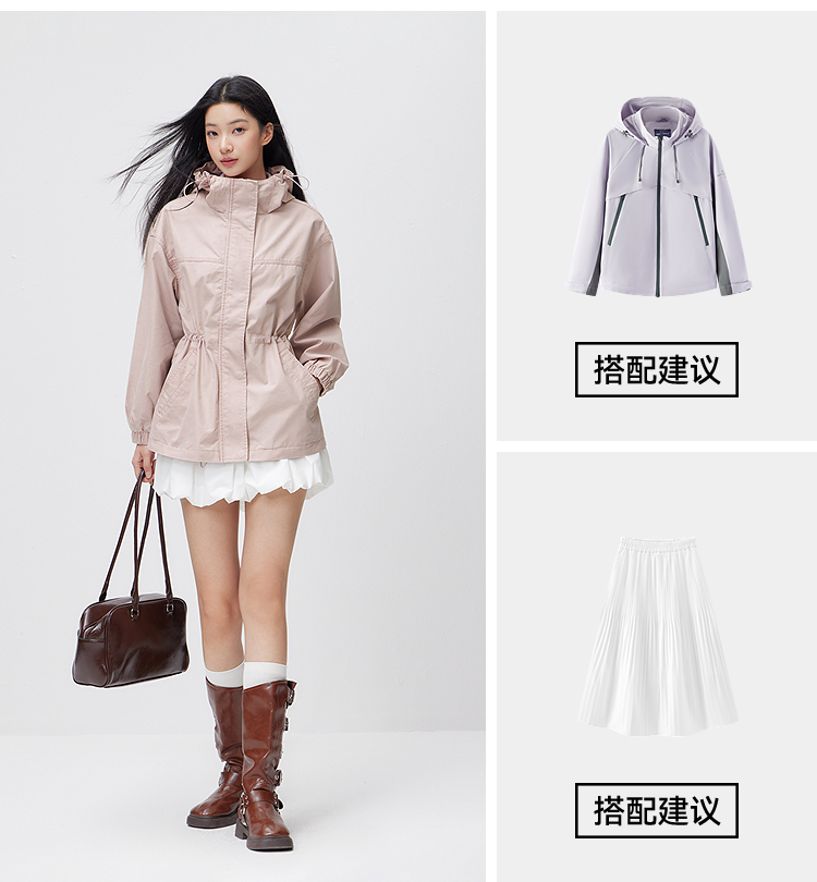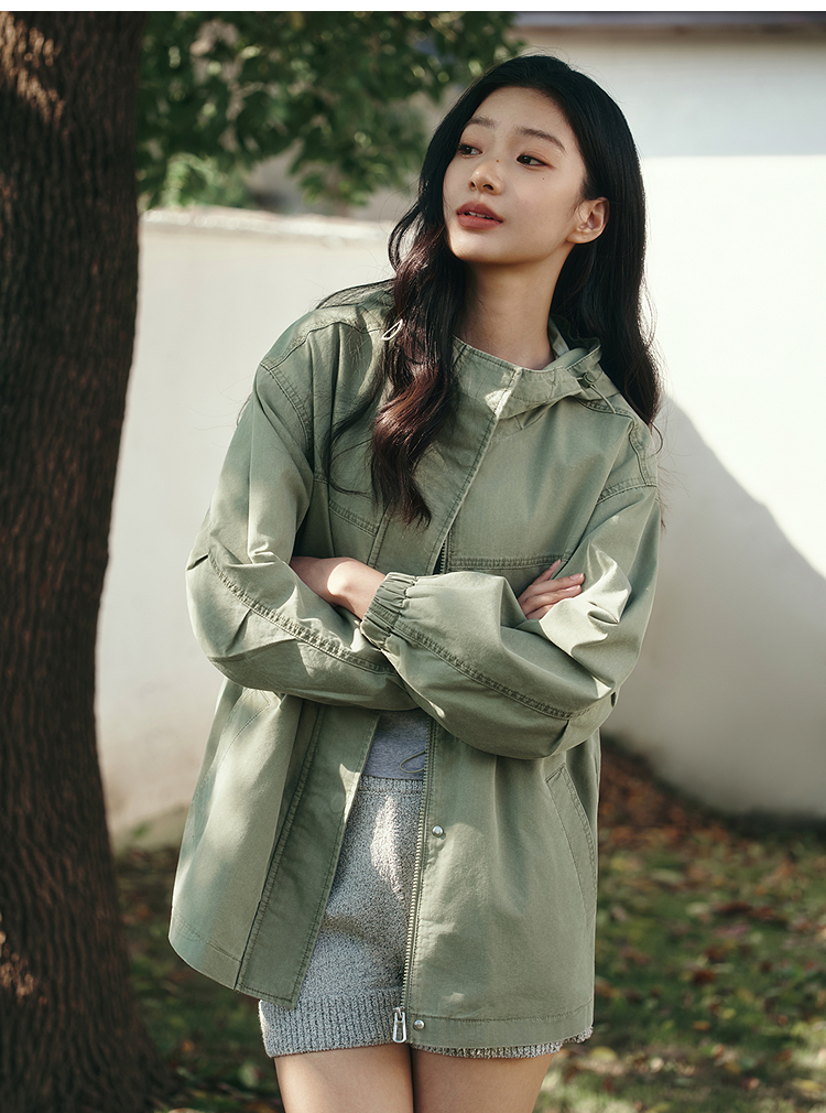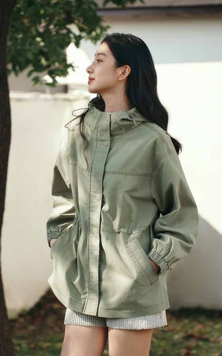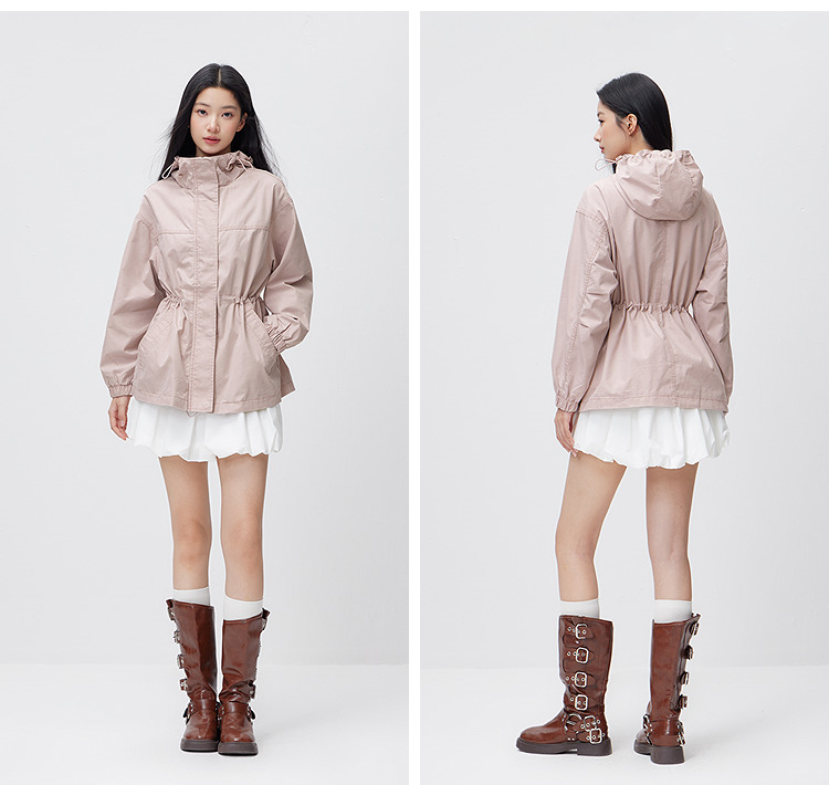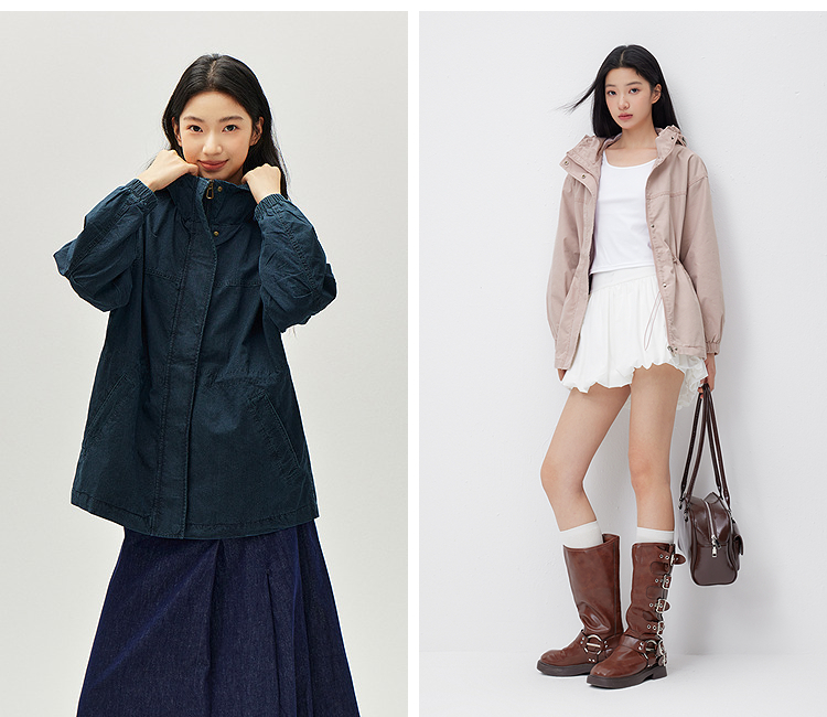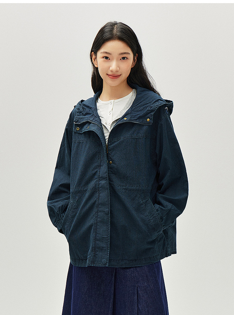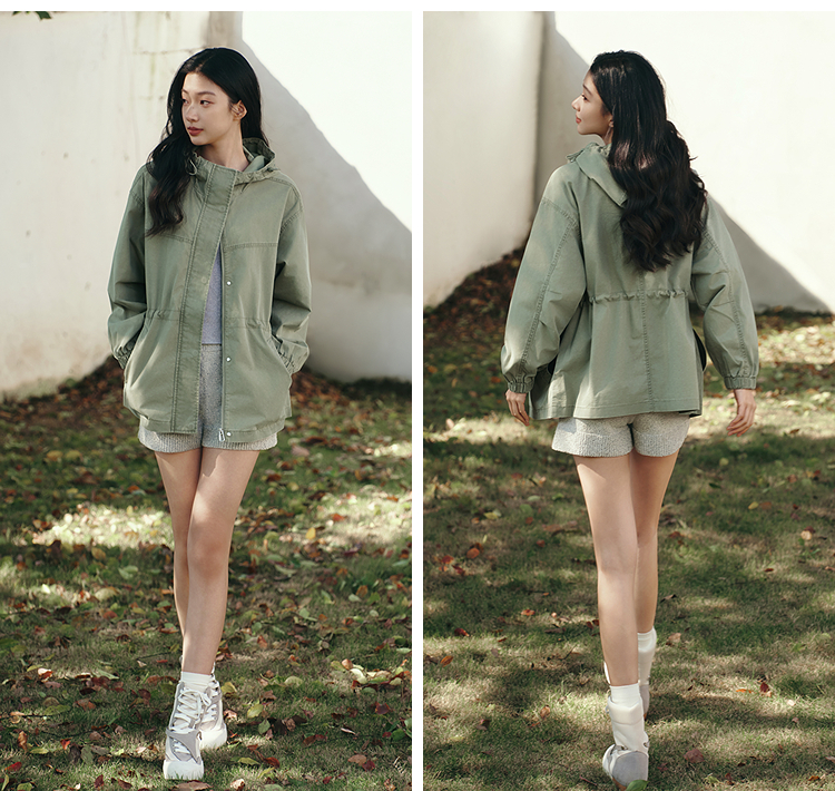 森马牛仔外套女春季中长款宽松做旧连帽落肩收腰夹克女生复古衣服