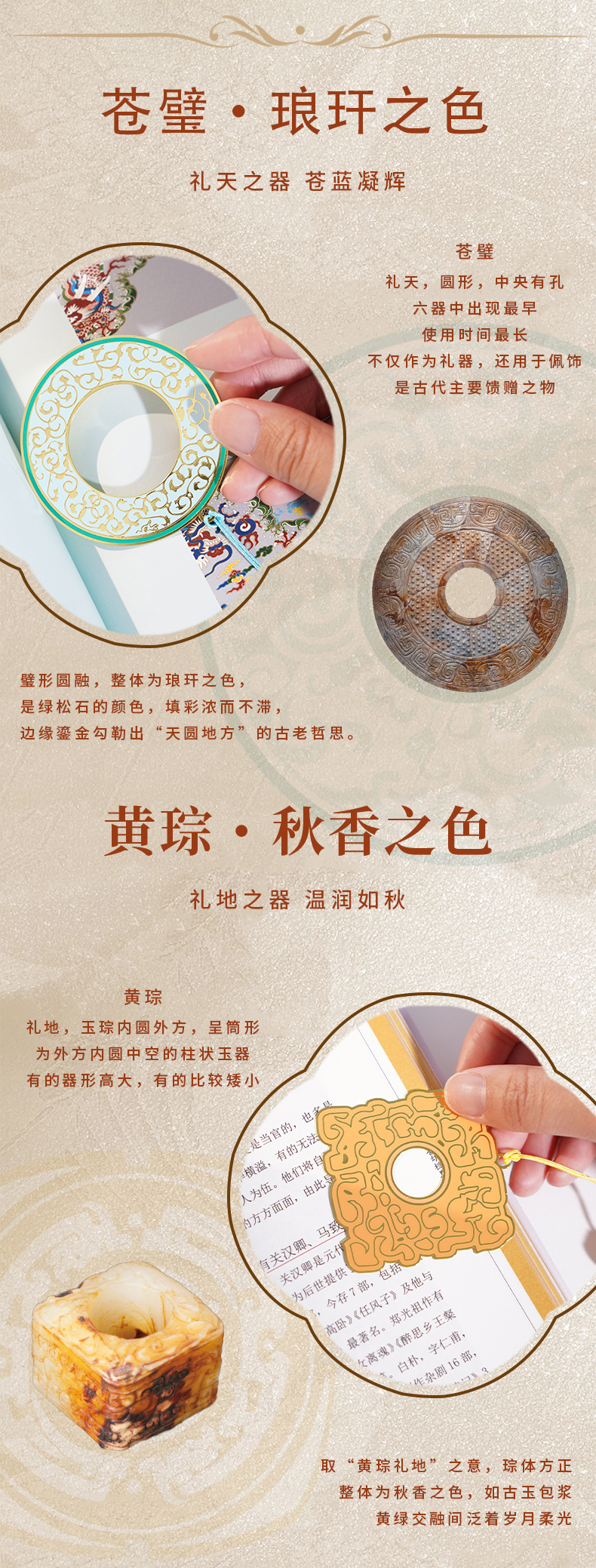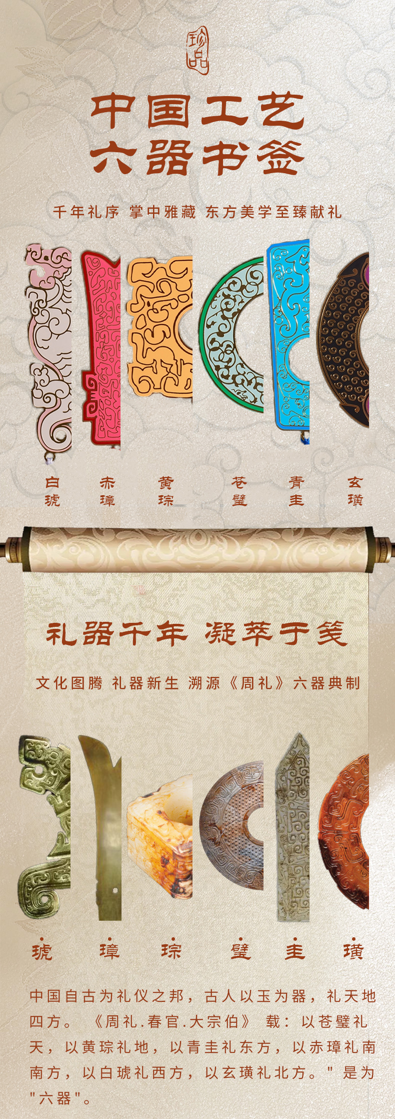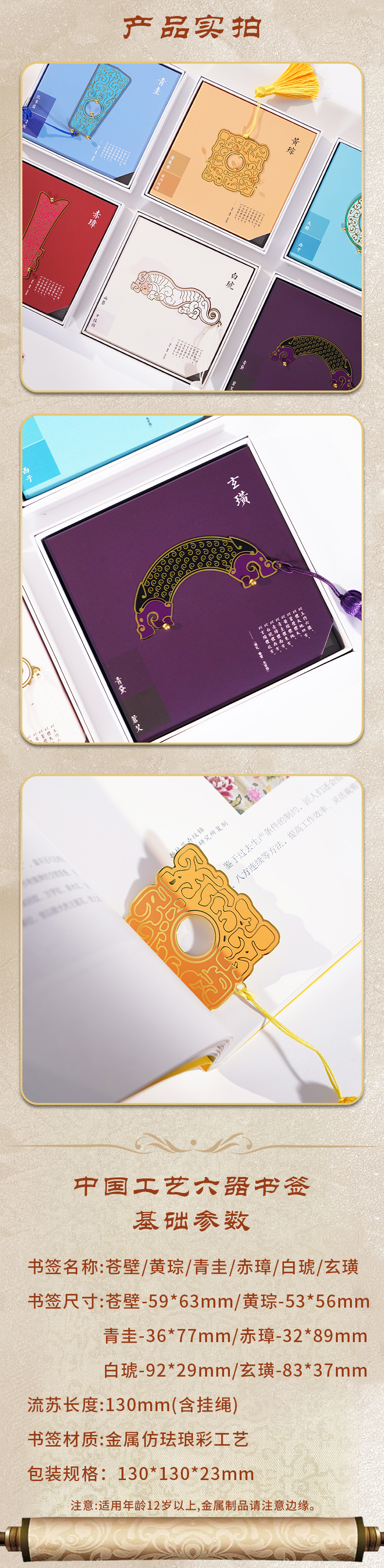 中国工艺 周礼六器书签 赤璋 黄琮 白琥 玄璜 青圭 苍璧