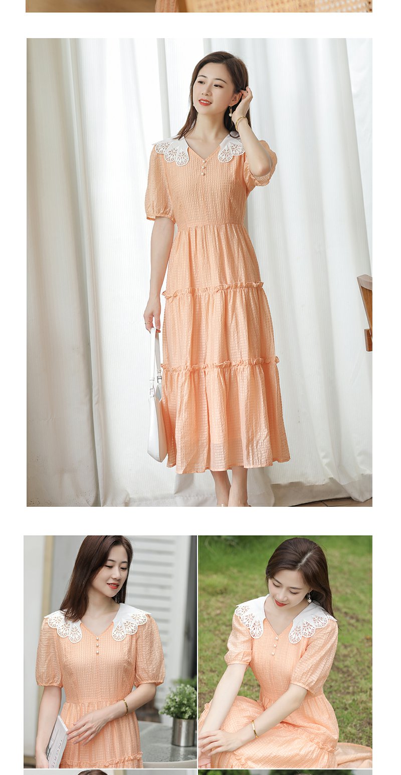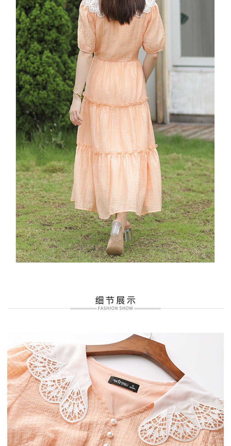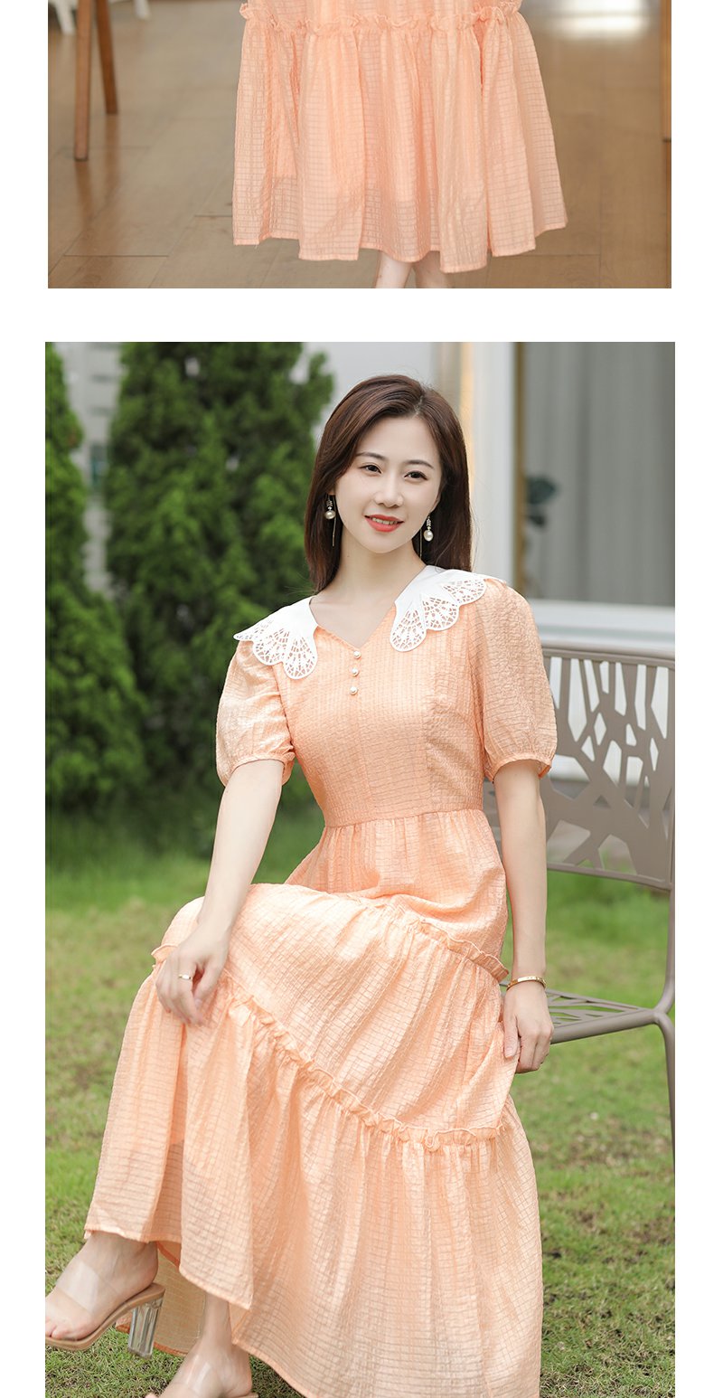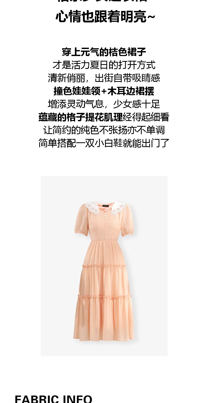 未风桔色雪纺娃娃领连衣裙女夏2025年夏季新款时尚泡泡袖收腰裙子