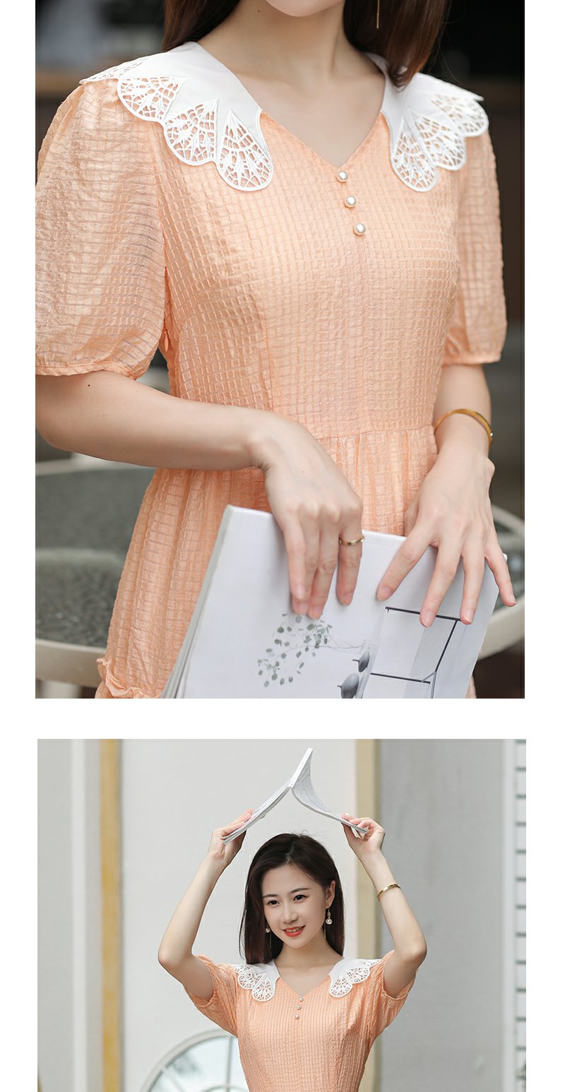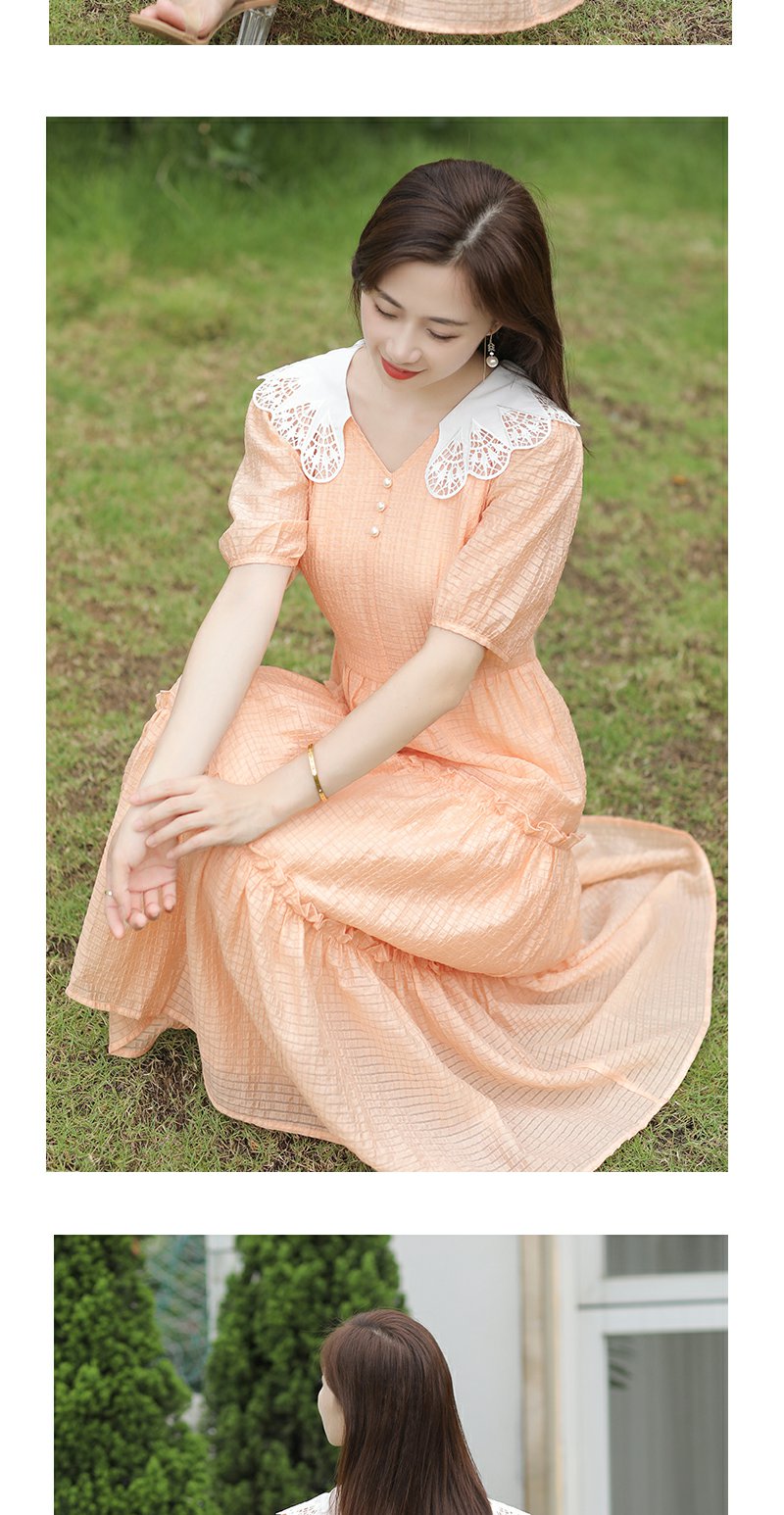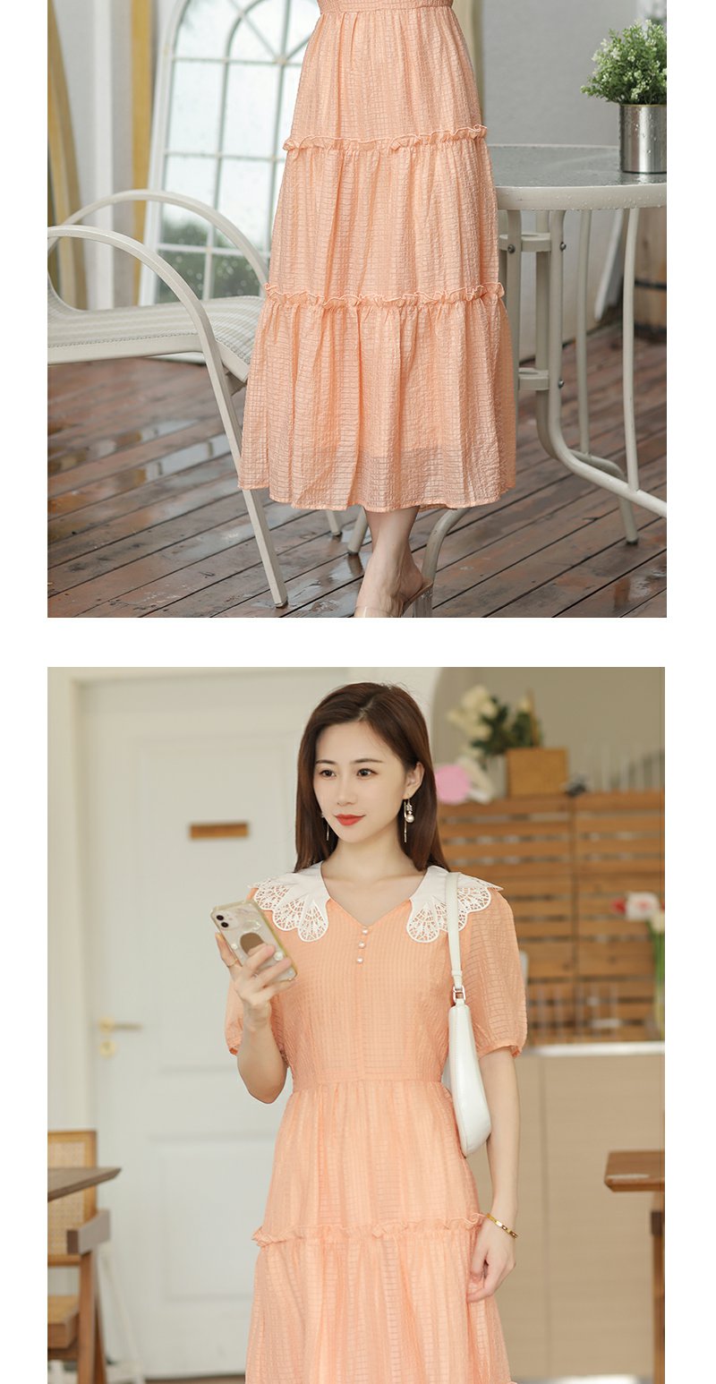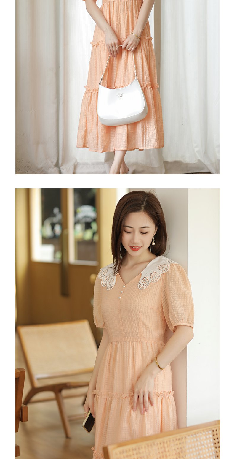 未风桔色雪纺娃娃领连衣裙女夏2025年夏季新款时尚泡泡袖收腰裙子