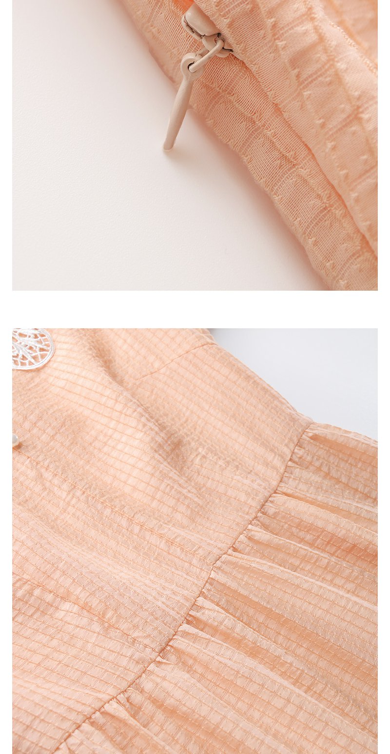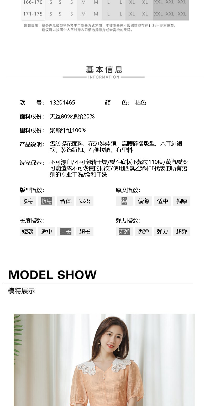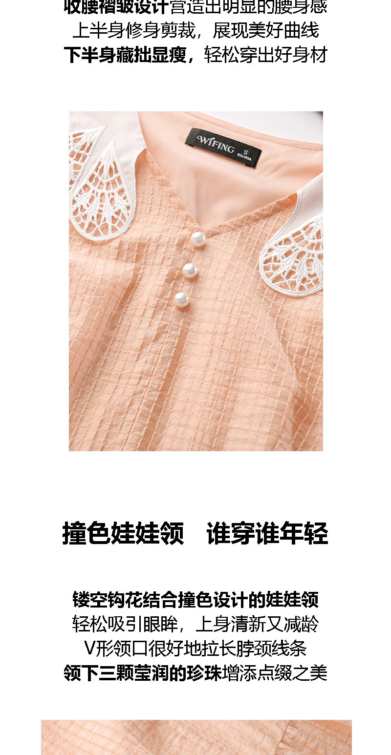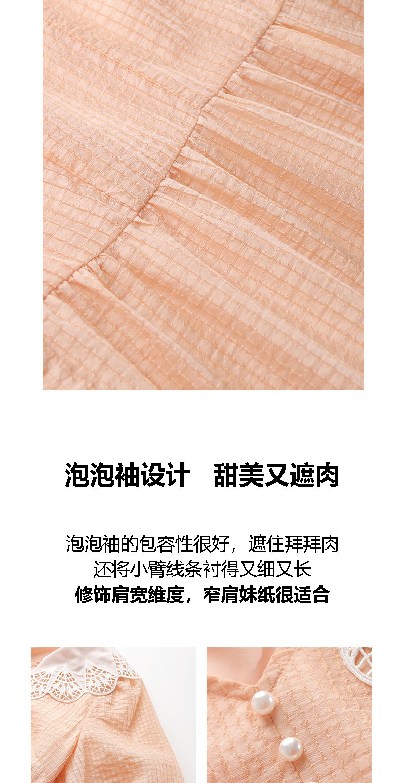 未风桔色雪纺娃娃领连衣裙女夏2025年夏季新款时尚泡泡袖收腰裙子