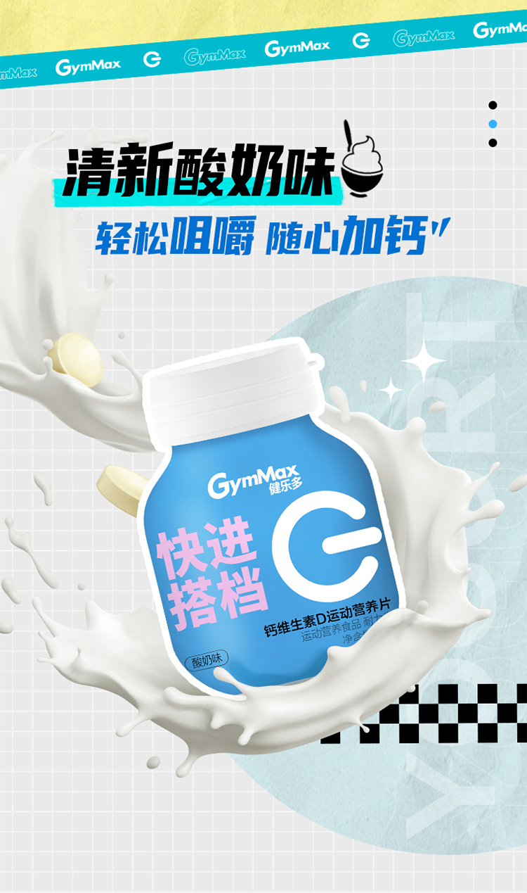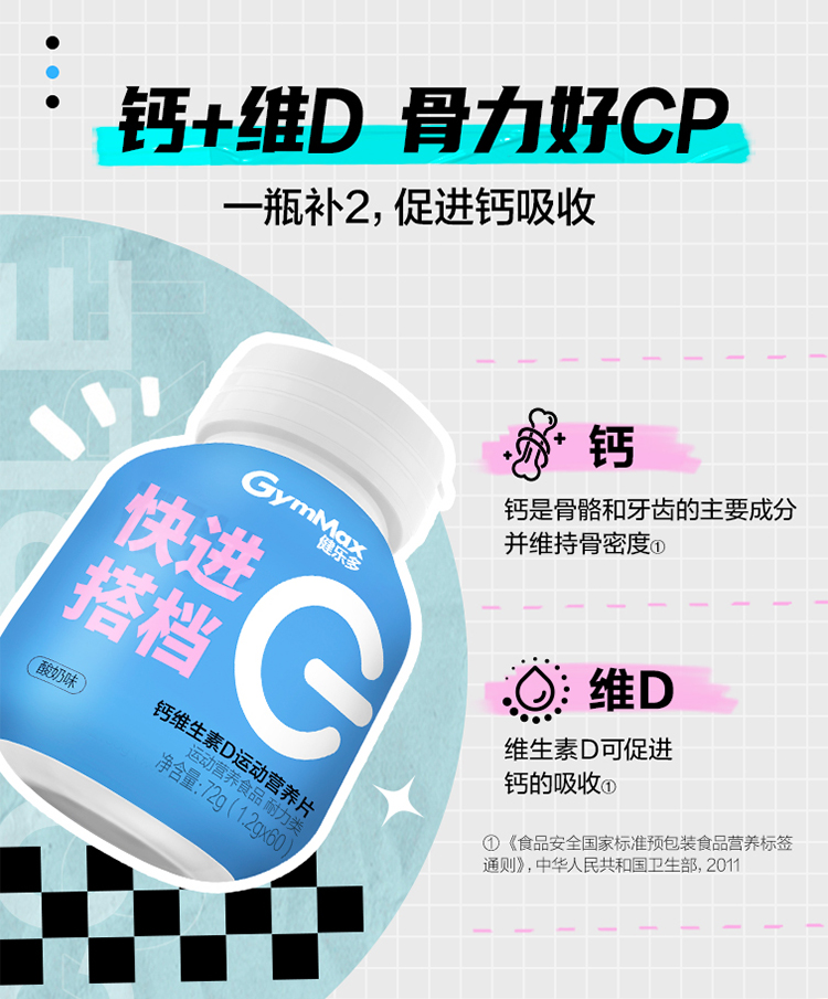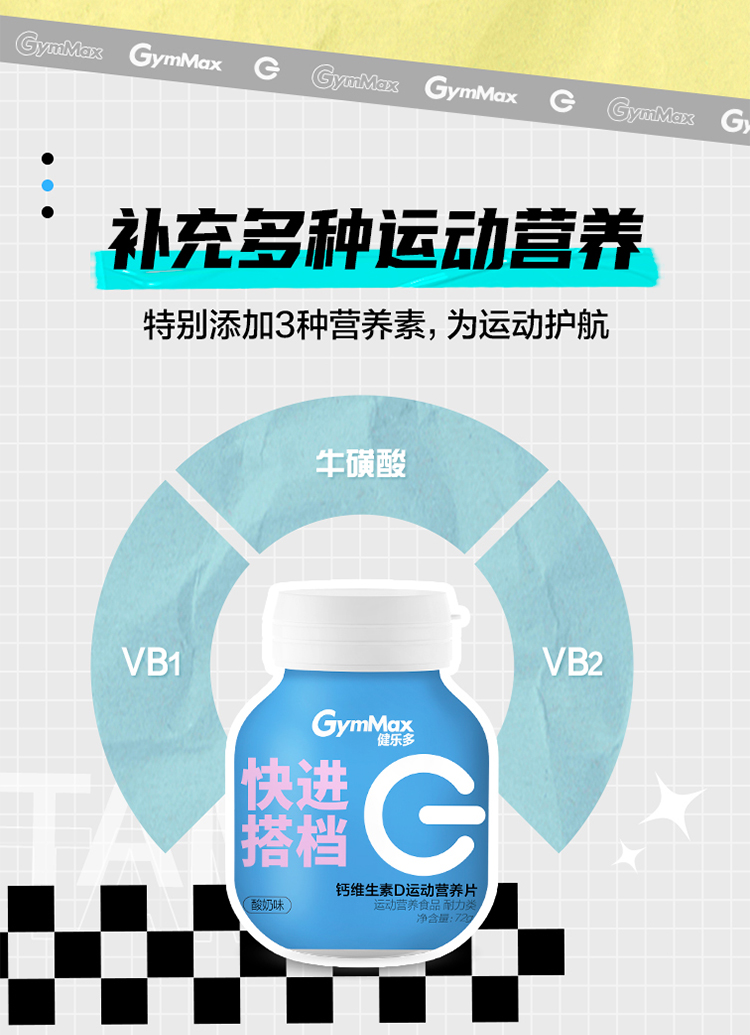 健乐多GymFun维生素D钙片男性女性运动复合钙片青少年补充VD咀嚼片