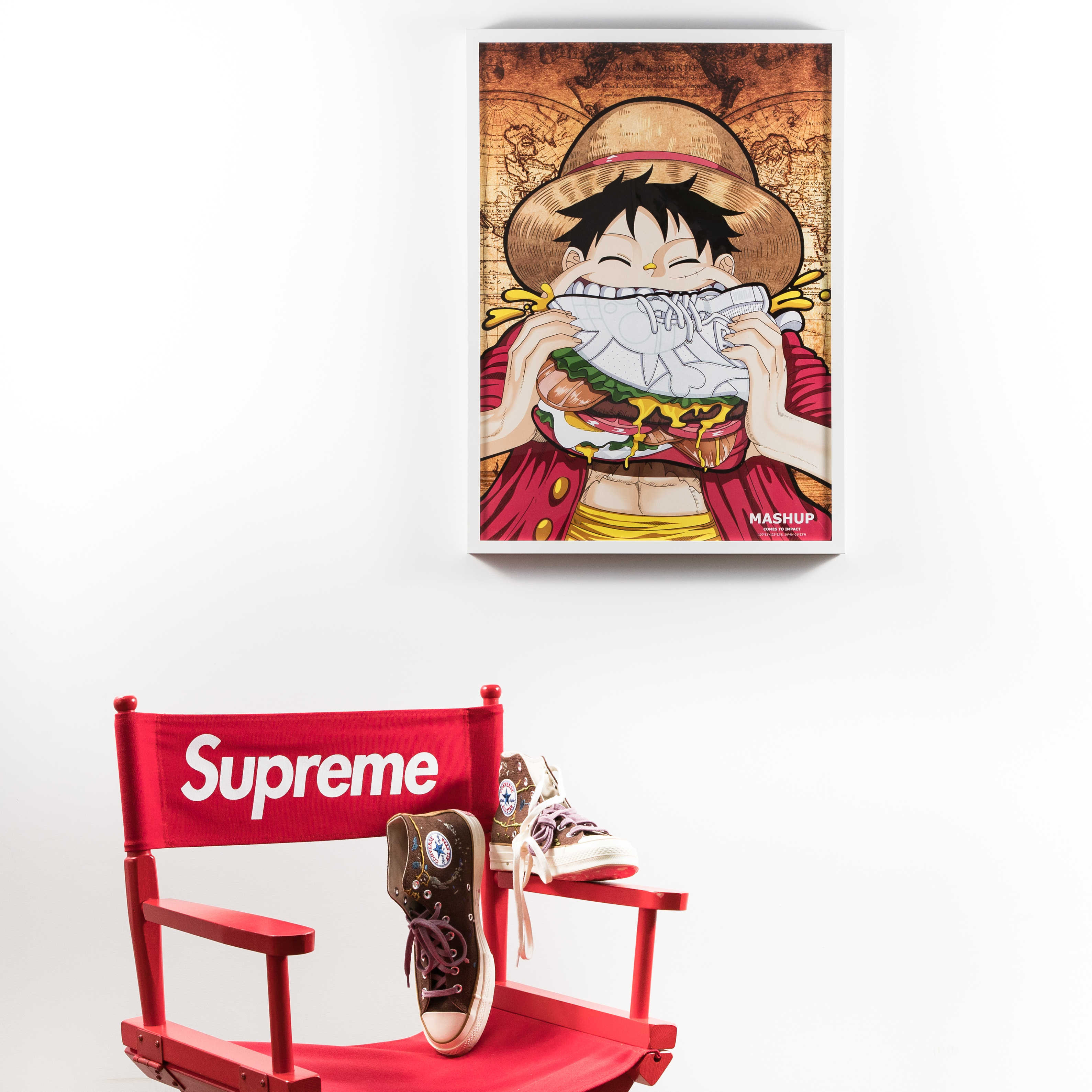 Puma x Onepiece的联名鞋款被路飞当做热狗吃掉啦!整幅作品形象地表达出这双联名鞋款的主要概念,作为航海王的忠实粉的你,必须拥有!