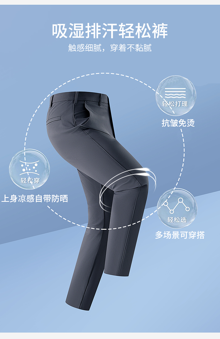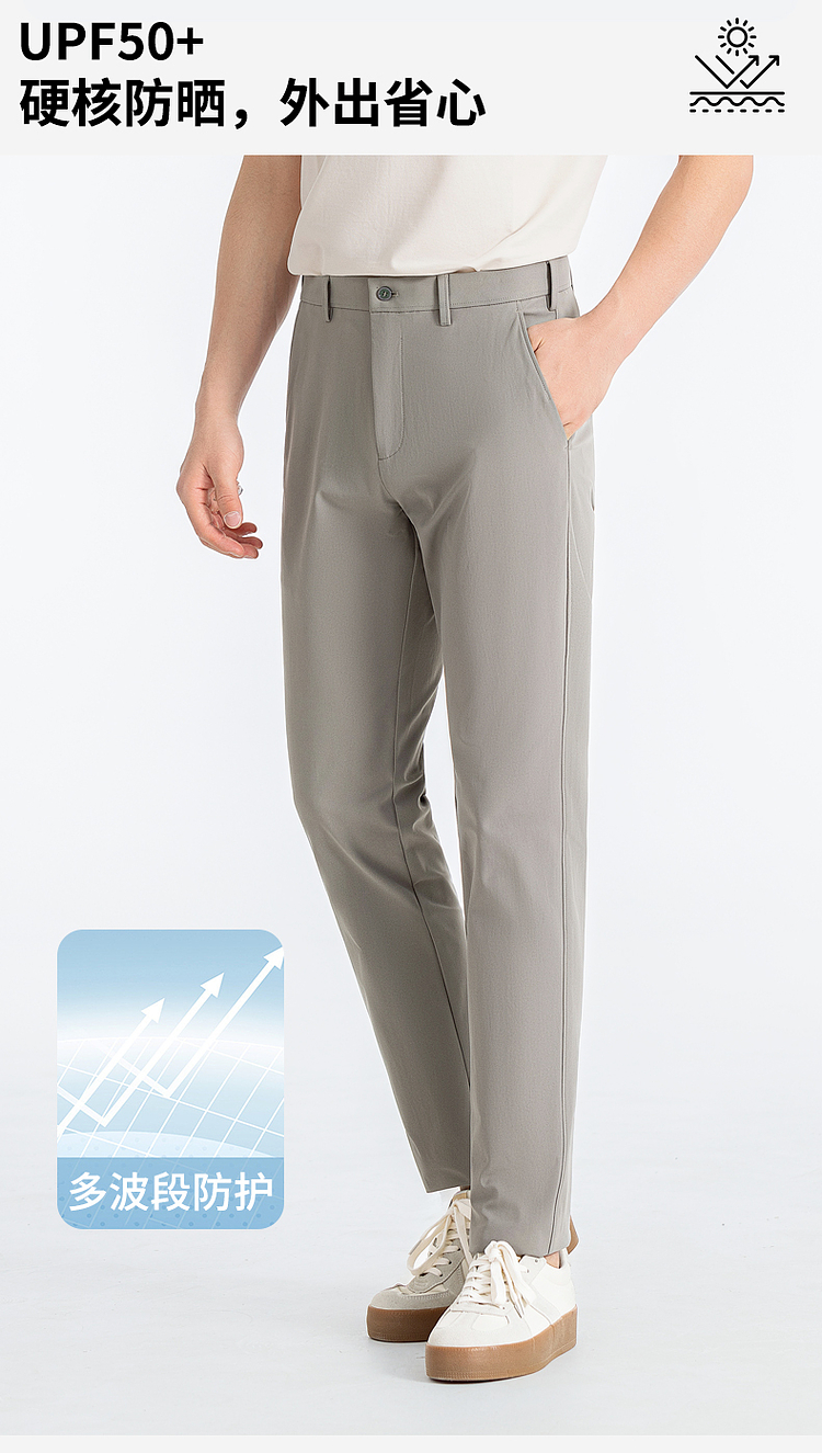 【凉感&防晒&排汗】圣得西免烫男士休闲裤2025年新款直筒下装长裤